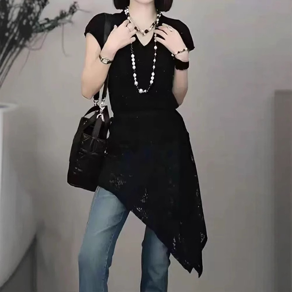 Нерегулярный корейский ретро-дизайн, высококачественная кружевная юбка, новинка 2025 года, юбка-штора с подолом