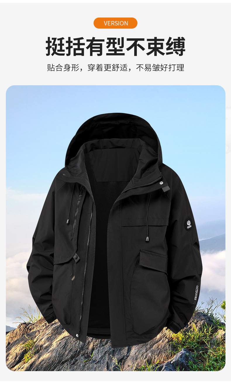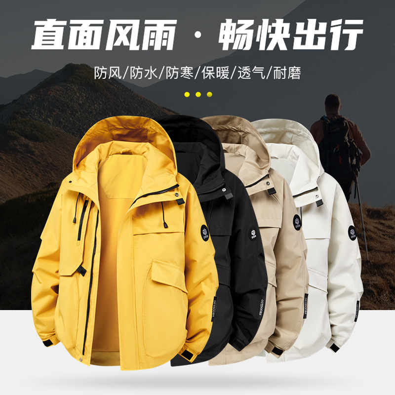 2025 новая альпинистская одежда с капюшоном, однотонная водонепроницаемая многофункциональная куртка для пар, мужская ветровка, одинарная куртка
