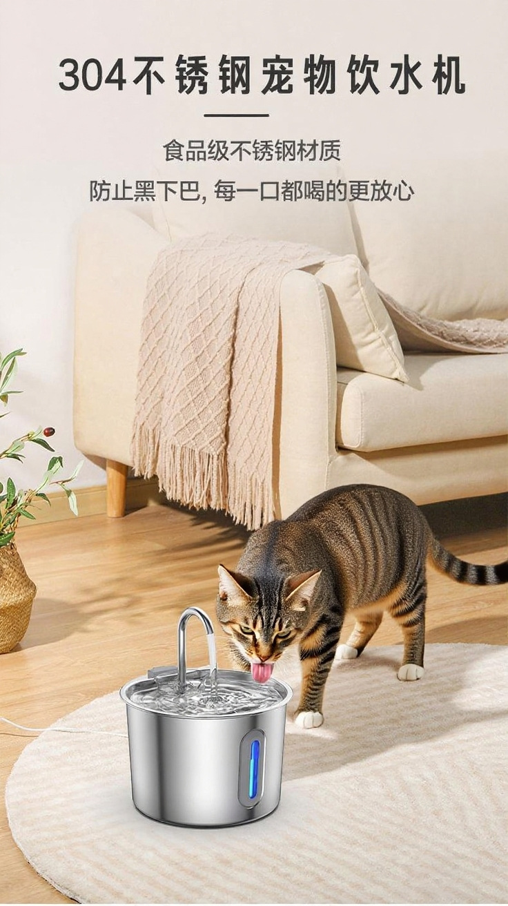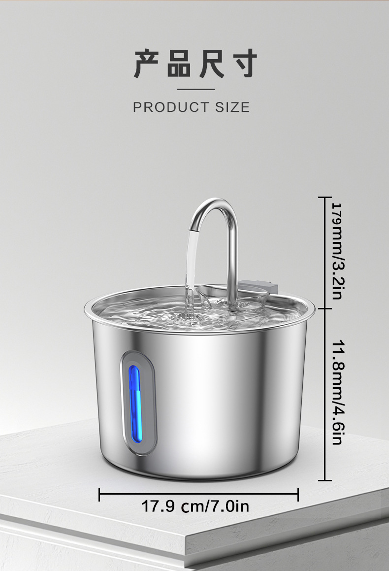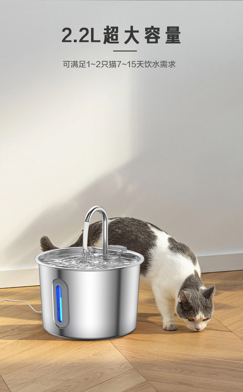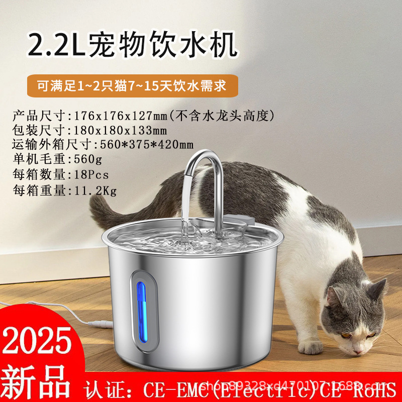 Диспенсер для воды для домашних животных из нержавеющей стали, 2,2 л