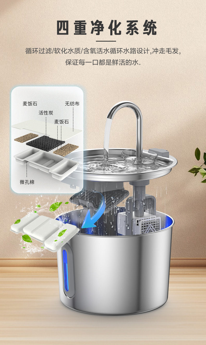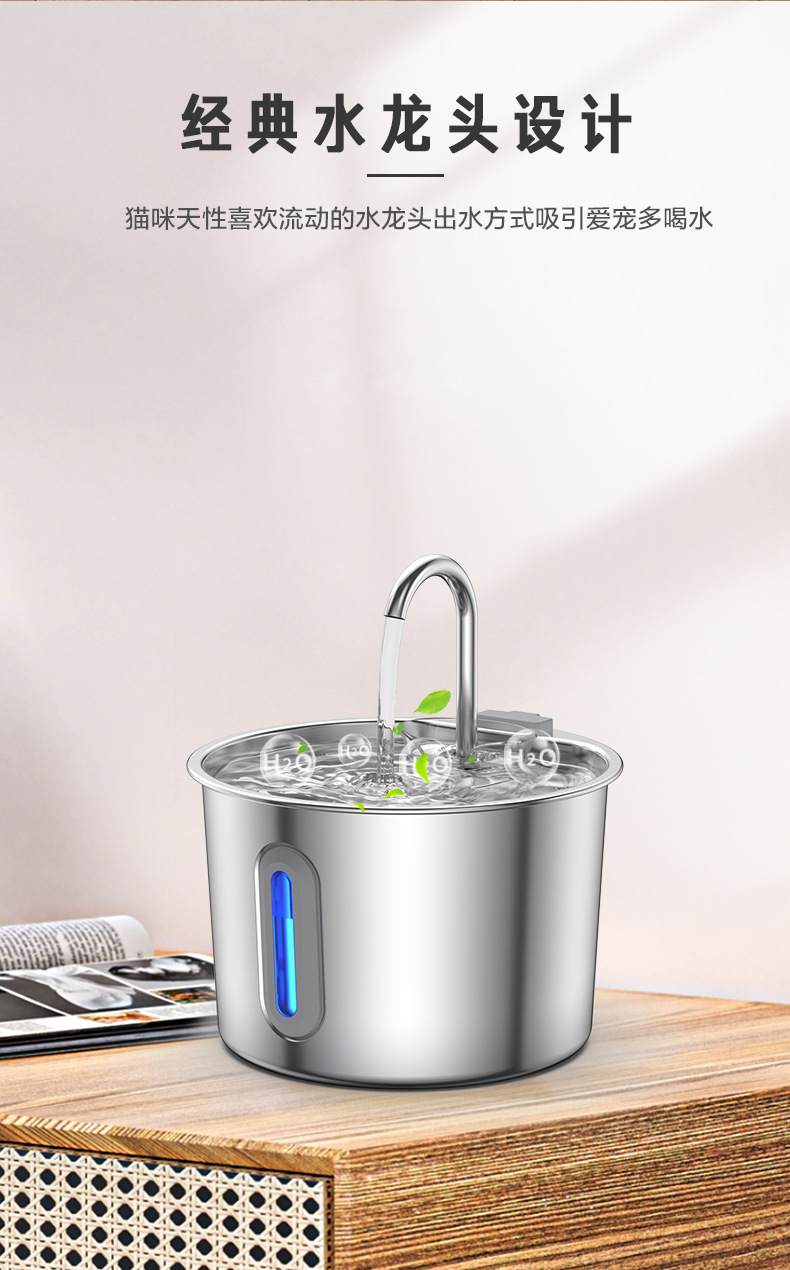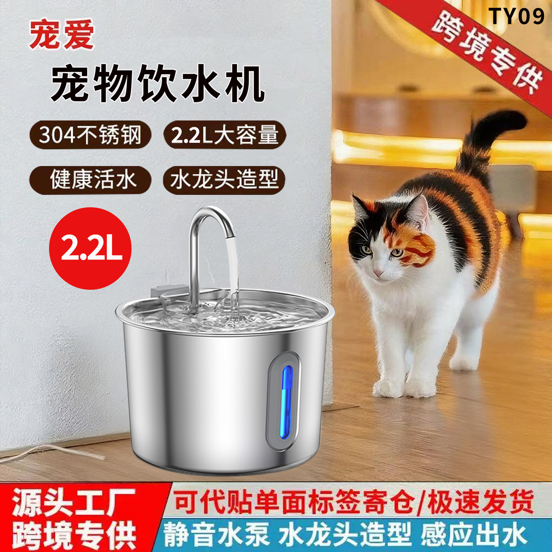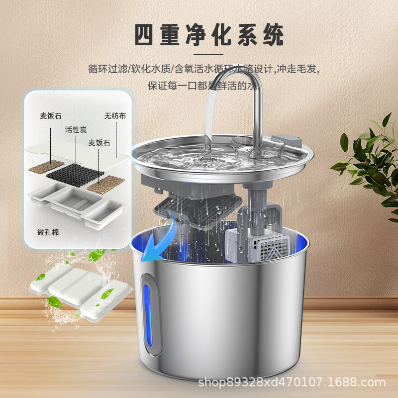 Поилка для домашних животных, круглая, большая емкость, 304, полностью из нержавеющей стали, интеллектуальная автоматическая подача воды для собак и кошек