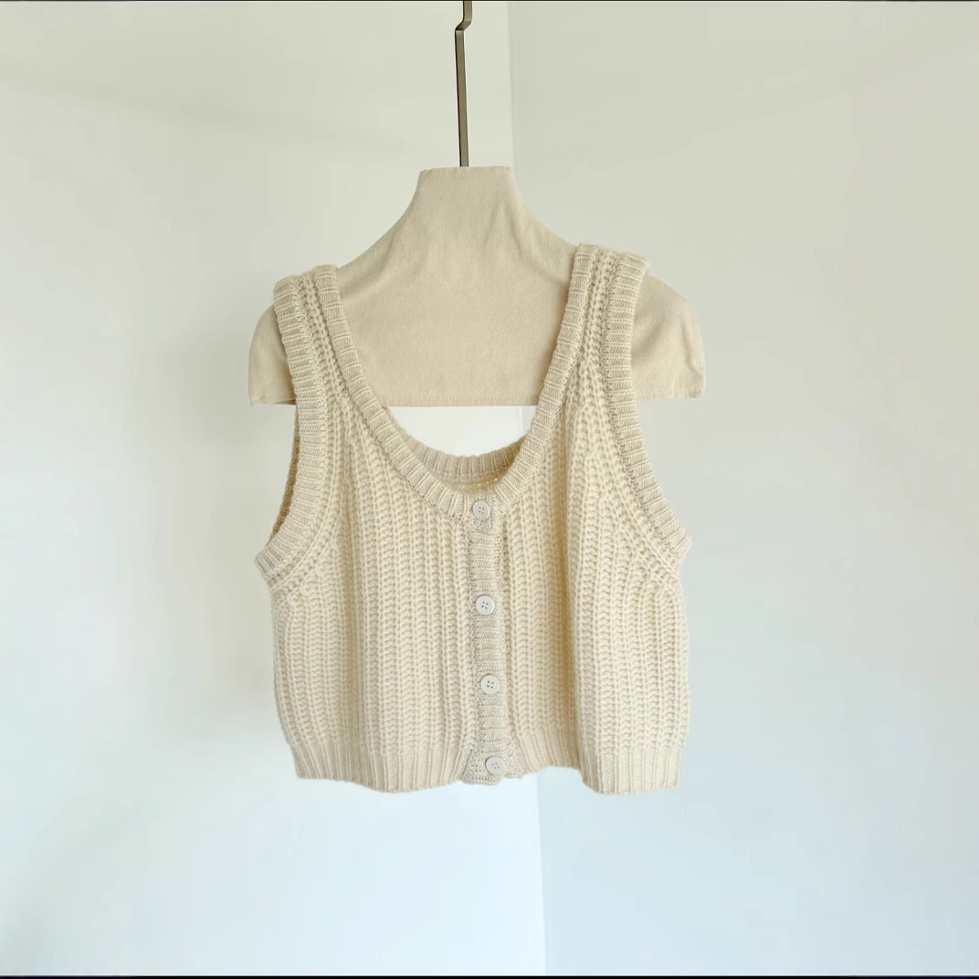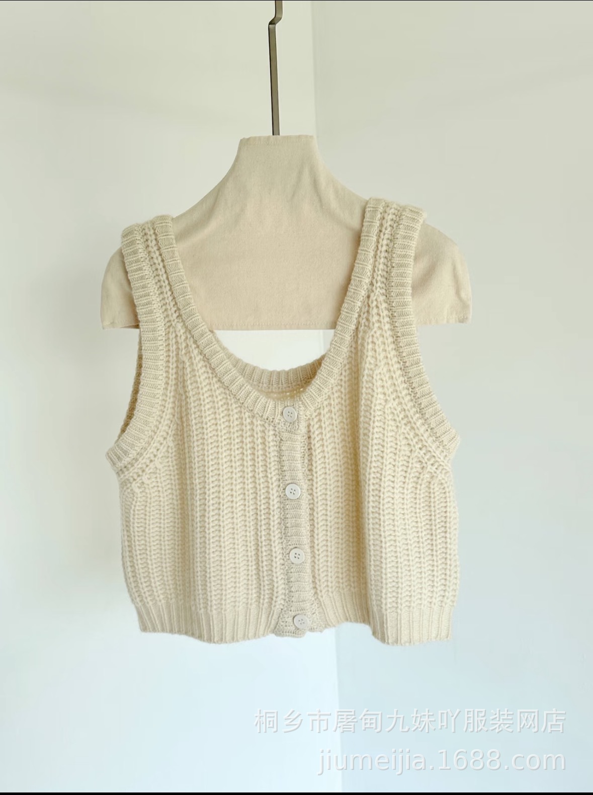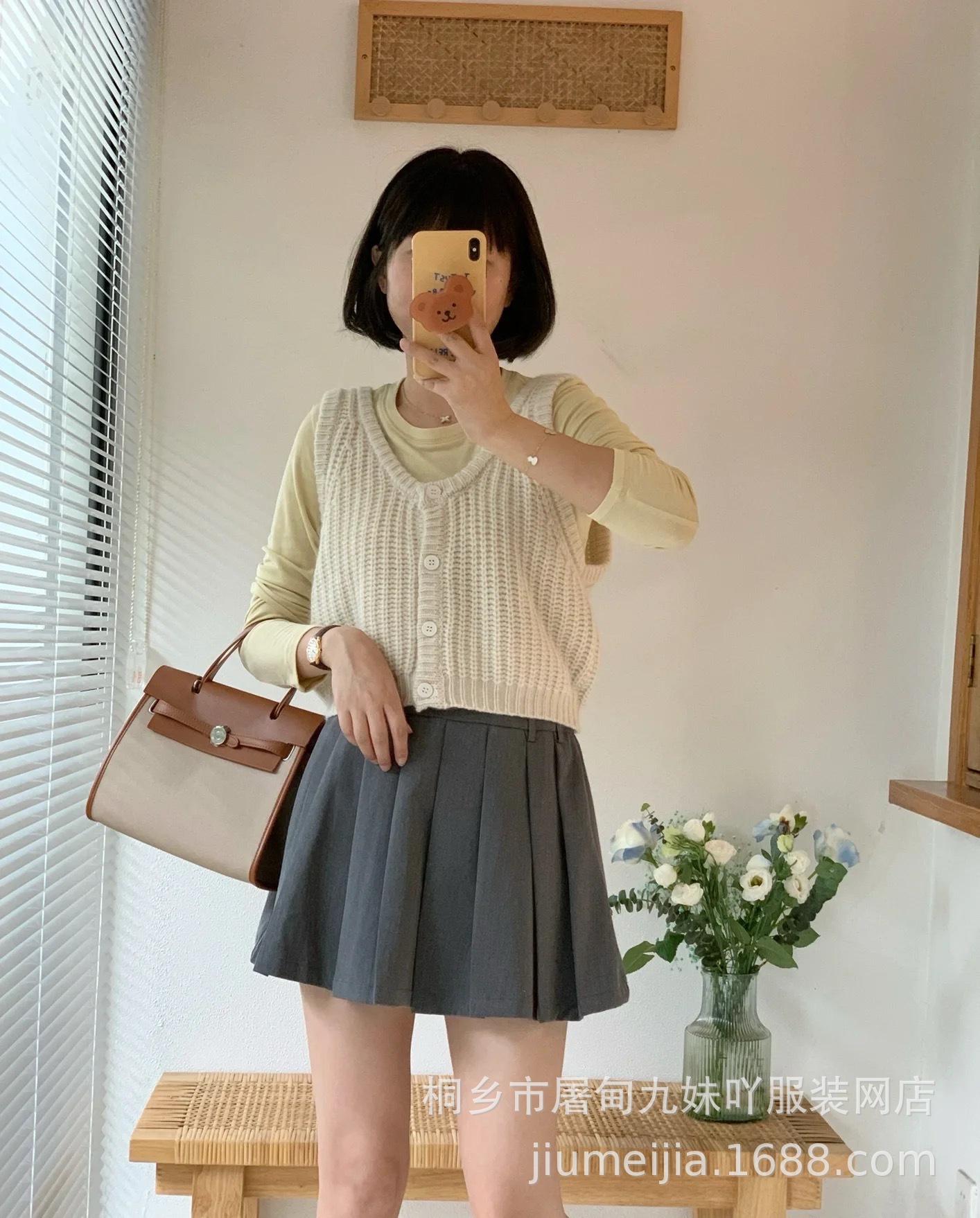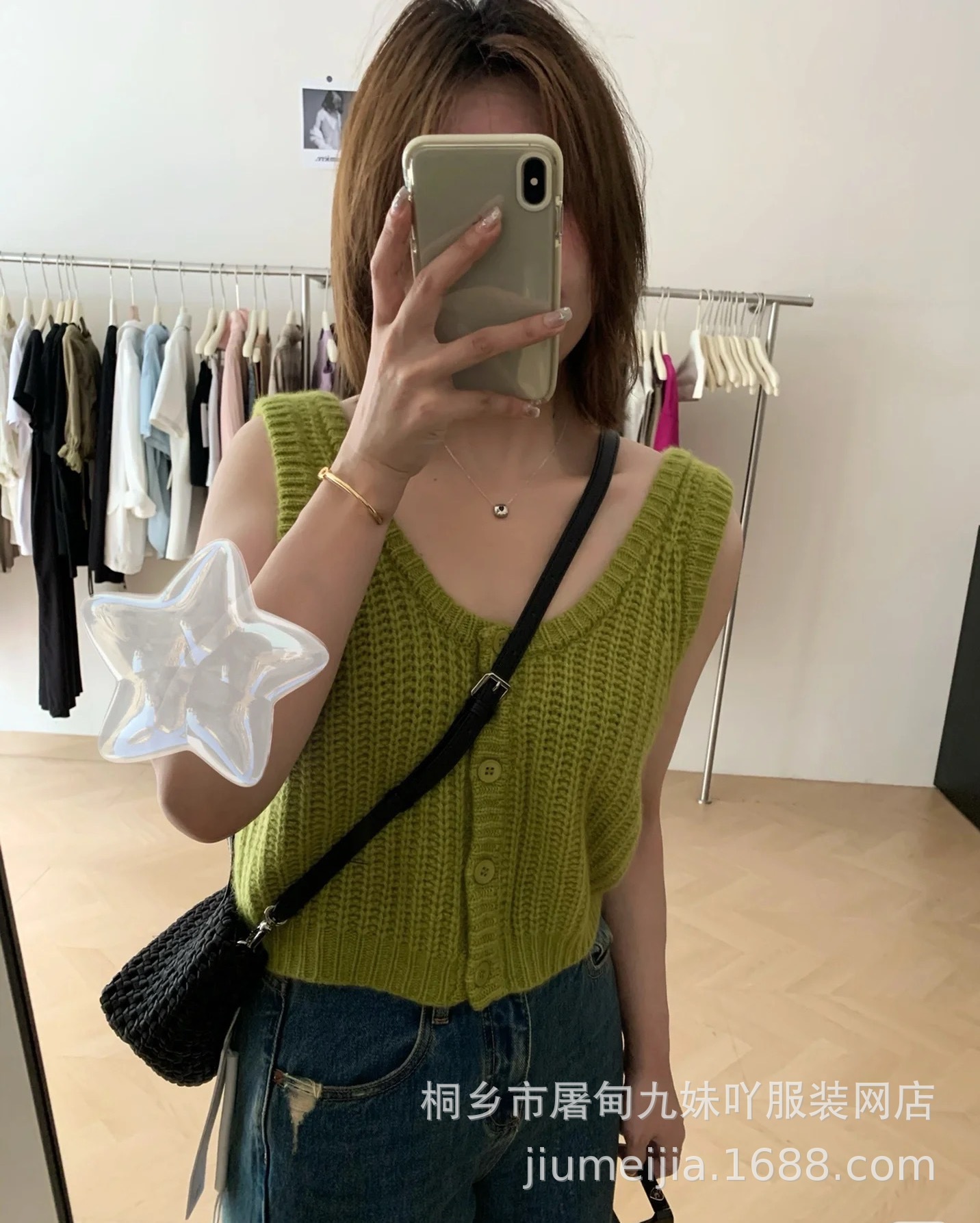 Вязаный жилет с v-образным вырезом для женщин, ранняя осень и зима, корейский стиль, маленький ароматный модный жилет, свитер, короткий дизайн, многослойный топ