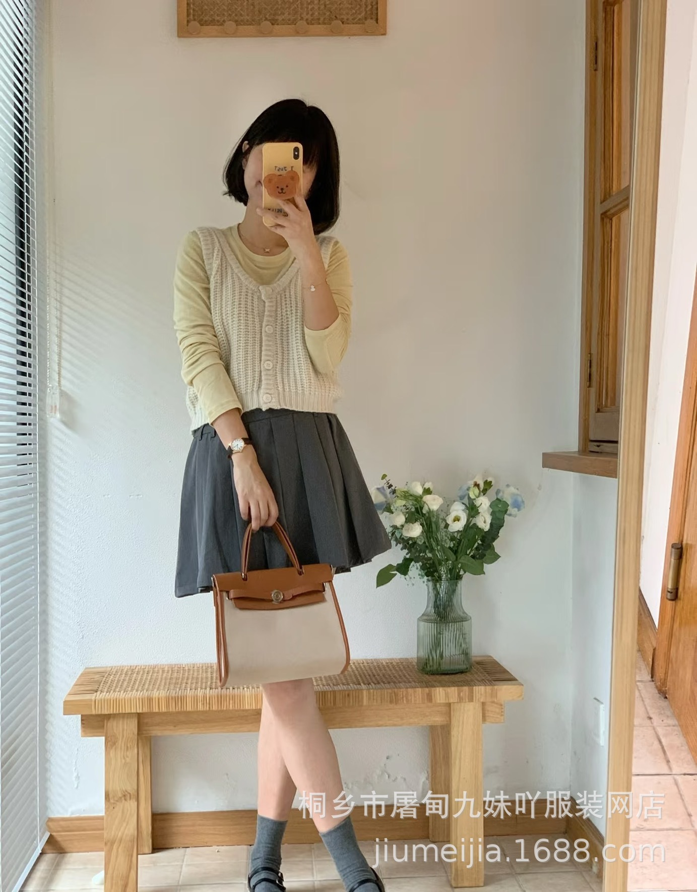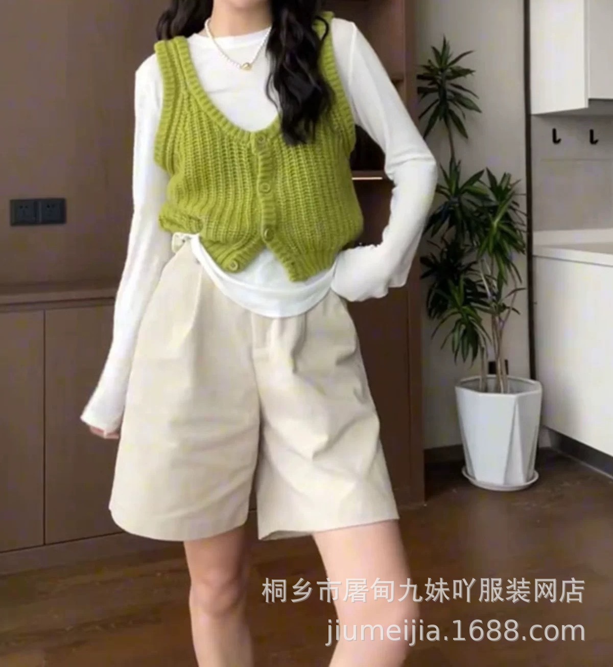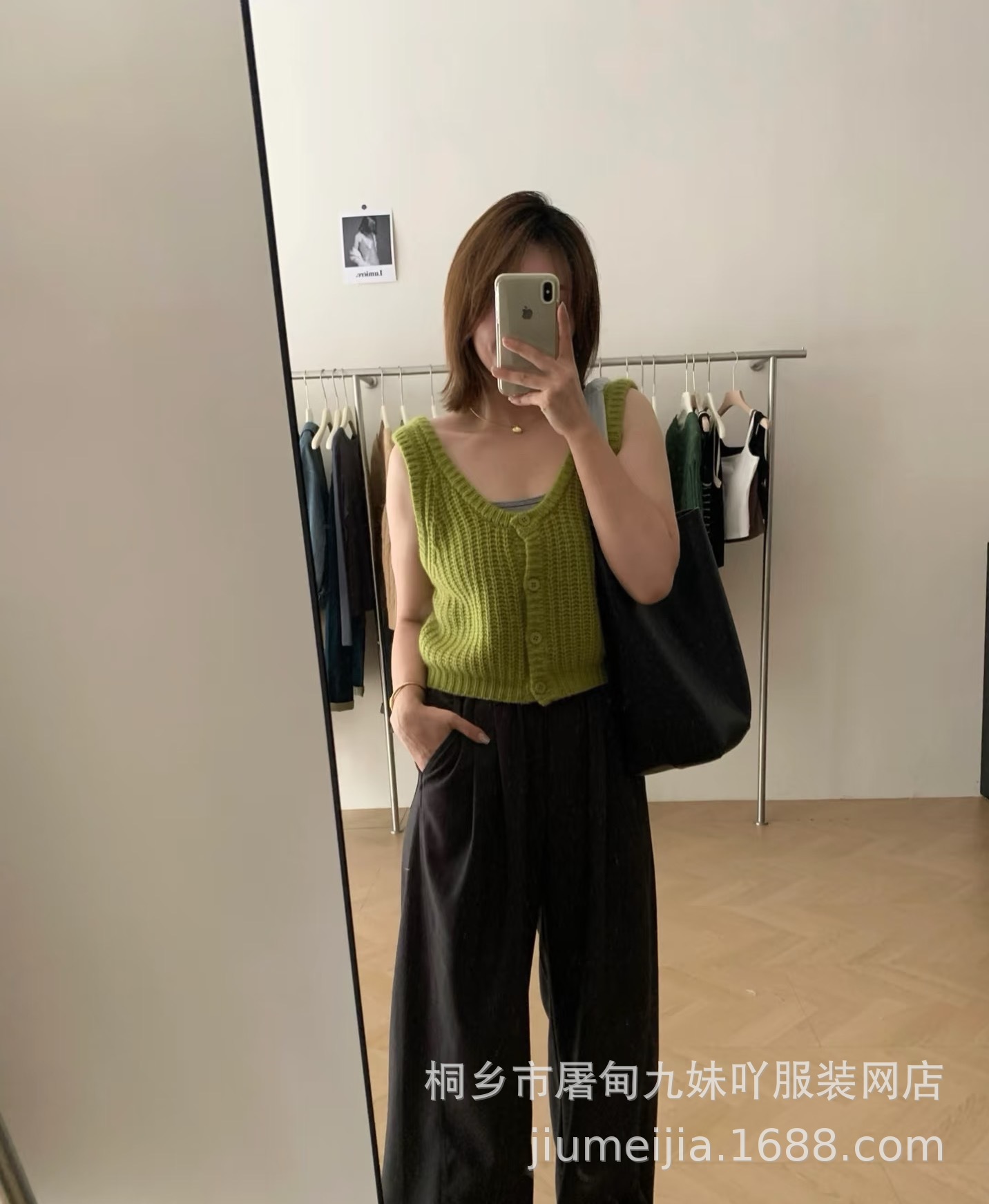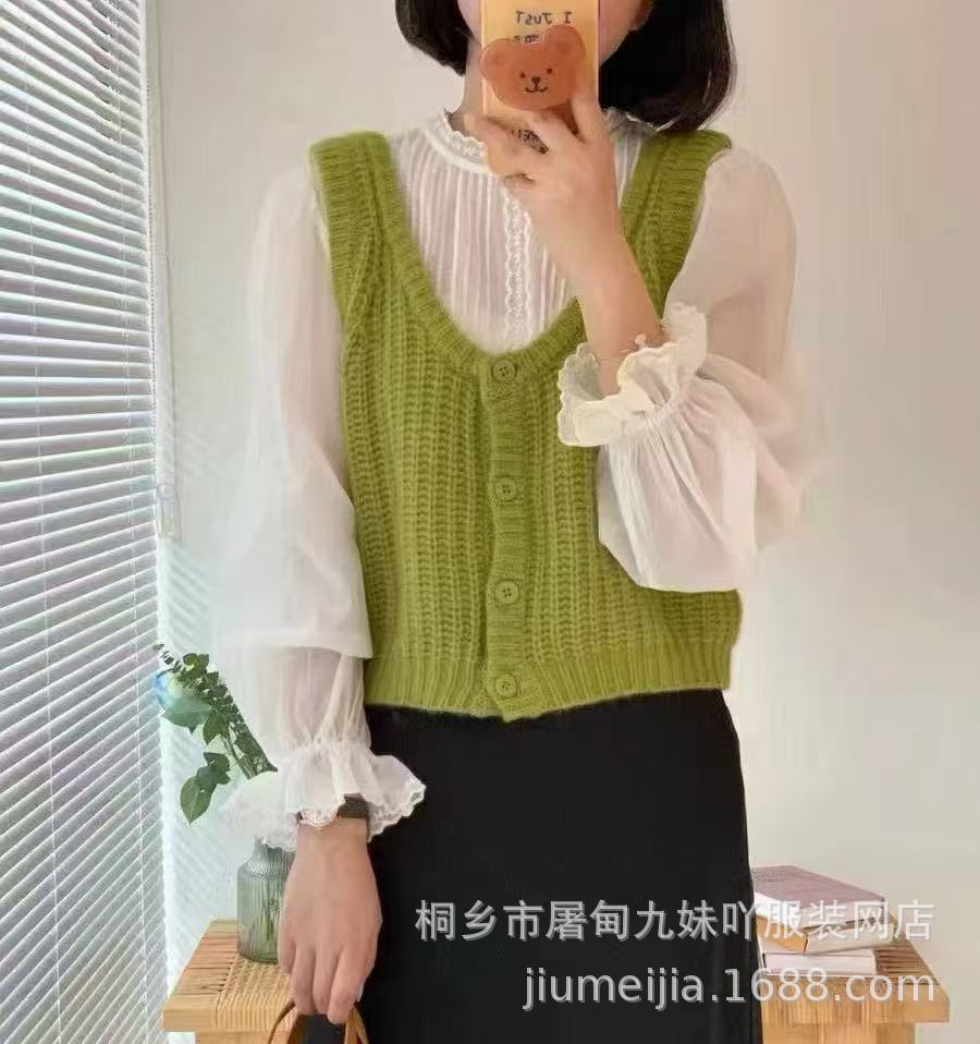 Вязаный жилет с v-образным вырезом для женщин, ранняя осень и зима, корейский стиль, маленький ароматный модный жилет, свитер, короткий дизайн, многослойный топ