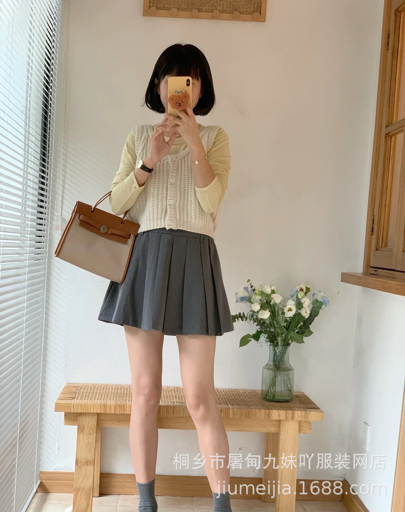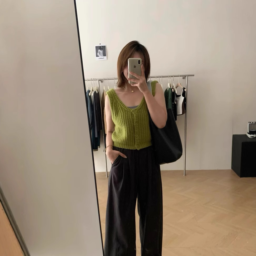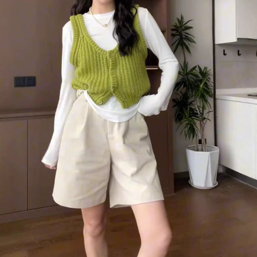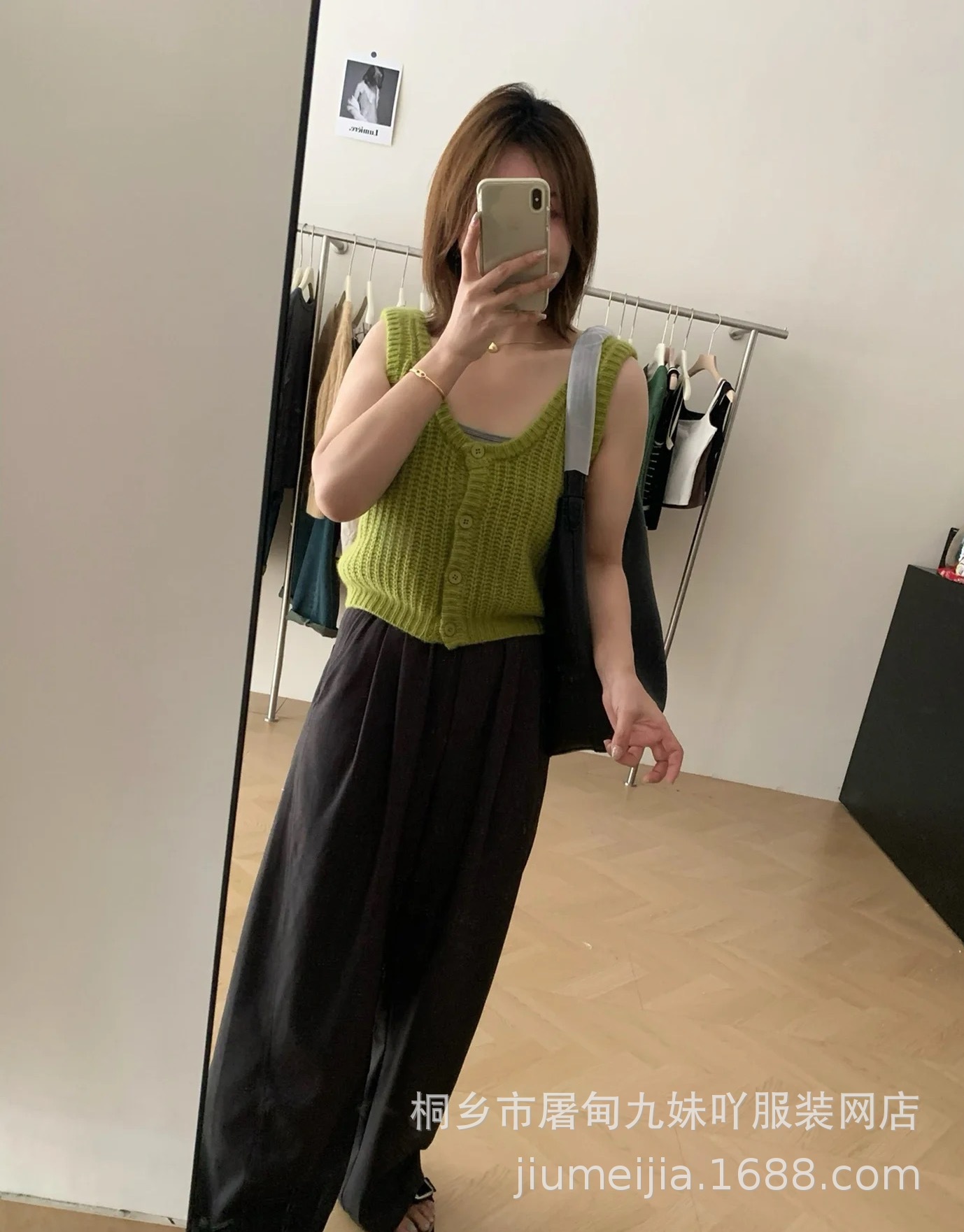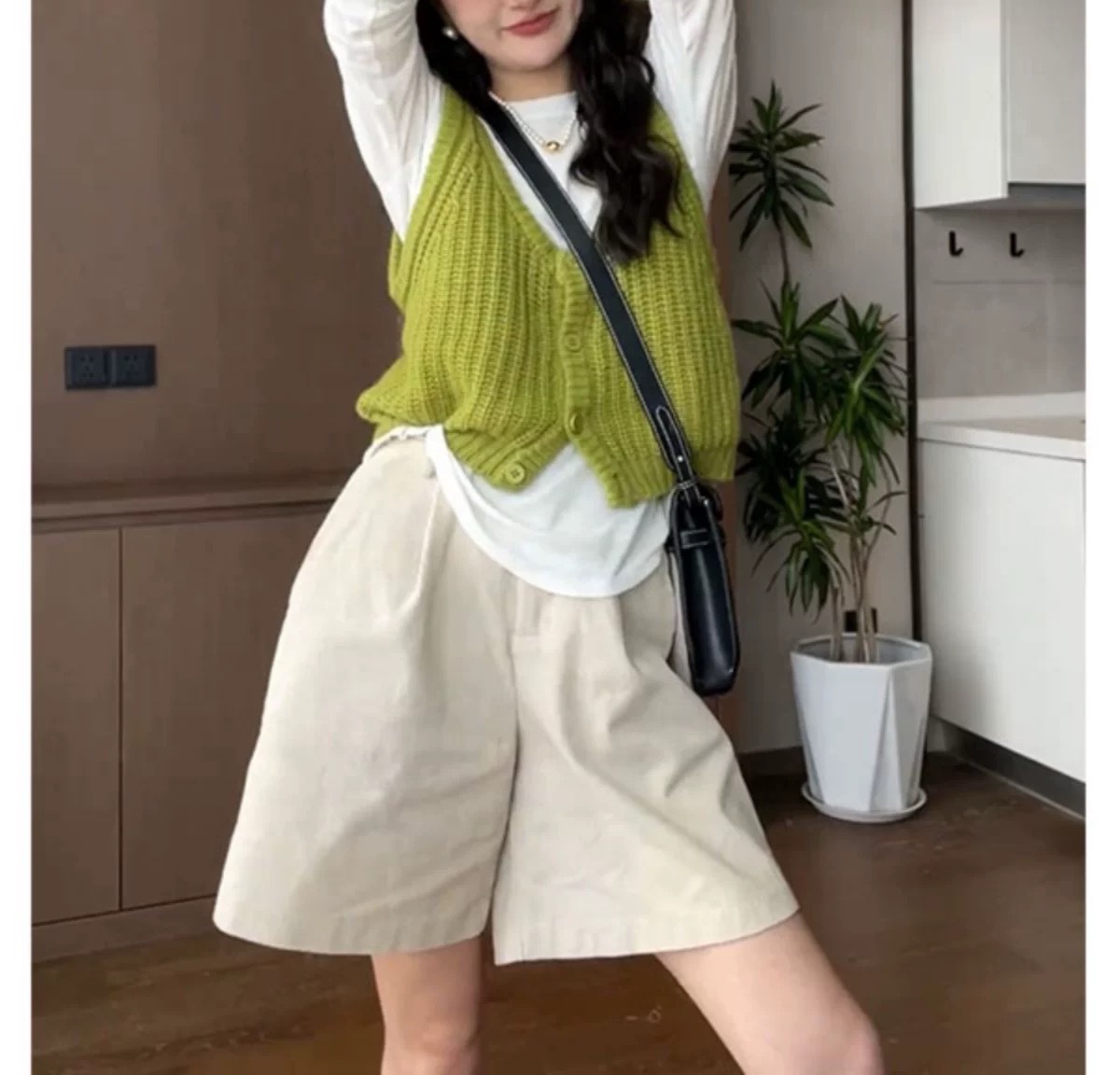 Вязаный жилет с v-образным вырезом для женщин, ранняя осень и зима, корейский стиль, маленький ароматный модный жилет, свитер, короткий дизайн, многослойный топ