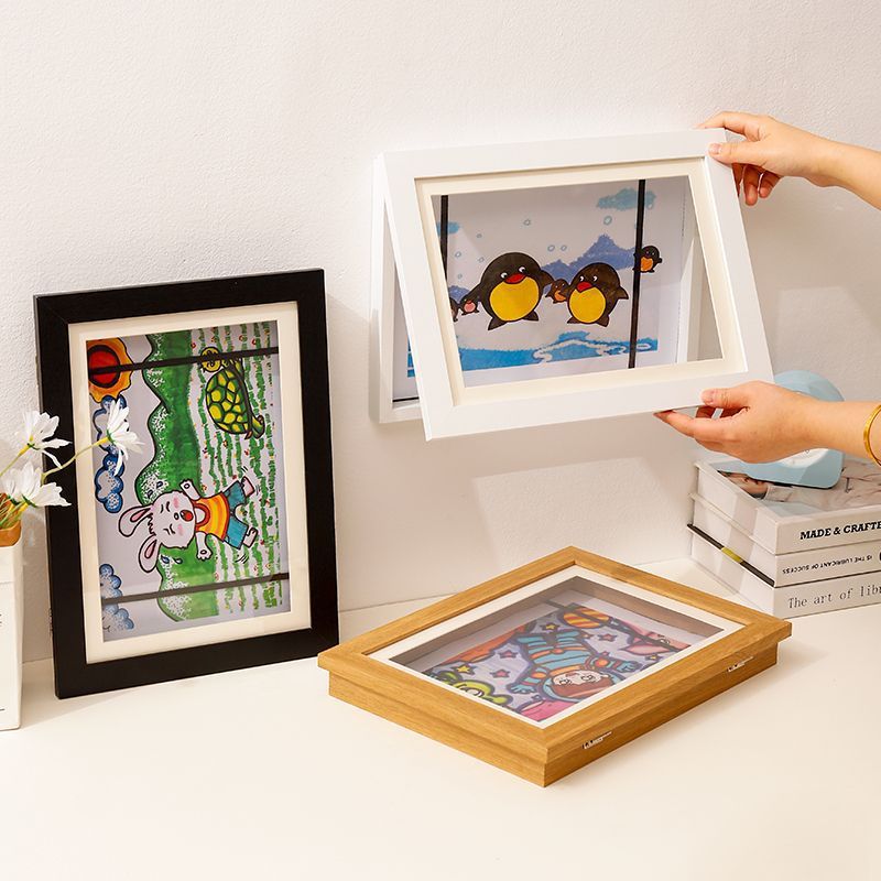 Детская фоторамка A4a3, 8K, открытая бумага для хранения рисунков, детские работы, откидная крышка, сменный дисплей, деревянная фоторамка для хранения
