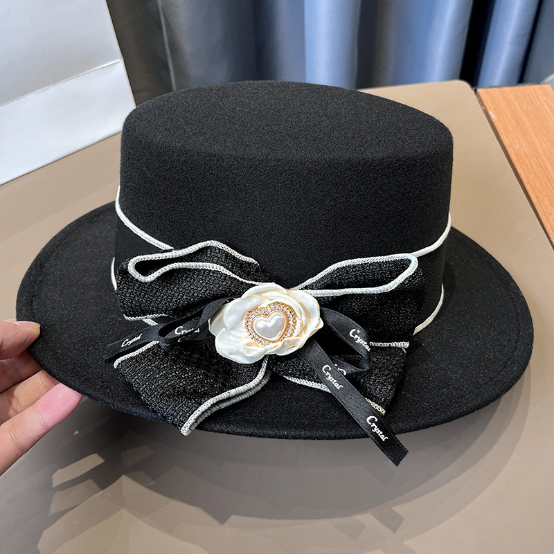 Женская французская ретро-шляпа на плоской подошве, шерстяная модная повседневная осенне-зимняя женская корейская модная маленькая шляпа в британском стиле, черная