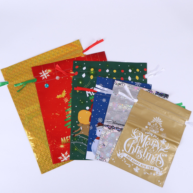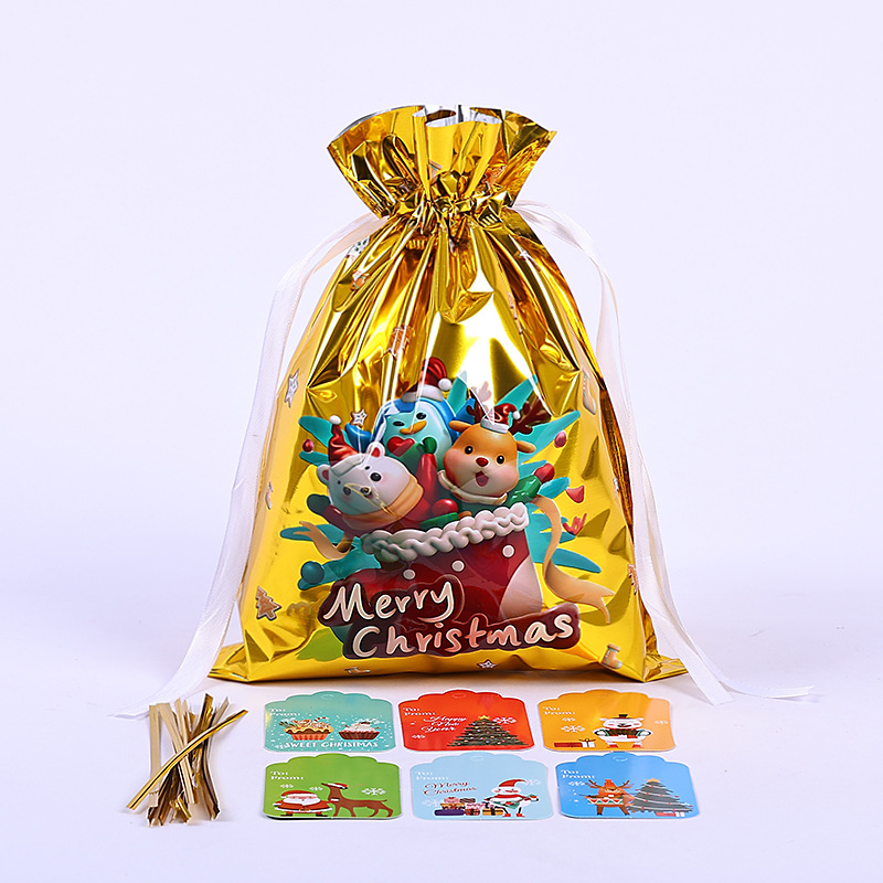Новый 3D подарочный пакет на шнурке, Рождественская вечеринка, сумка для конфет из алюминиевой фольги, новогодняя креативная подарочная упаковка, сумка