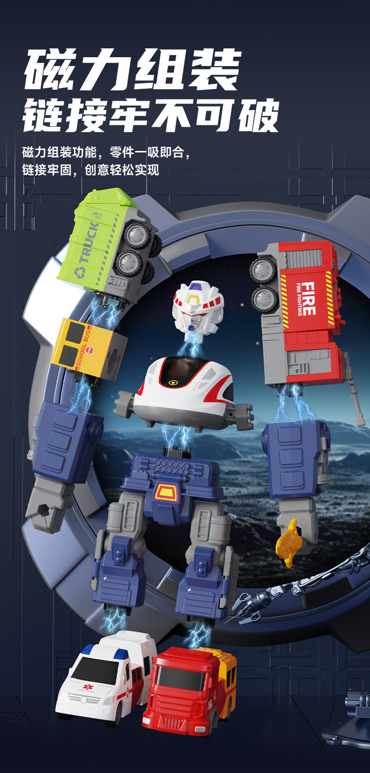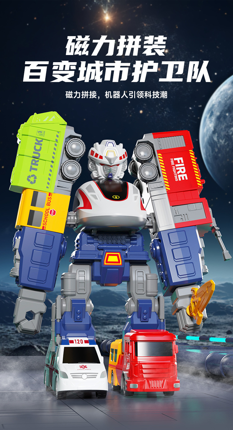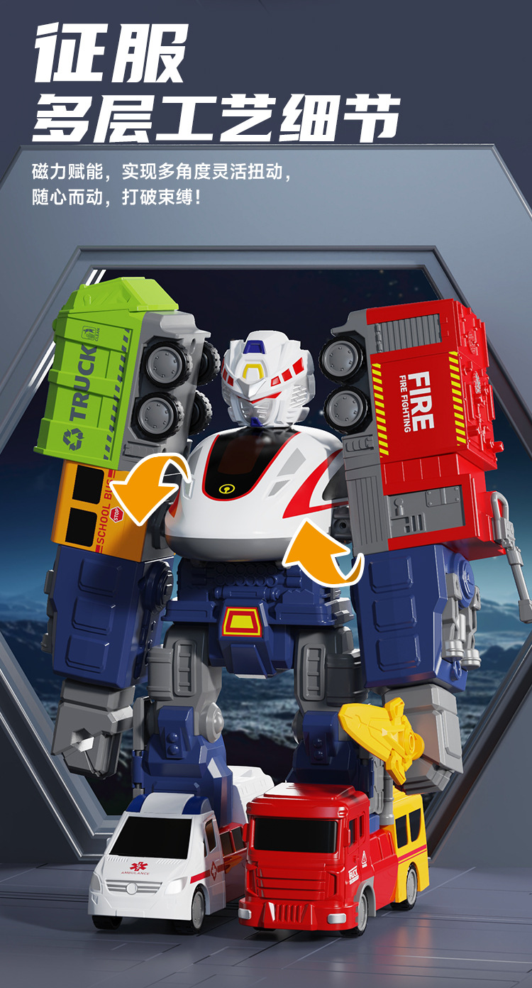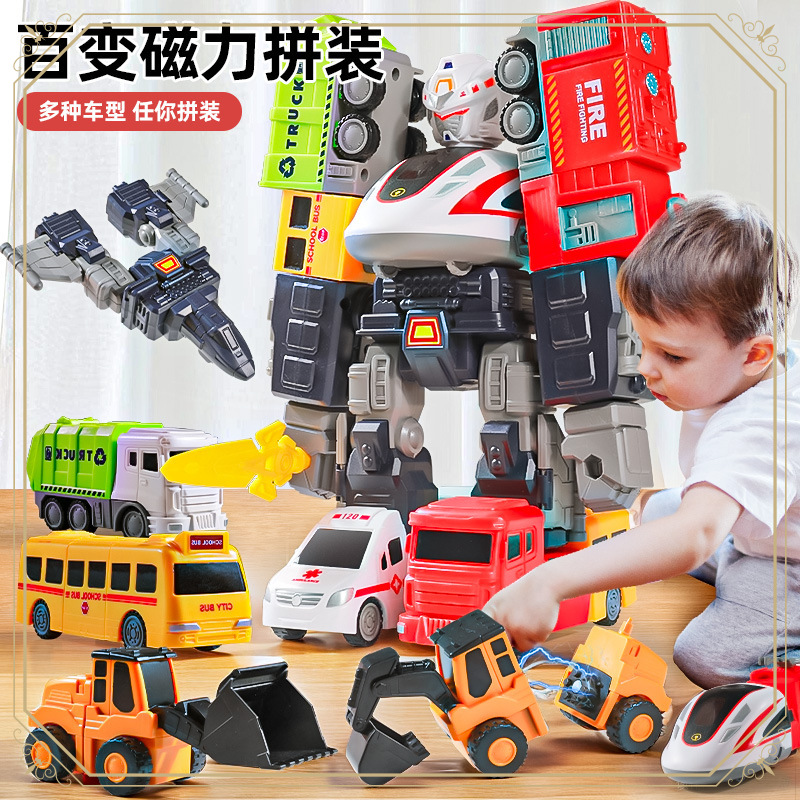 Детский магнитный робот-сборка, мусоровоз, скорая помощь, школьный автобус, развивающая игрушка, автомобиль, подарок на день рождения для мальчика