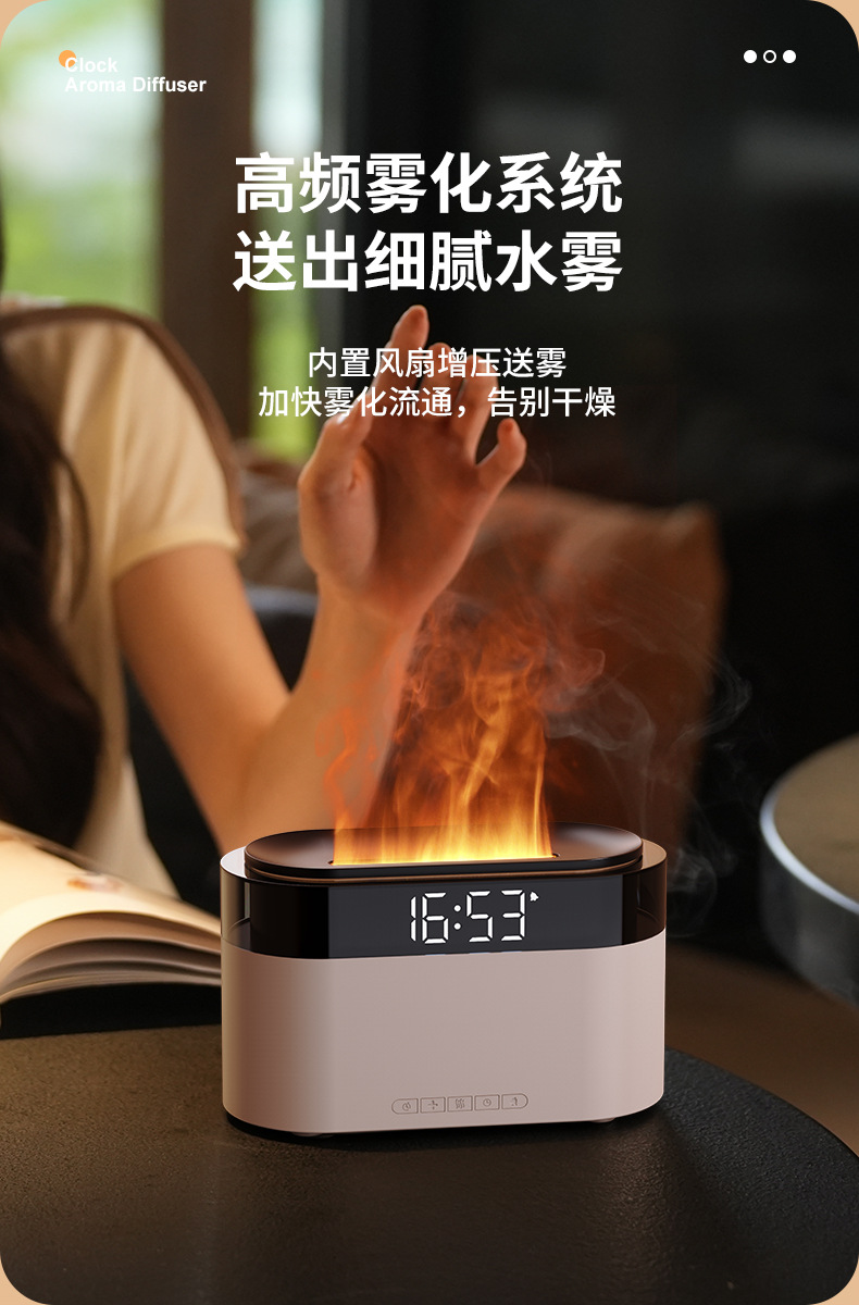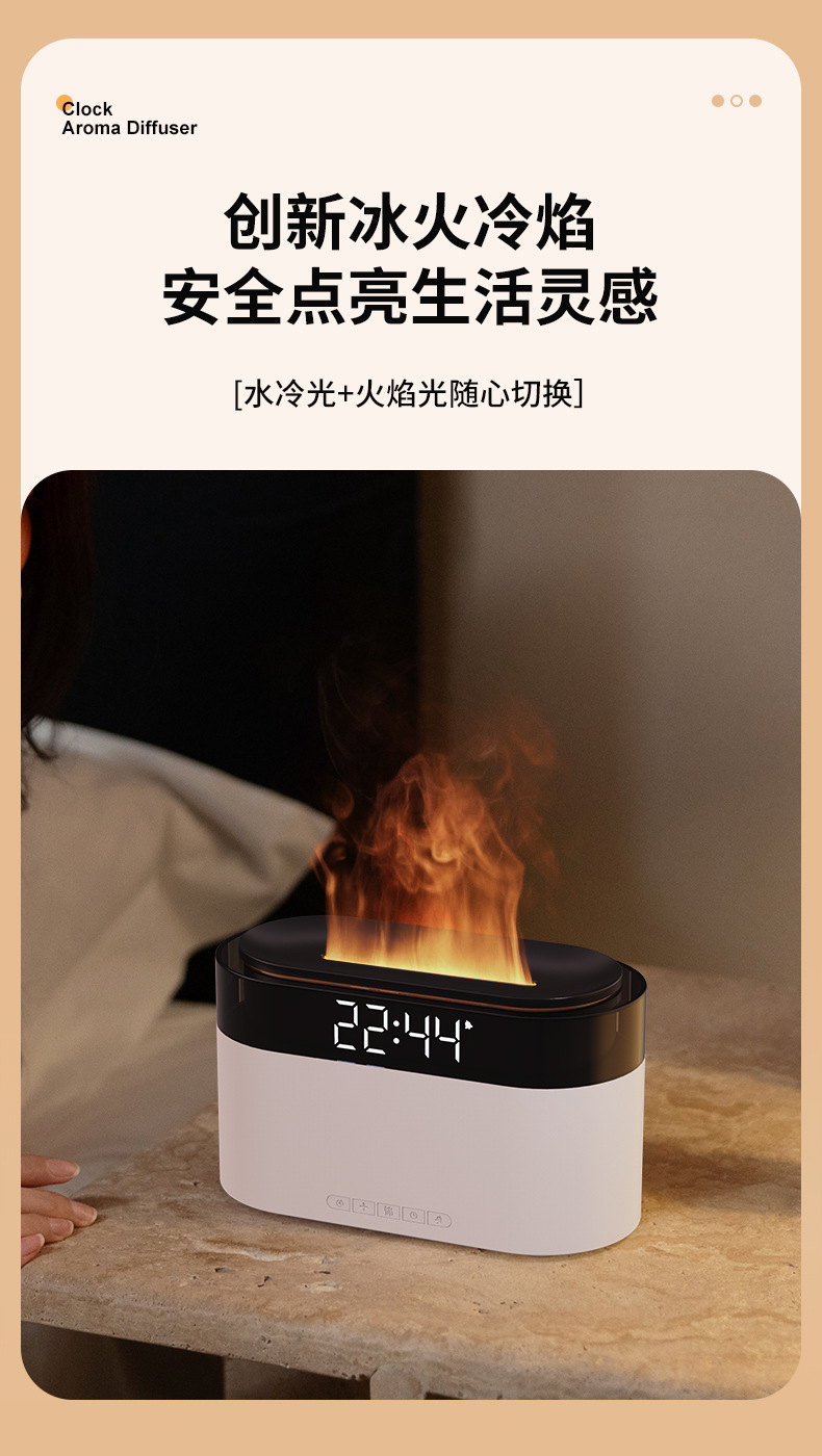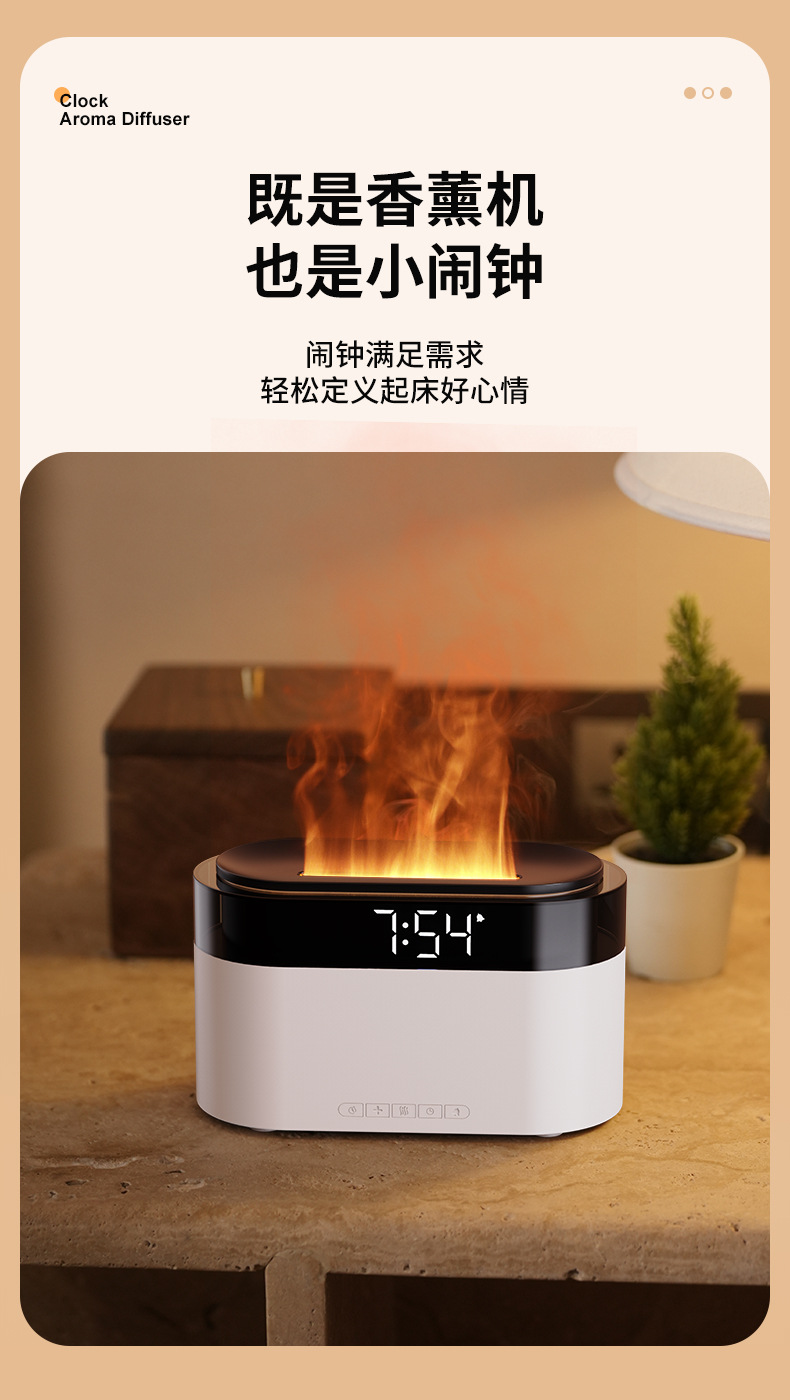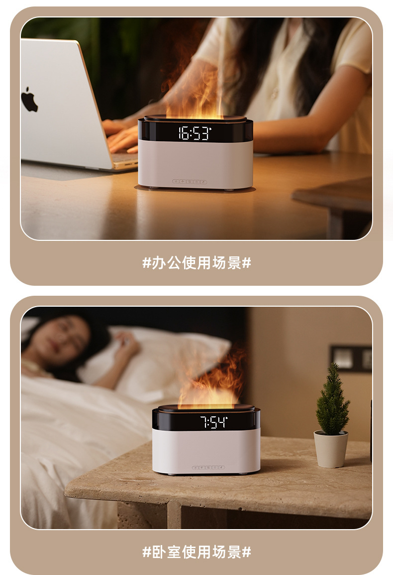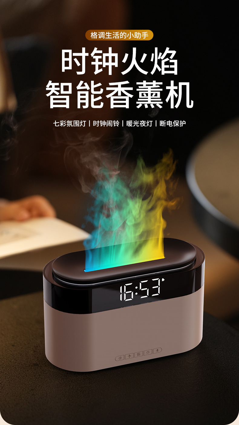 Аромадиффузор-увлажнитель с имитацией пламени, будильник, настольный, для дома, с функцией трансграничной симуляции пламени