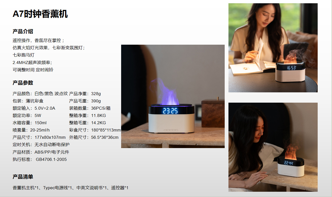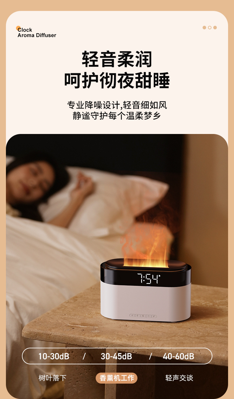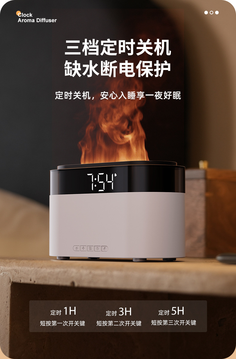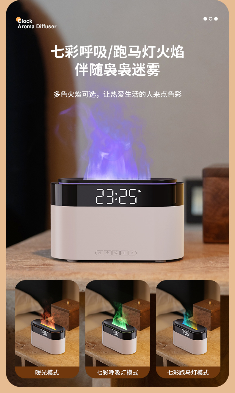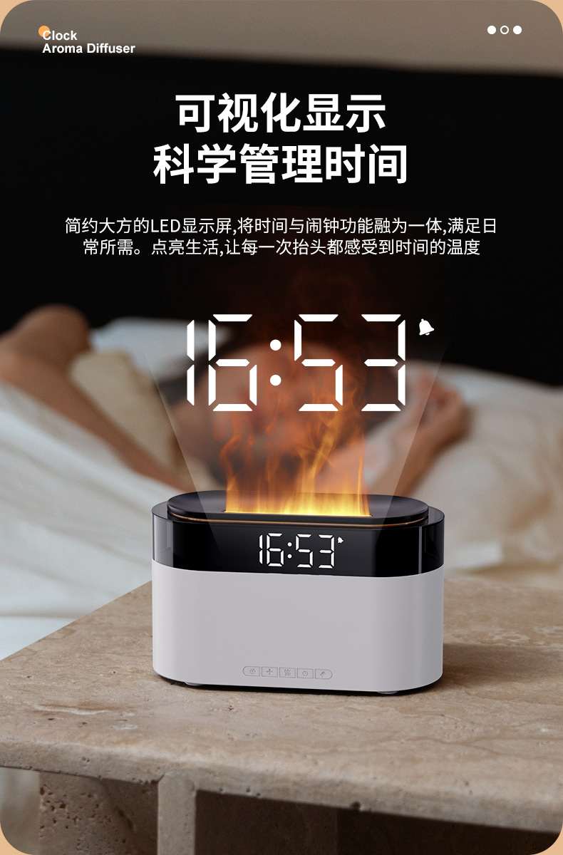 Аромадиффузор-увлажнитель с имитацией пламени, будильник, настольный, для дома, с функцией трансграничной симуляции пламени