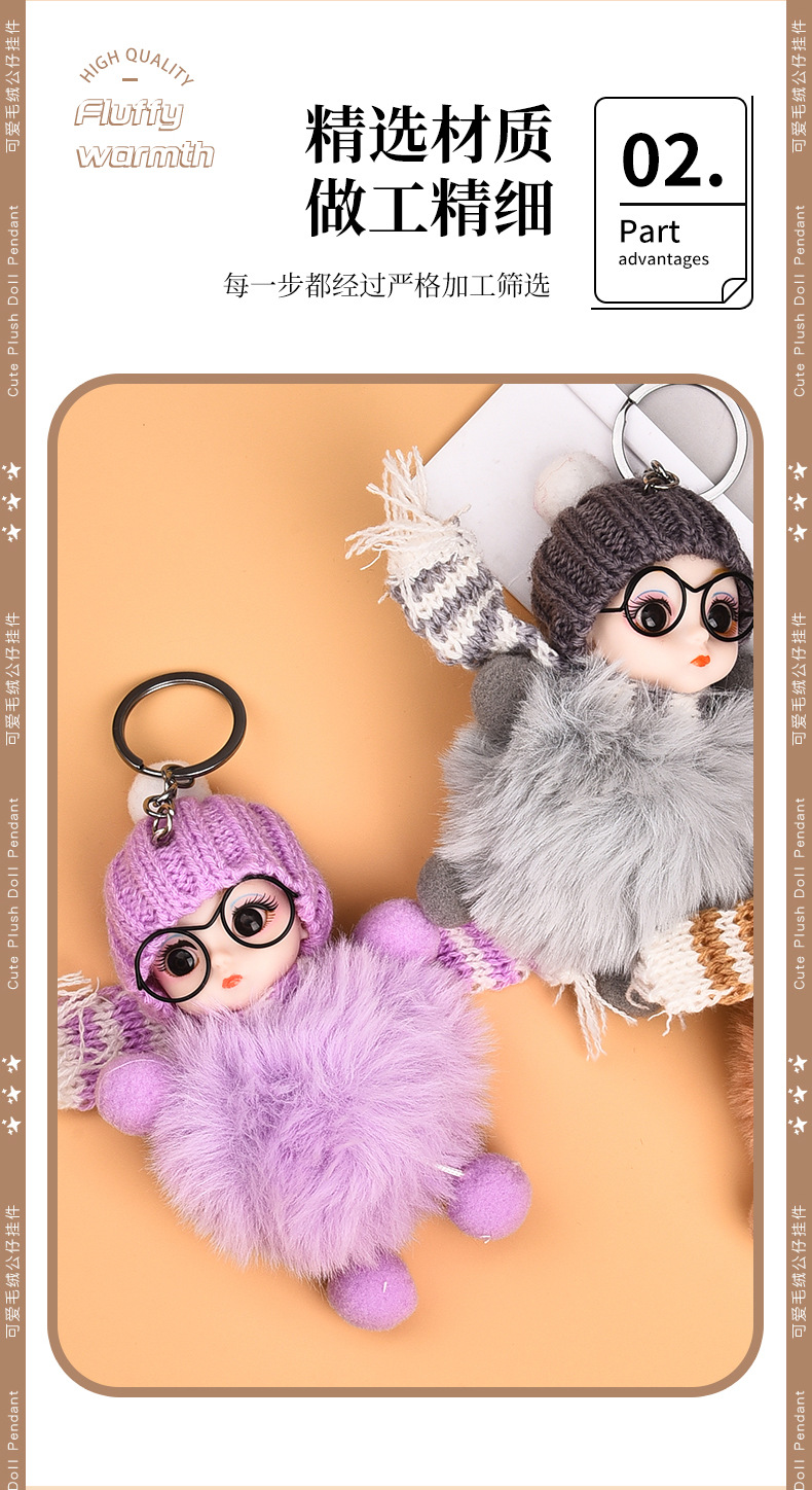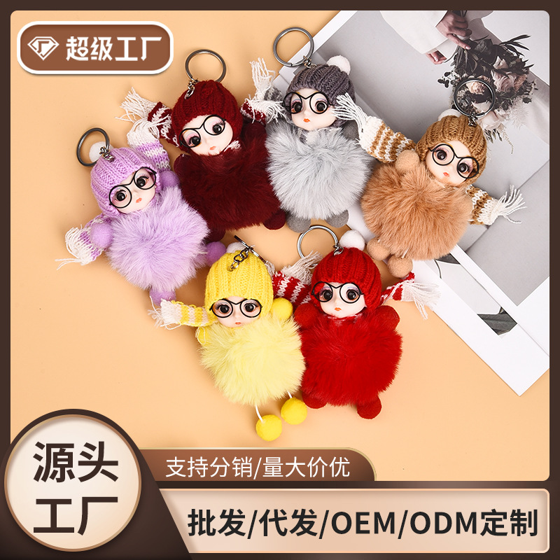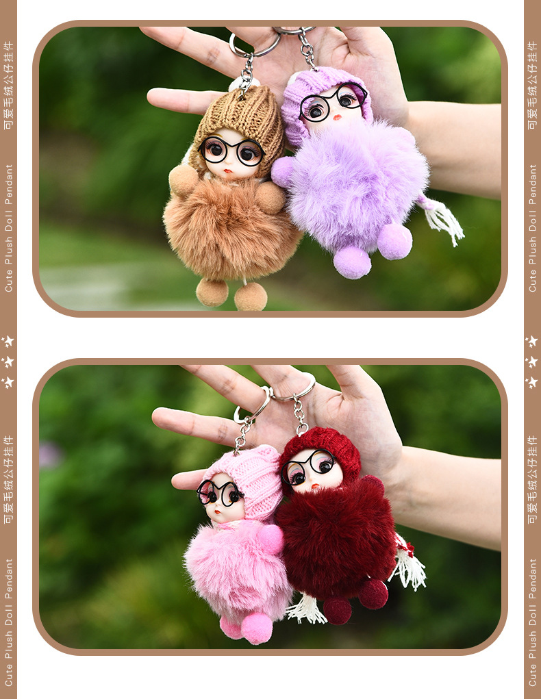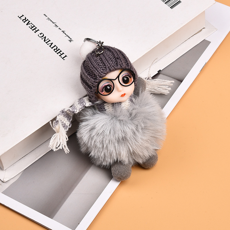 Кукла из лисьего меха, автомобильный брелок, подвеска, милая плюшевая кукла Барби, кукла, сумка, подвеска, подарок для пары
