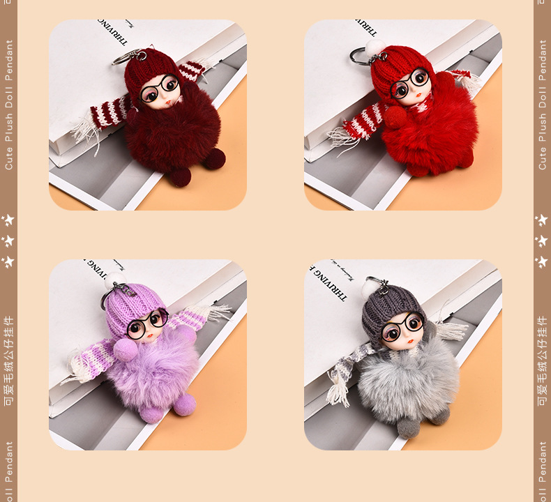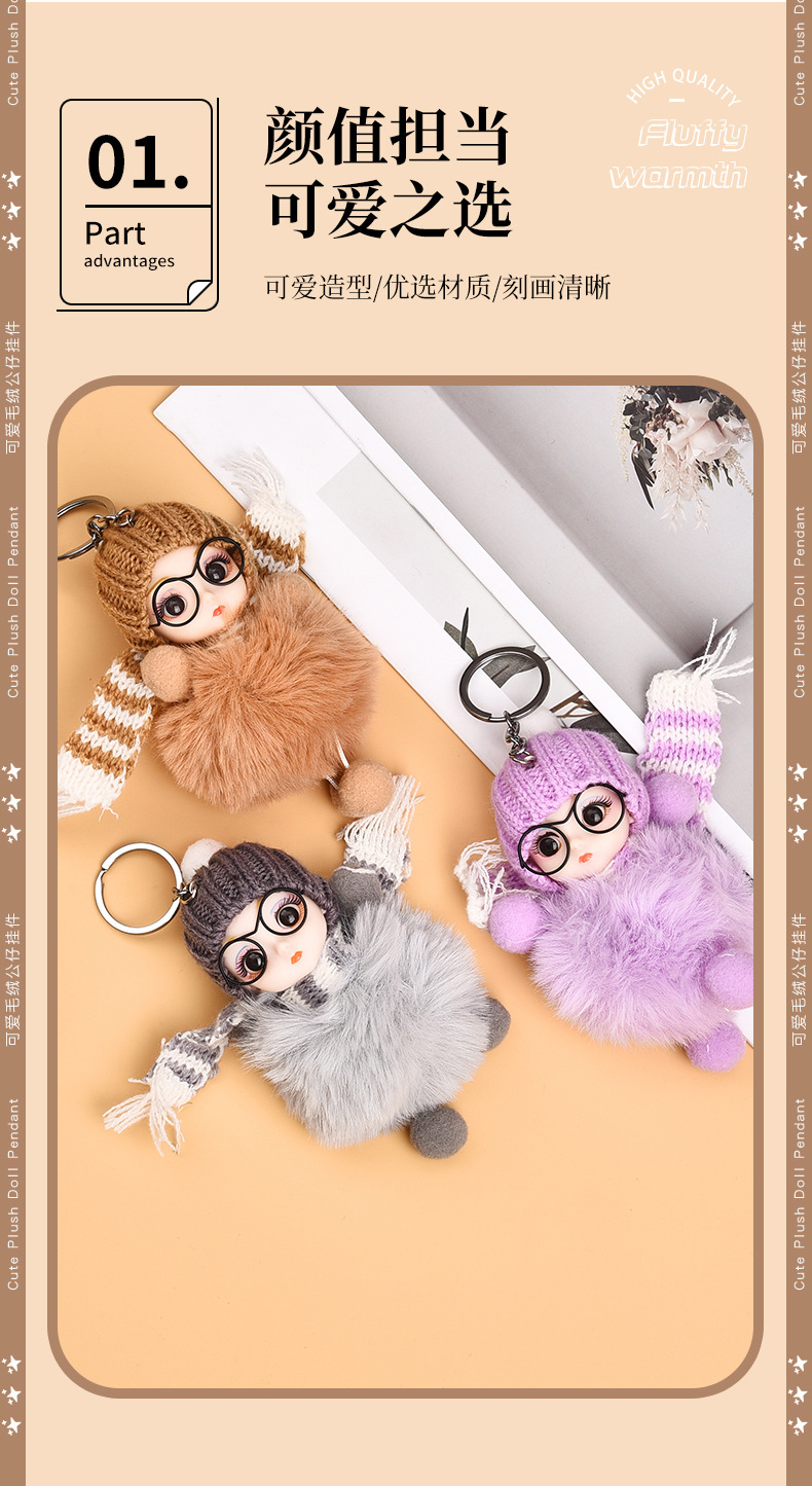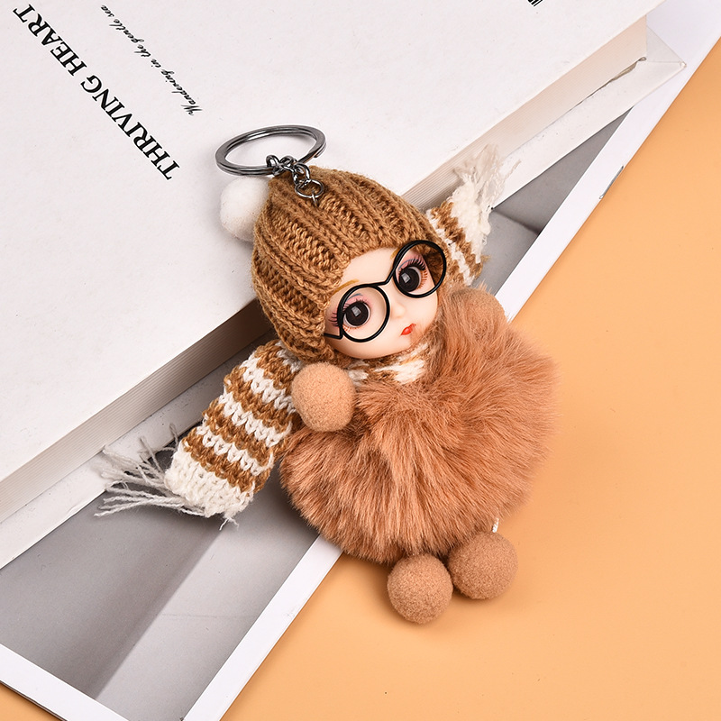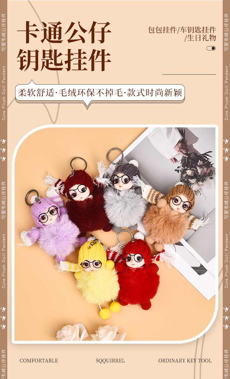 Кукла из лисьего меха, автомобильный брелок, подвеска, милая плюшевая кукла Барби, кукла, сумка, подвеска, подарок для пары
