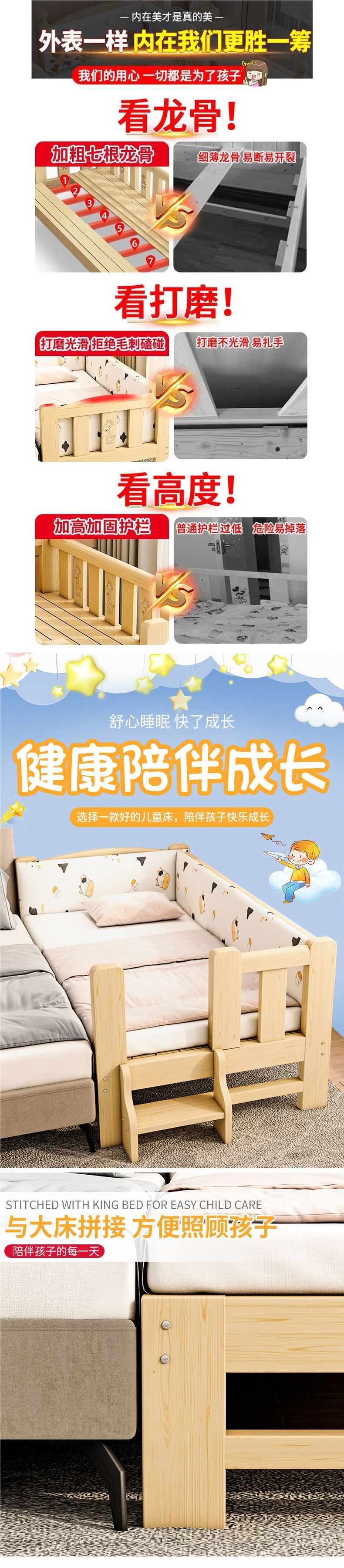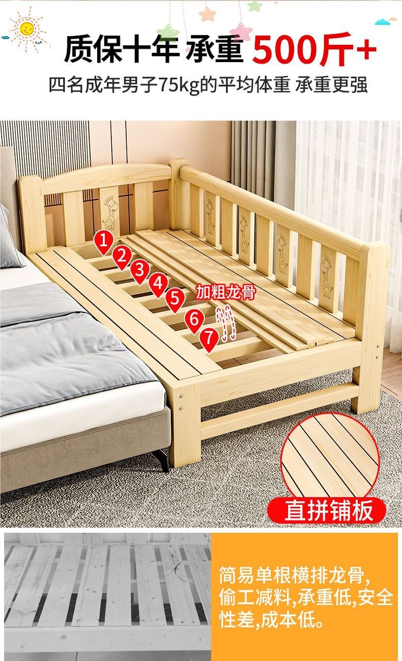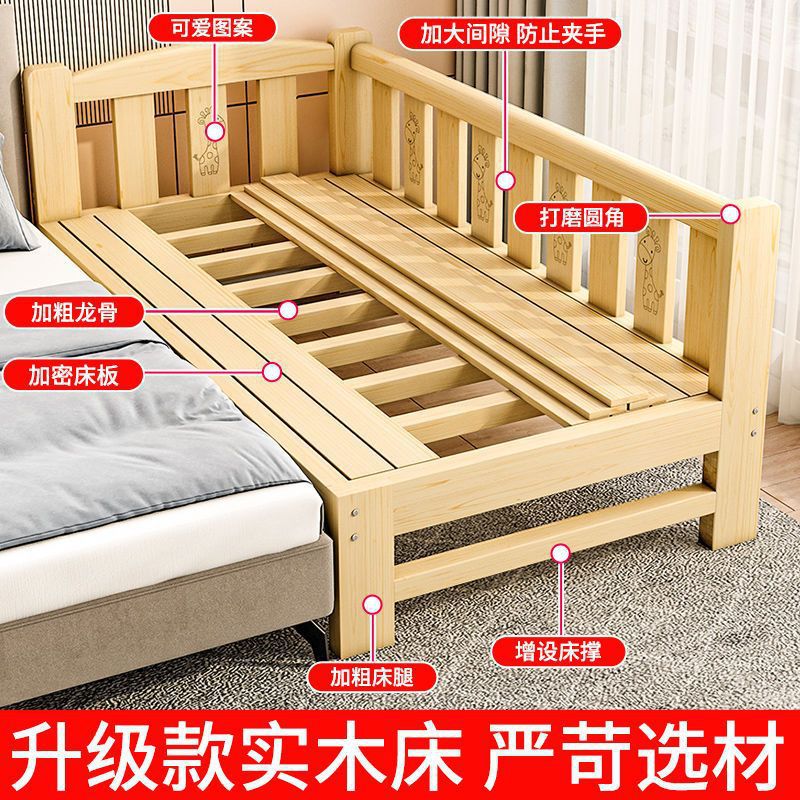 Прикроватная кровать из цельного дерева, расширяющаяся кровать для взрослых, маленькая кровать, большая кровать для взрослых, односпальная кровать, детская кровать