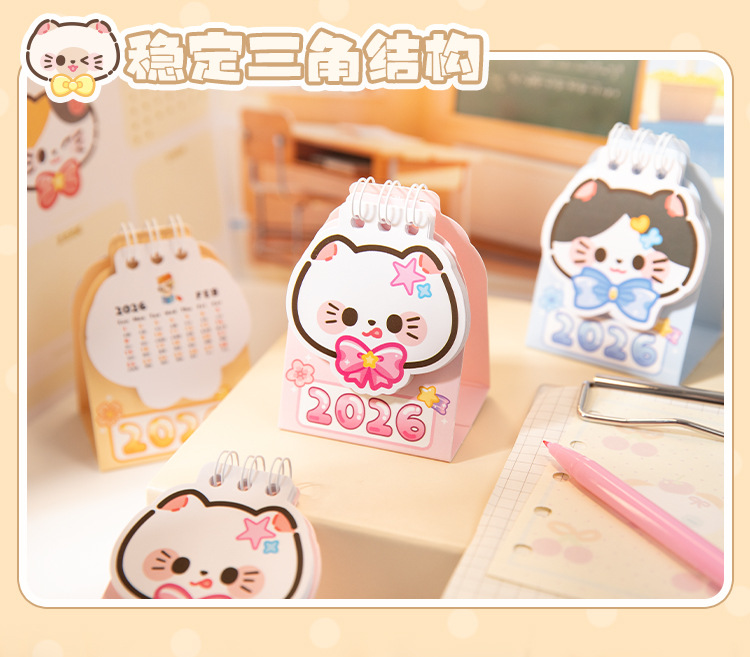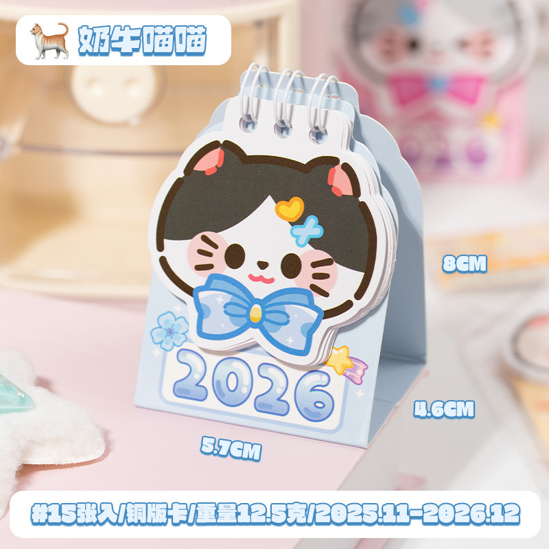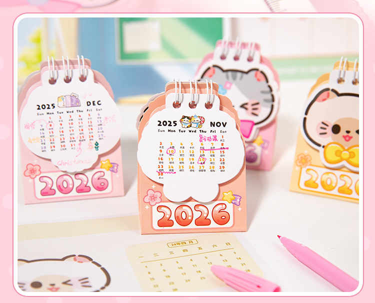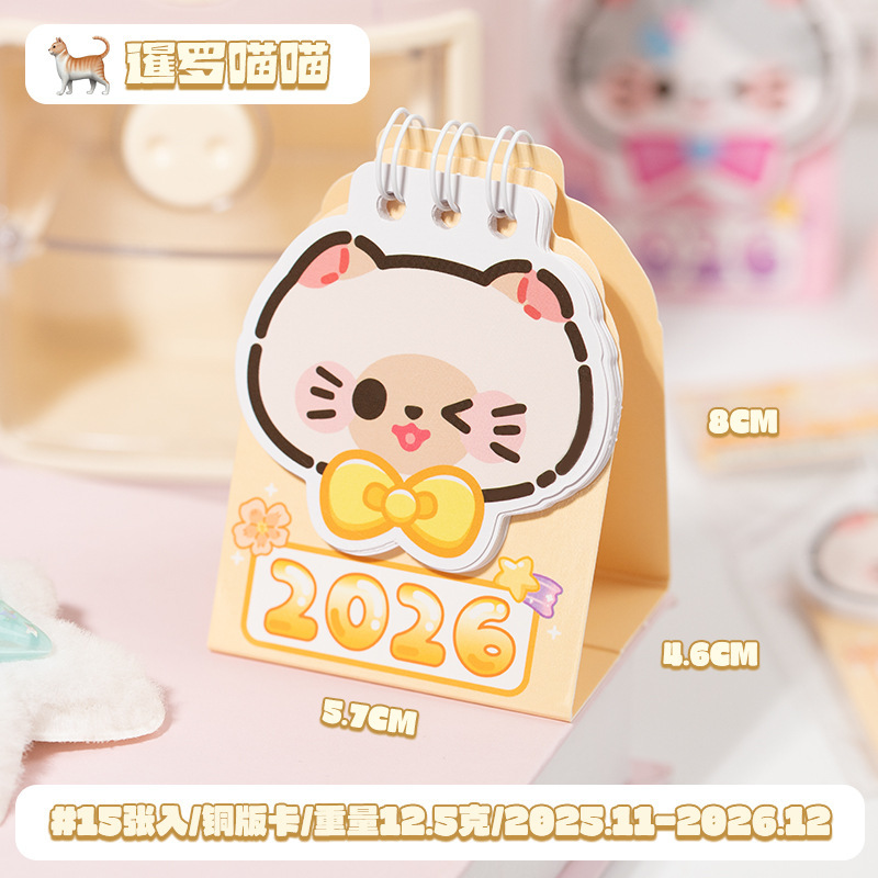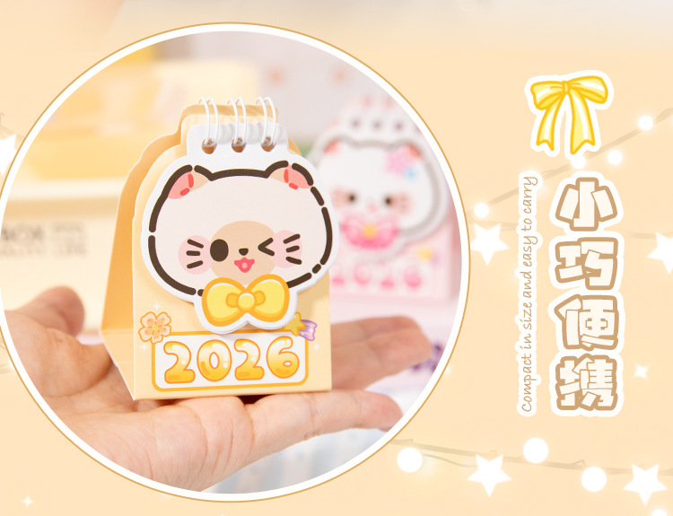 Yuxianfanfanmao 2026 мини-настольный календарь, маленький портативный креативный настольный орнамент, маркер для заметок, маленький календарь