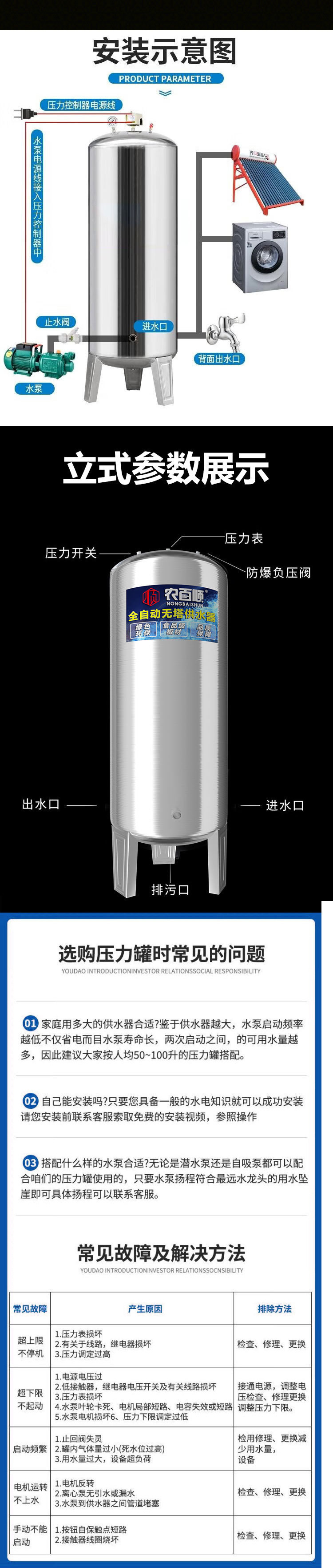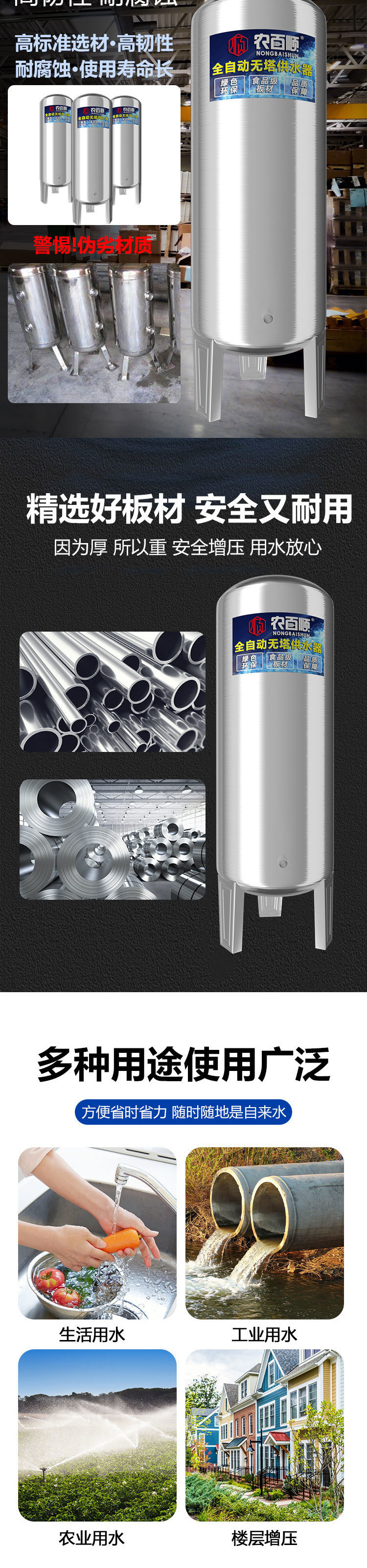 Бесбашенный водопровод, бытовой, из нержавеющей стали, полностью автоматический, насос для повышения давления, насос для подъема воды, резервуар для хранения воды, водонапорная башня