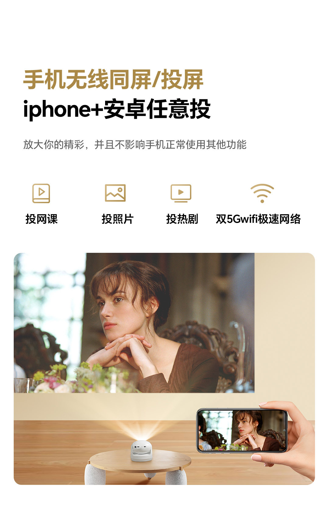 Проектор для проекции на стену M100mini для спальни, для раннего развития, 4K, сверхвысокое разрешение, беспроводная проекция экрана, беспроводное зеркалирование