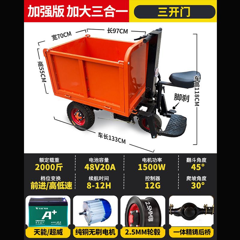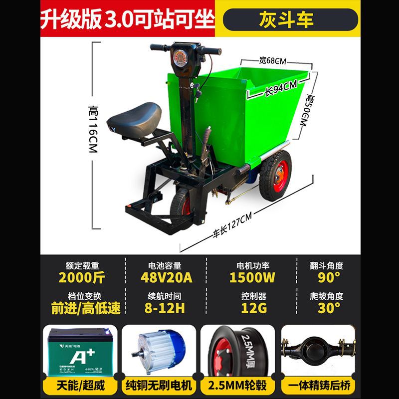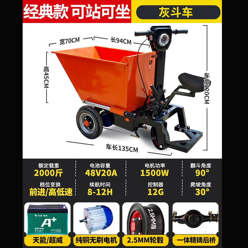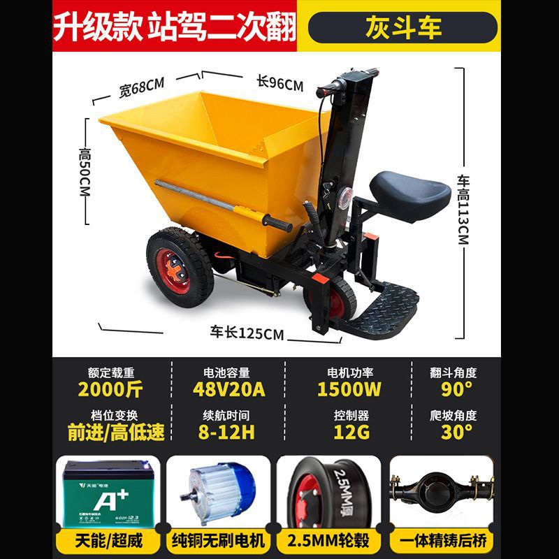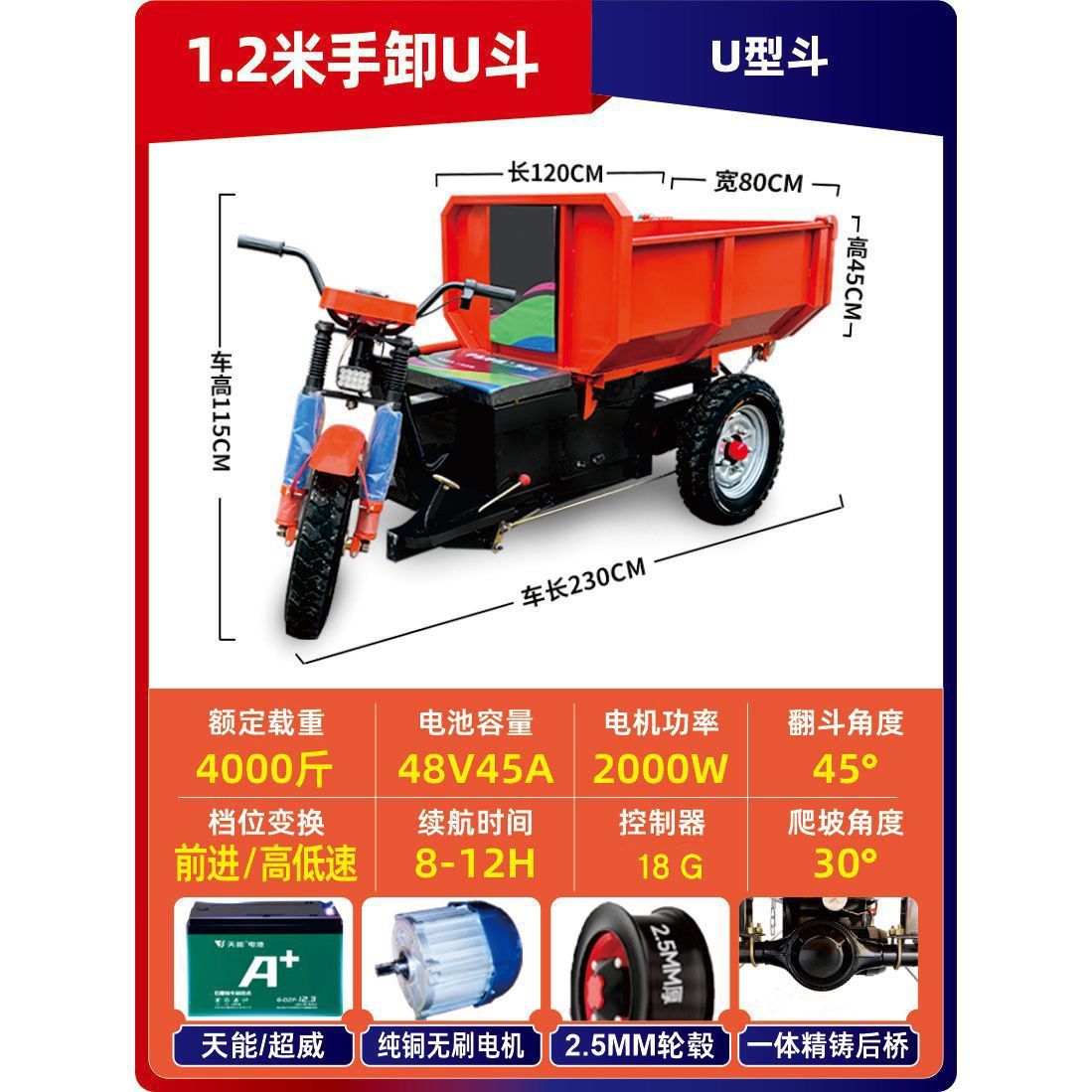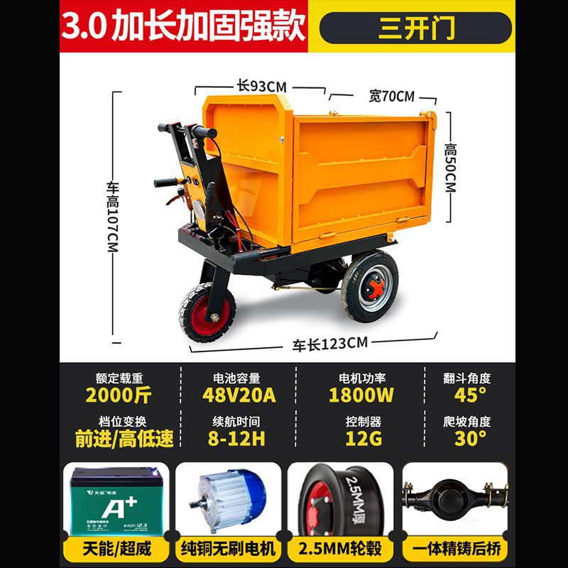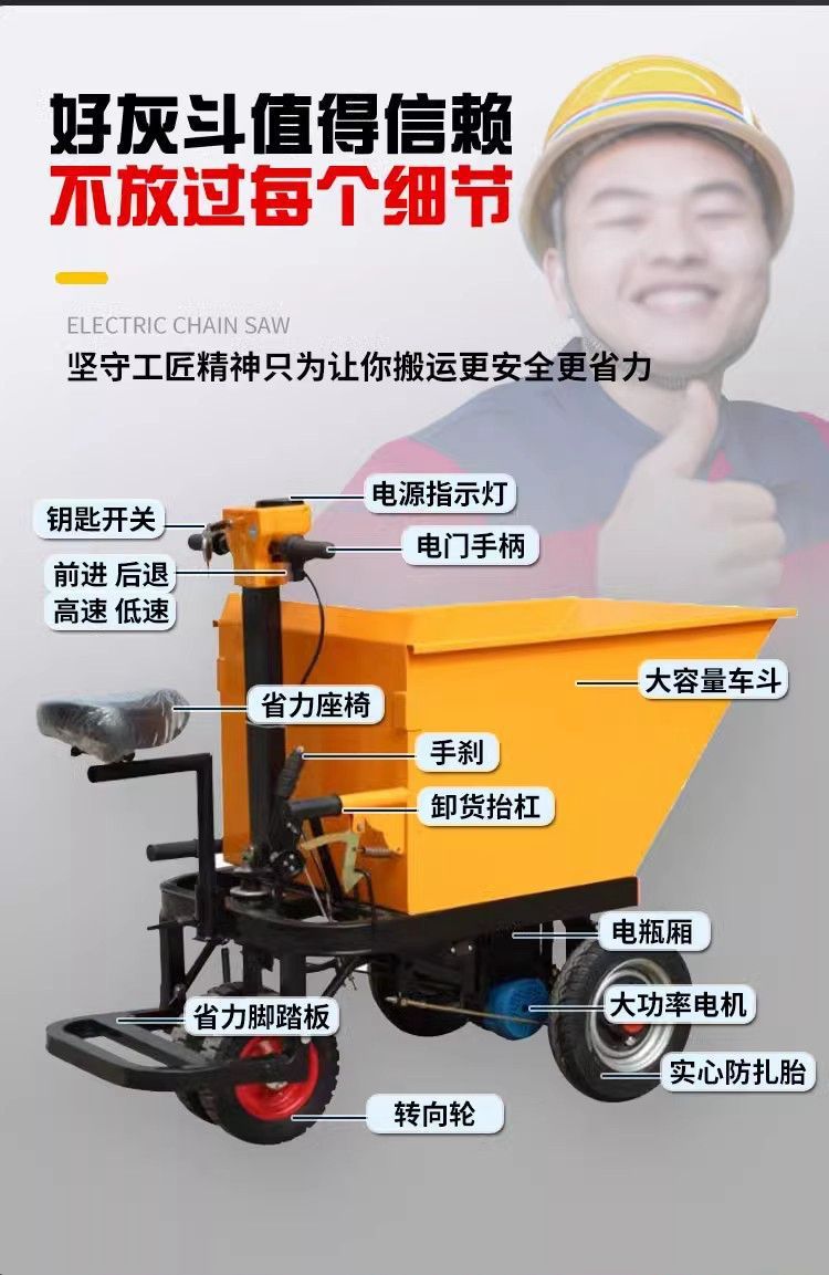 Электрическая тележка для строительной площадки, трехколесный велосипед, самосвал, транспорт кирпича и песка, грузовик для погрузки и разгрузки навоза
