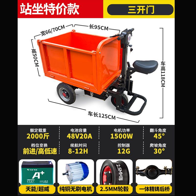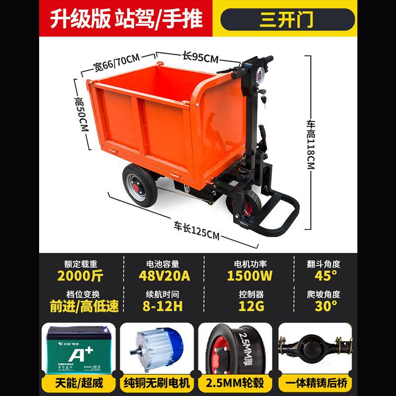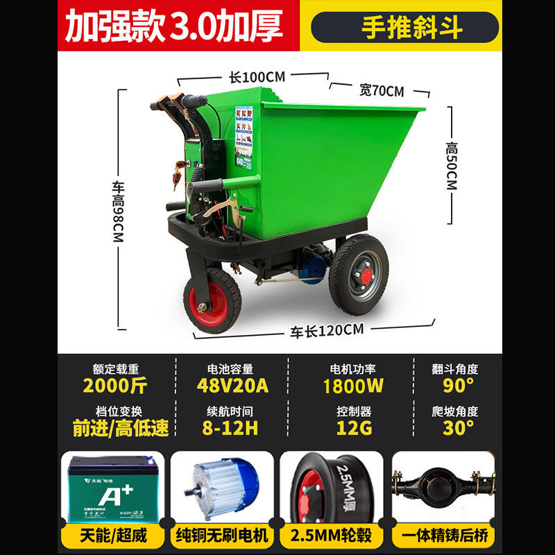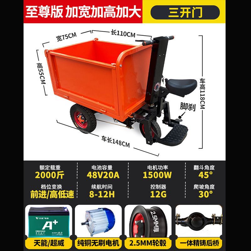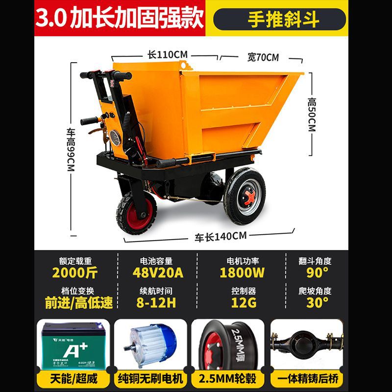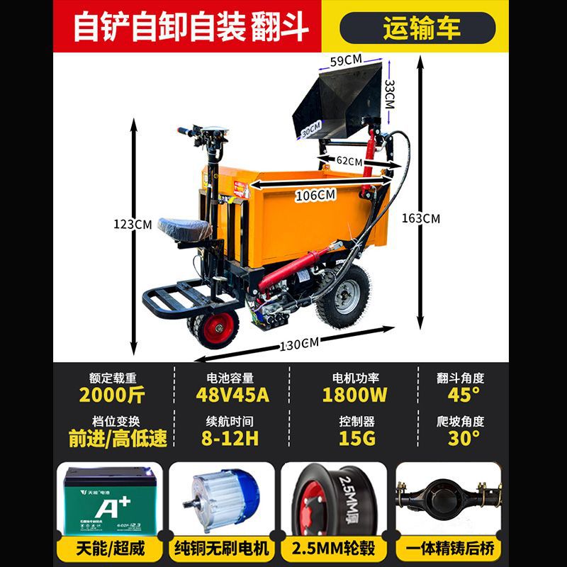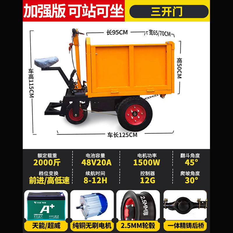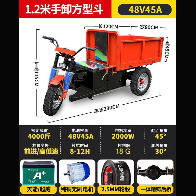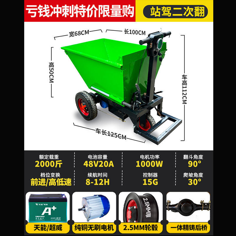 Электрическая тележка для строительной площадки, трехколесный велосипед, самосвал, транспорт кирпича и песка, грузовик для погрузки и разгрузки навоза
