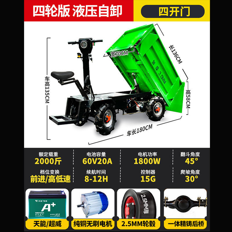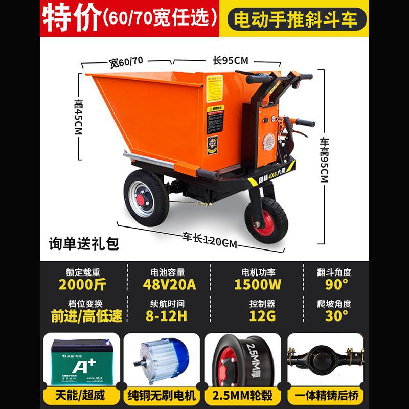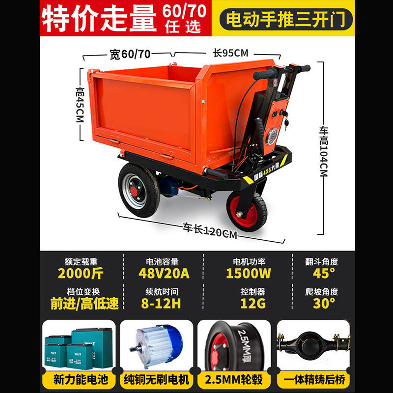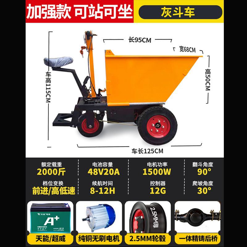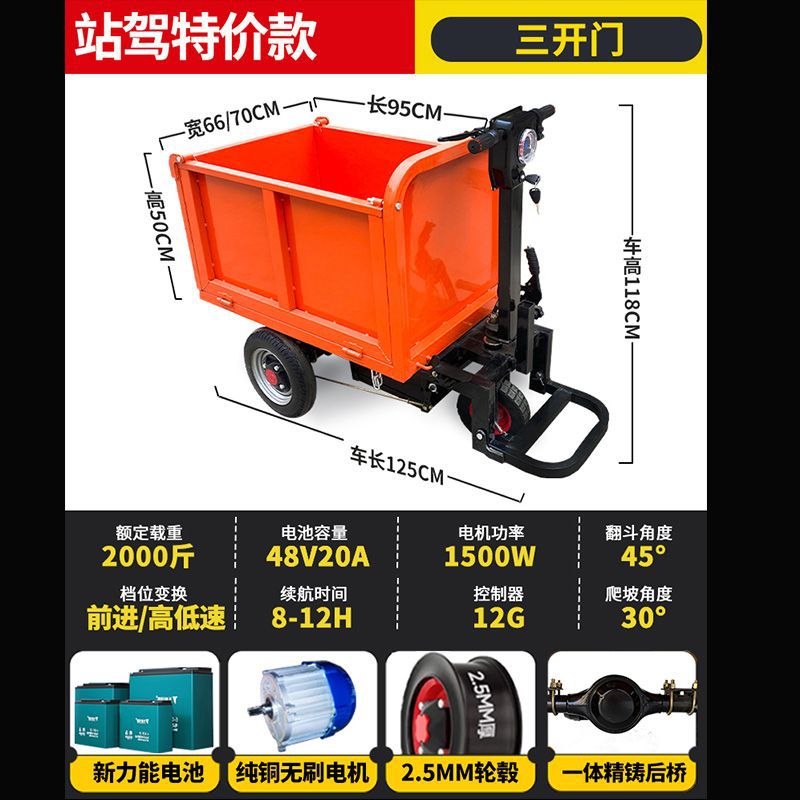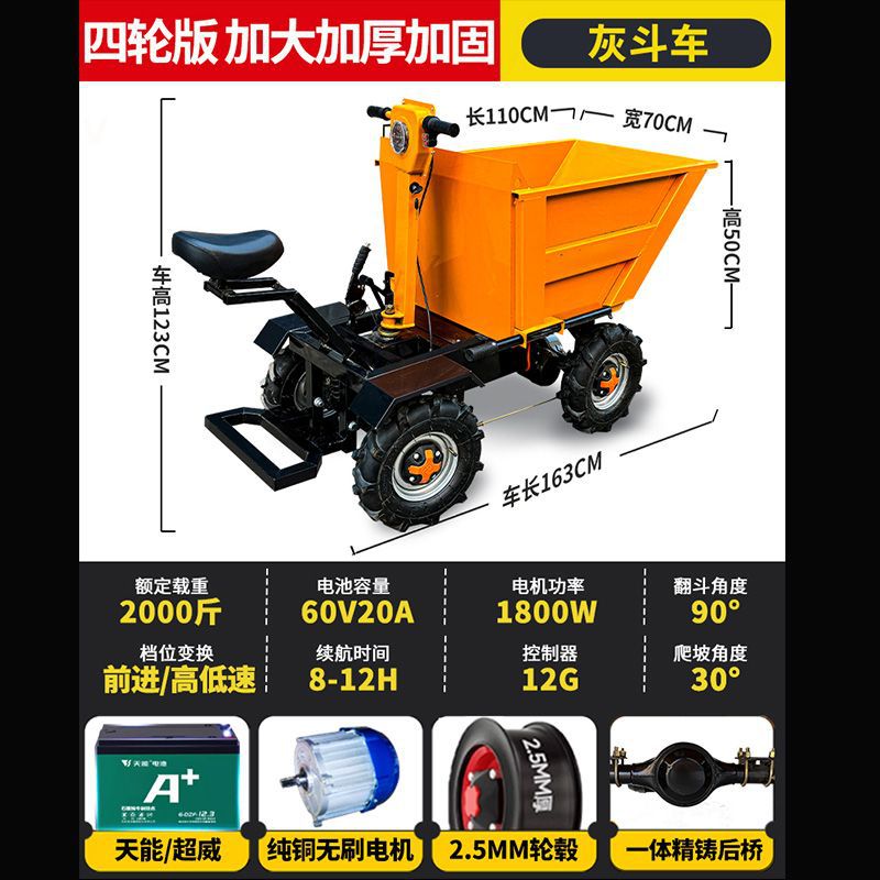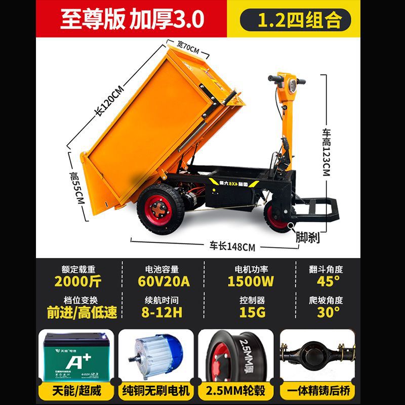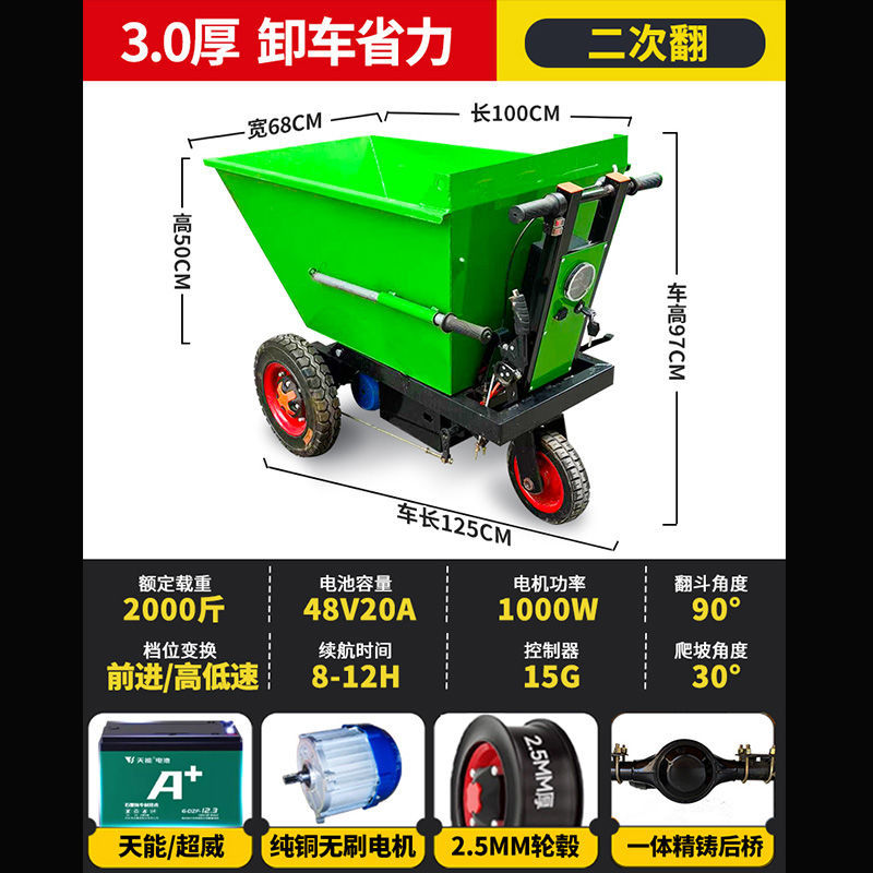 Электрическая тележка для строительной площадки, трехколесный велосипед, самосвал, транспорт кирпича и песка, грузовик для погрузки и разгрузки навоза