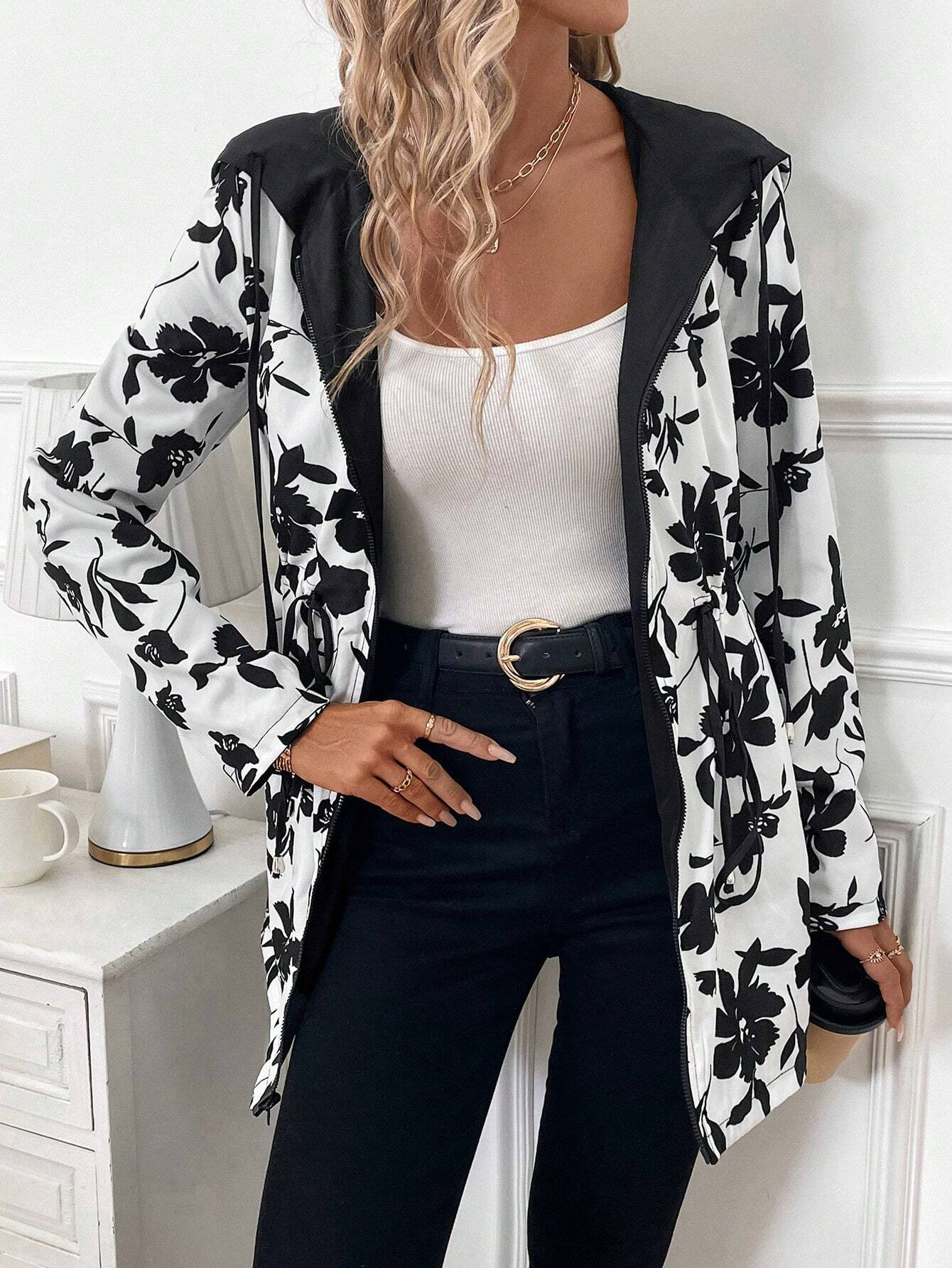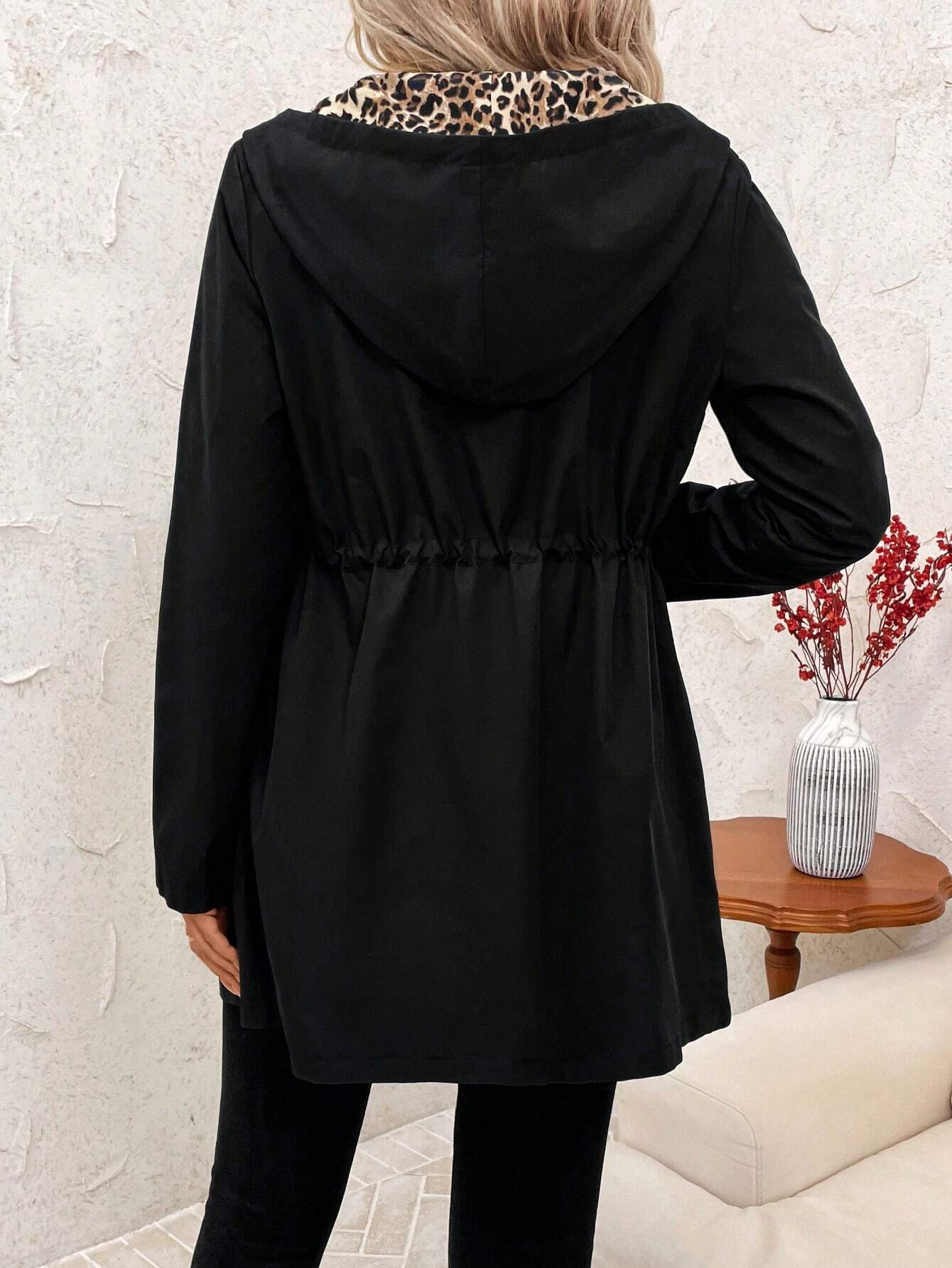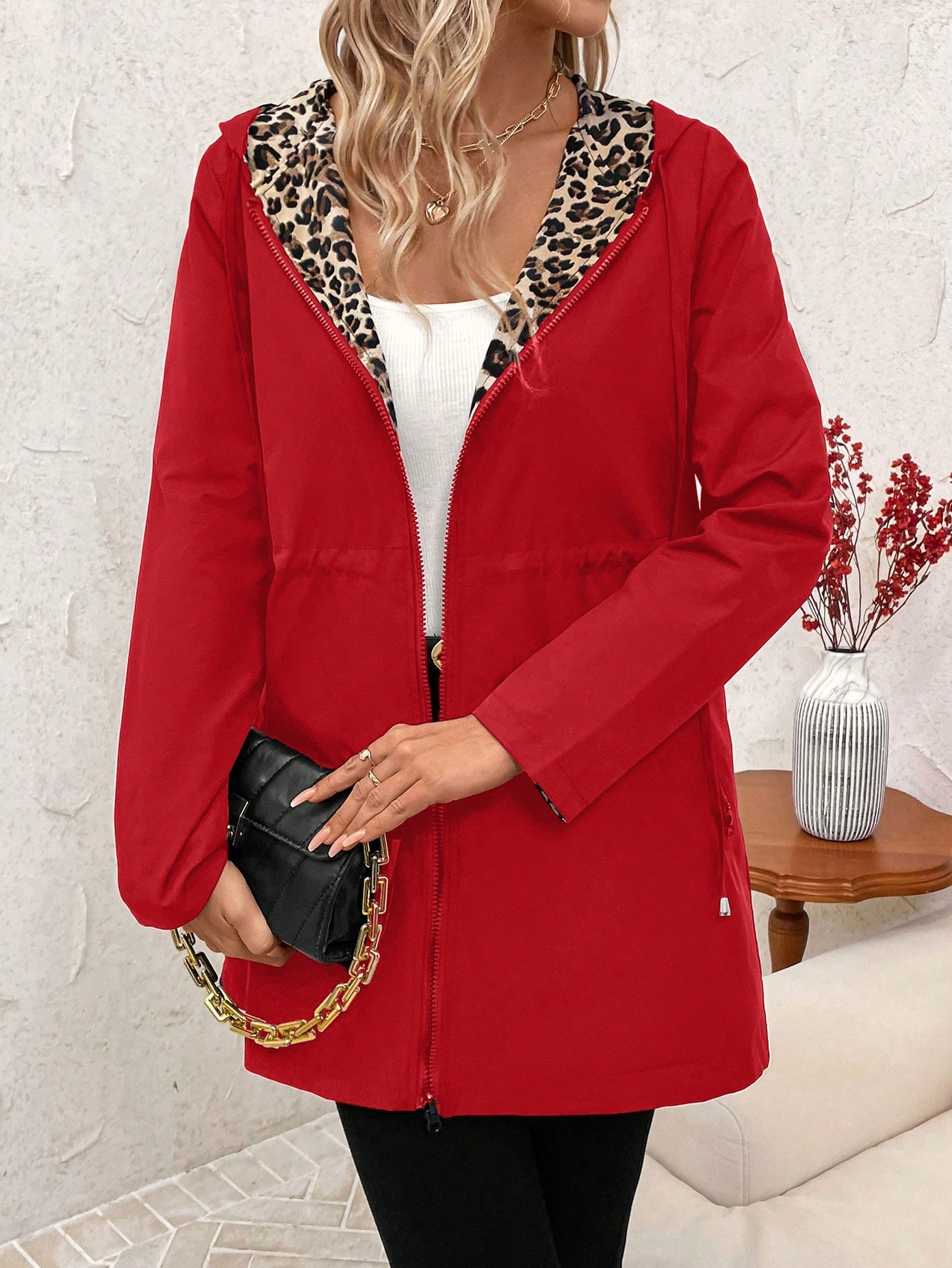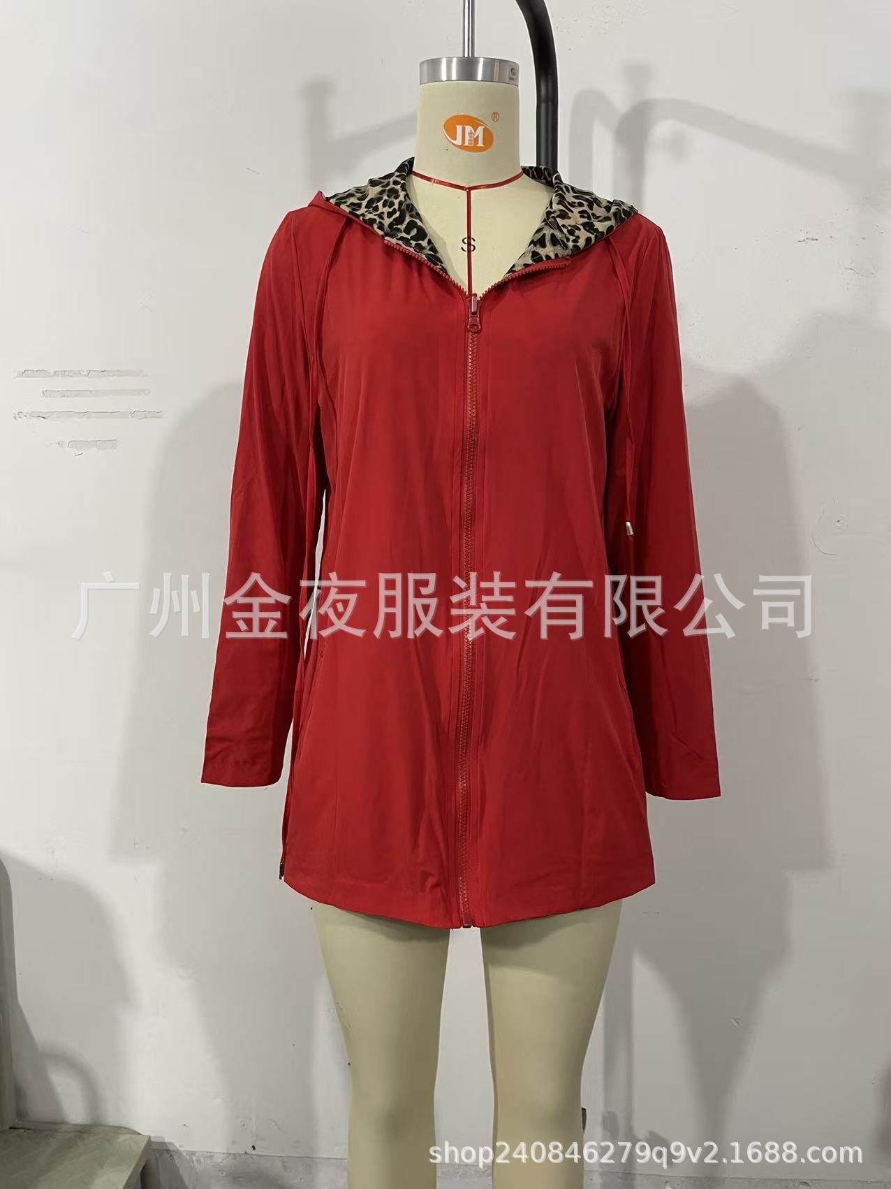 Европейский и американский трансграничный экспорт, женская двусторонняя куртка на молнии с капюшоном, повседневная длинная верхняя одежда с леопардовым принтом, пояс, толстовка с длинными рукавами