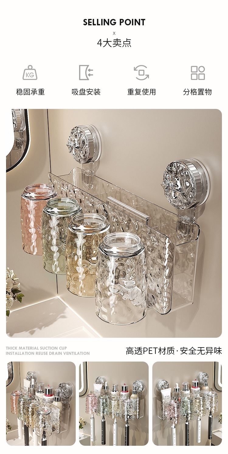 Подставка для зубных щеток на присоске, настенная полка для хранения чашек для полоскания рта, полка для хранения зубной пасты без перфоратора, полка для зубных чашек