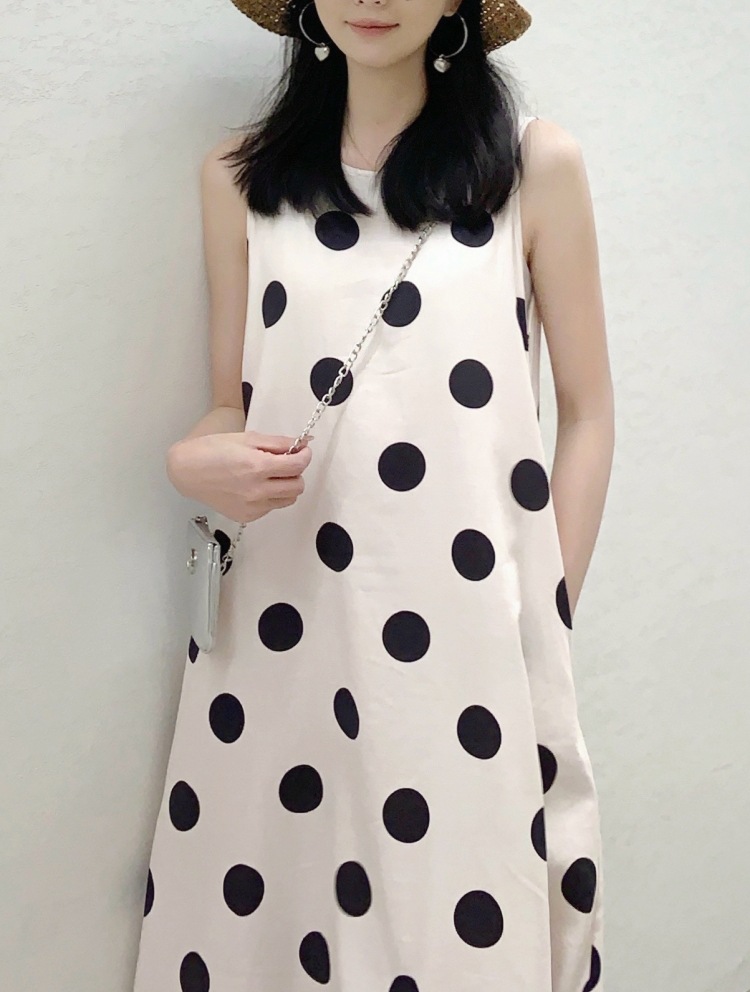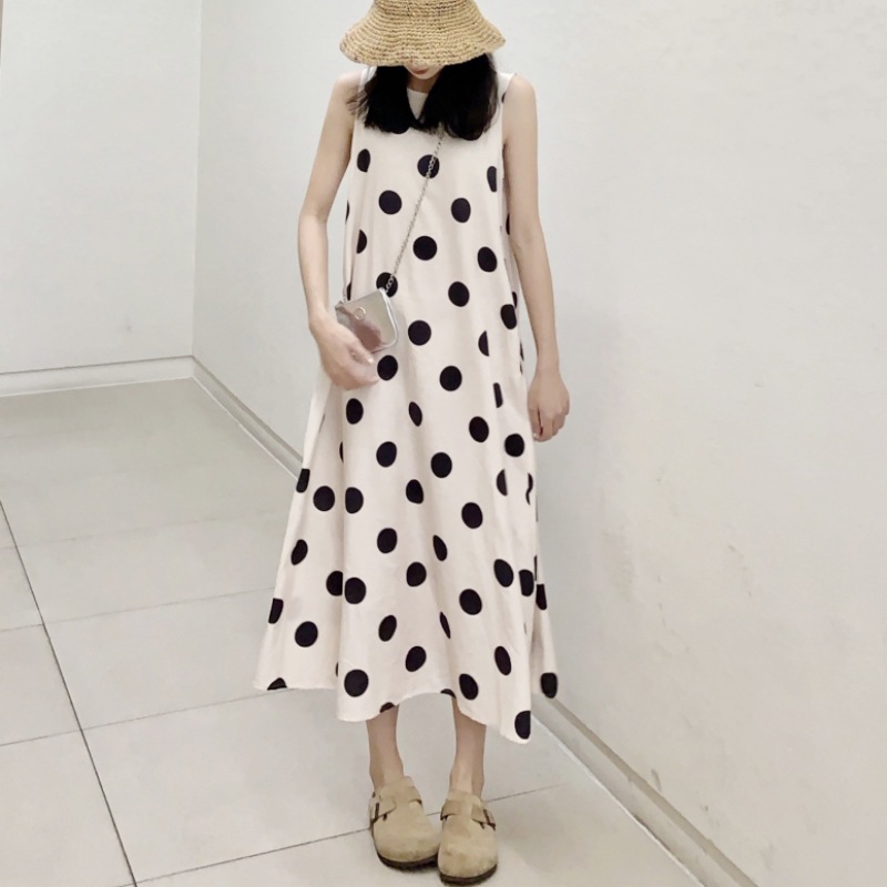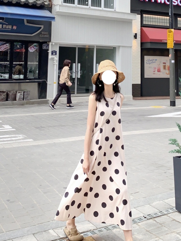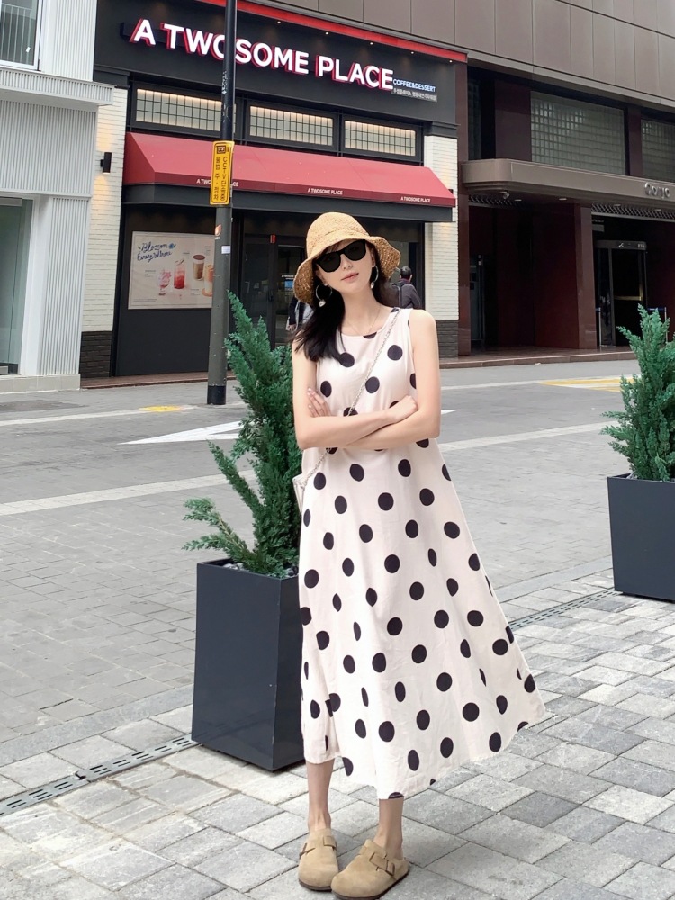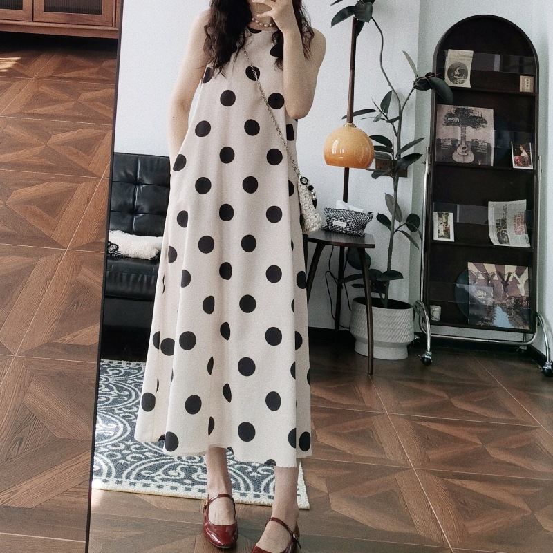 Новое платье в стиле ретро с горошком, без рукавов, А-силуэта, длинная юбка, свободного кроя, облегающее, жилетное платье для женщин, весна-лето 2025 года
