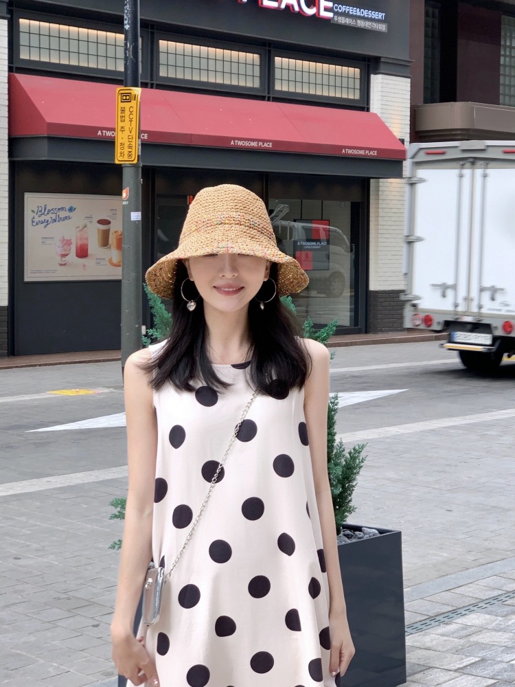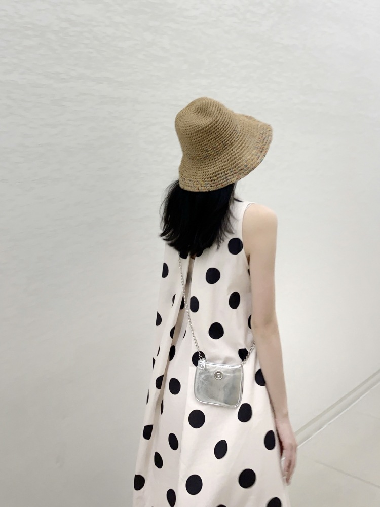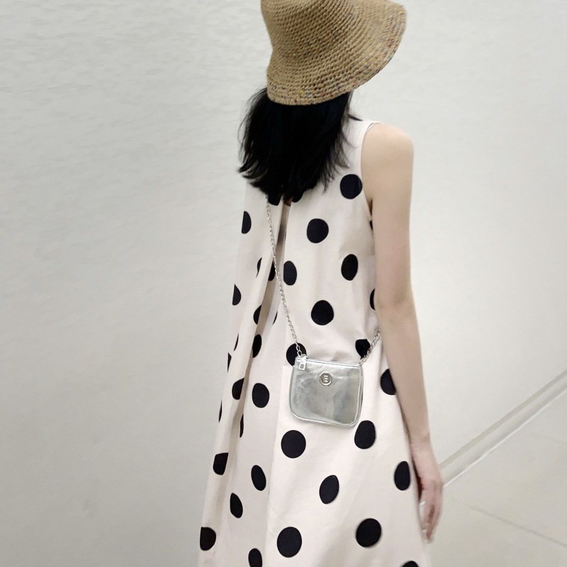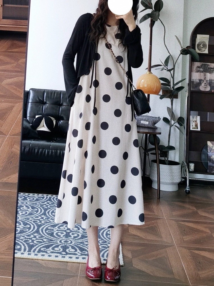 Новое платье в стиле ретро с горошком, без рукавов, А-силуэта, длинная юбка, свободного кроя, облегающее, жилетное платье для женщин, весна-лето 2025 года