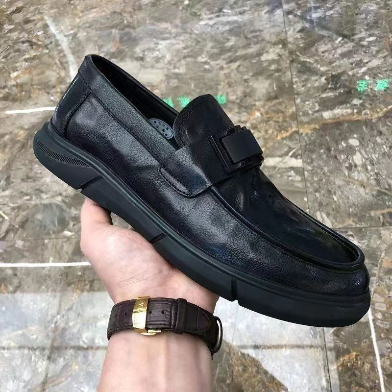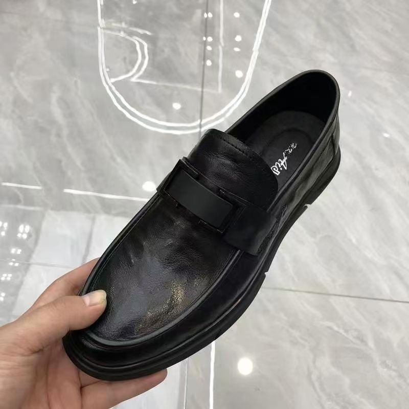 Мужские кожаные лоферы 2025 года, новые, дышащие, британского стиля, повседневные, для вождения, без застежек