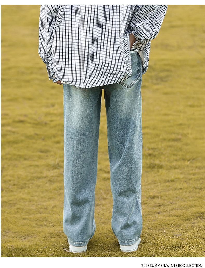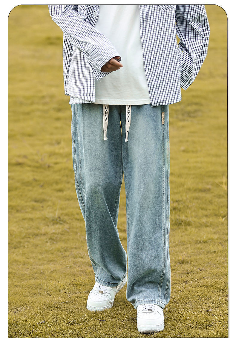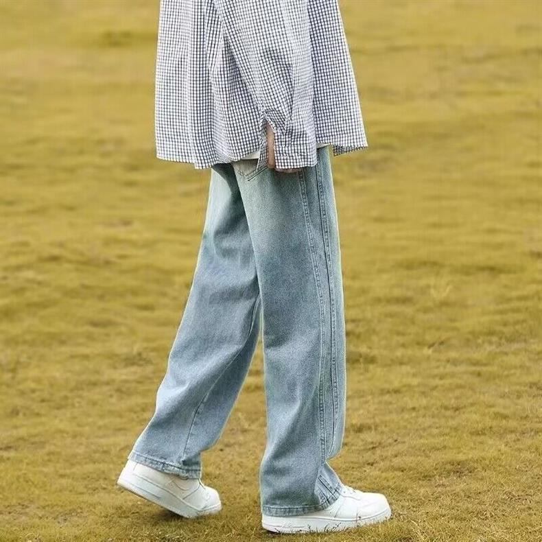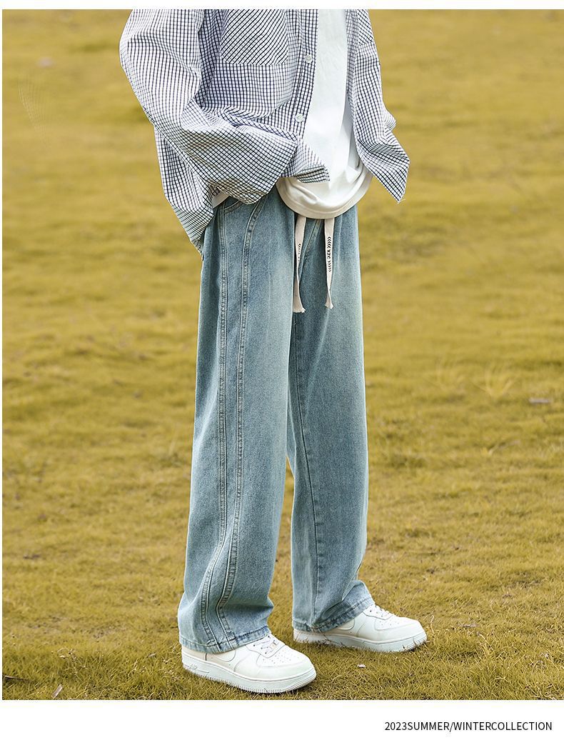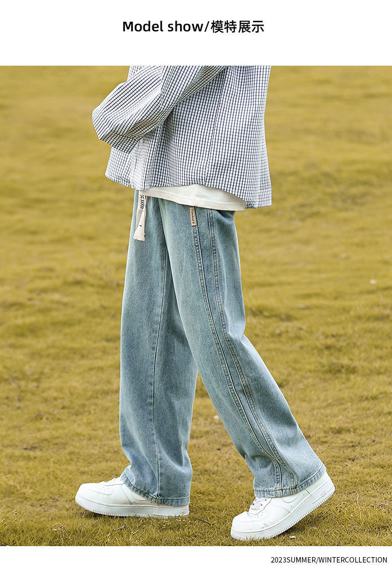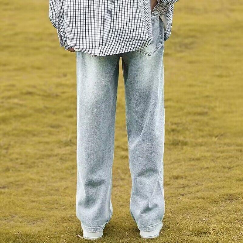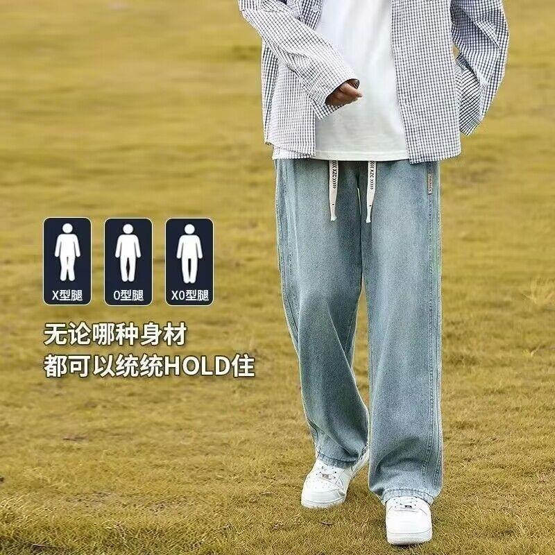 Детские джинсы светлых тонов, промываемые водой, для внешней торговли, лето 2025, новые мужские прямые свободные широкие повседневные брюки