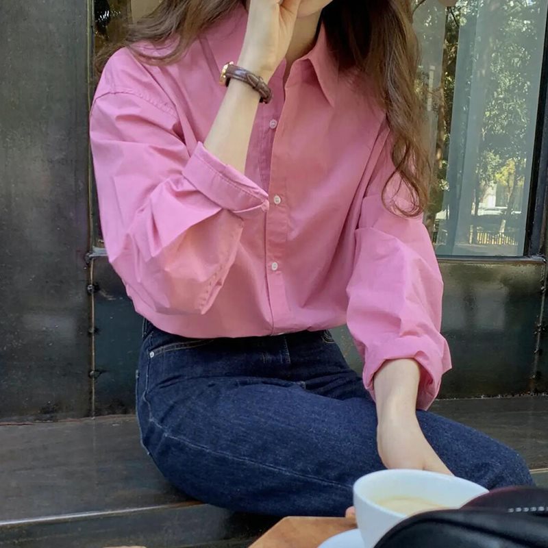 Французская рубашка женская 2025 новая синяя рубашка в корейском стиле повседневная с длинным рукавом топ весна-осень