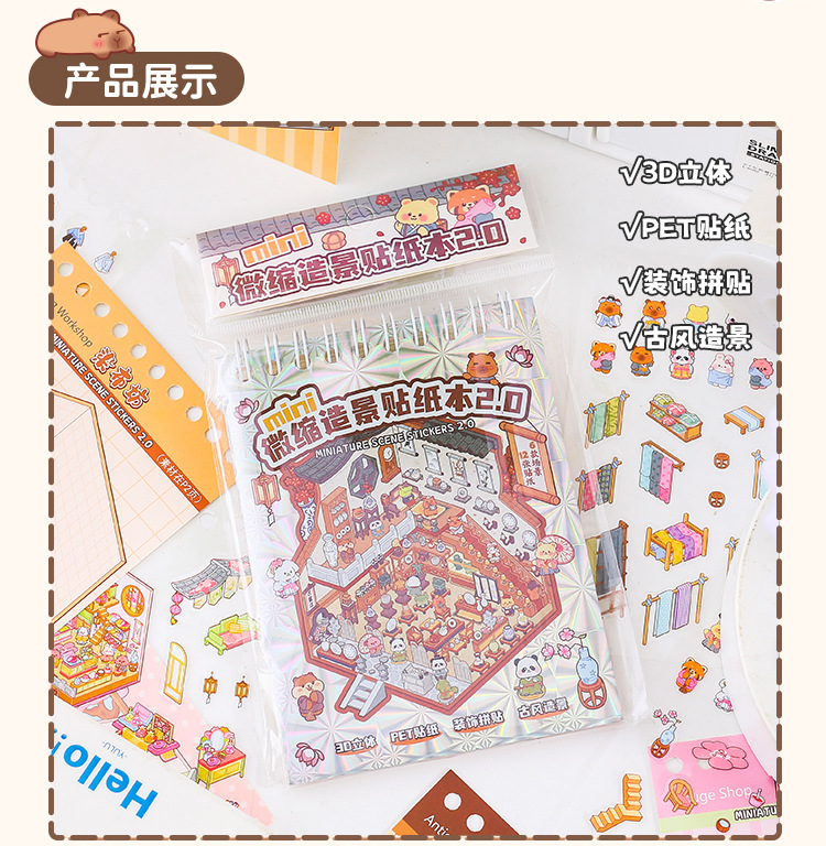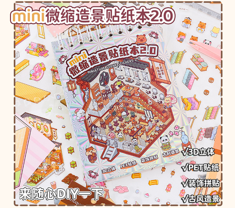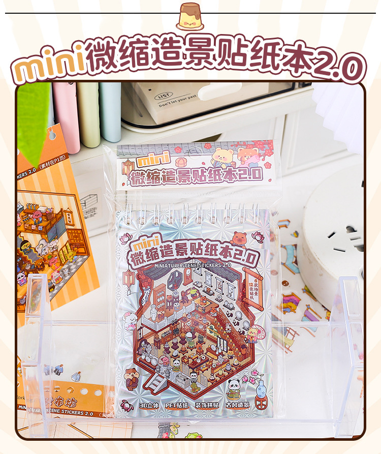 Миниатюрная книга-наклейка для ландшафтного дизайна 2,0, 3D стерео штабелируемая книга-наклейка из ПЭТ, забавная детская игрушечная книга-наклейка