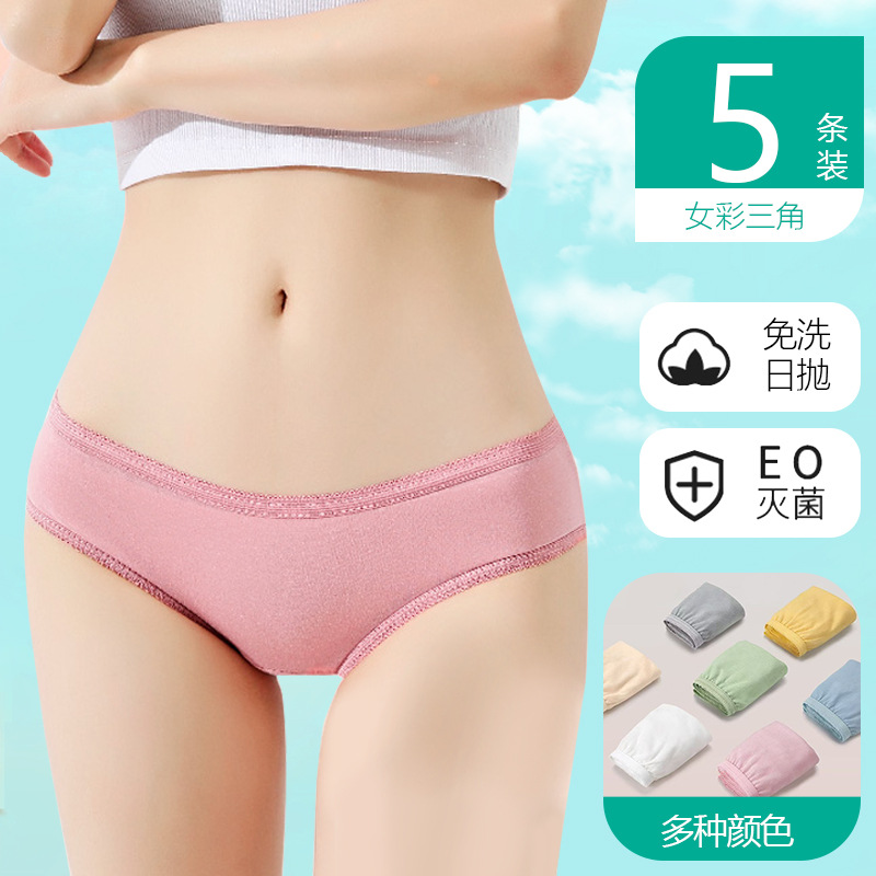 Набор из 5 хлопковых антибактериальных женских дорожных трусиков
