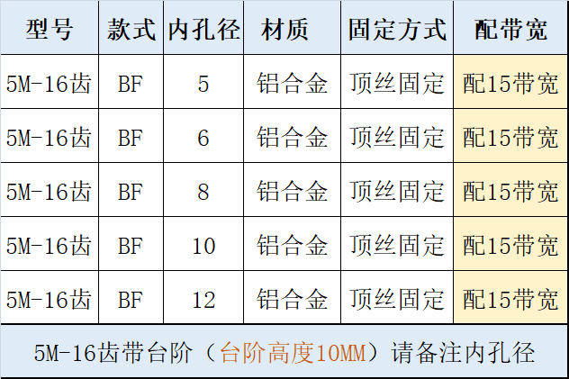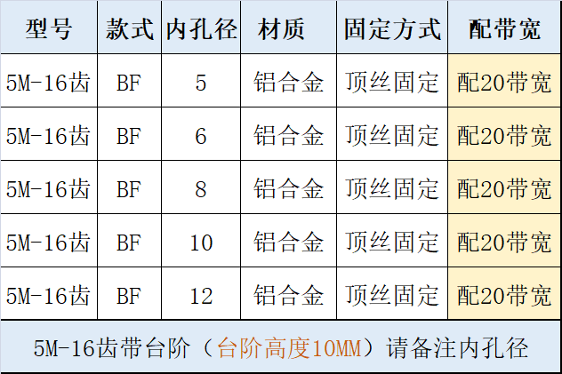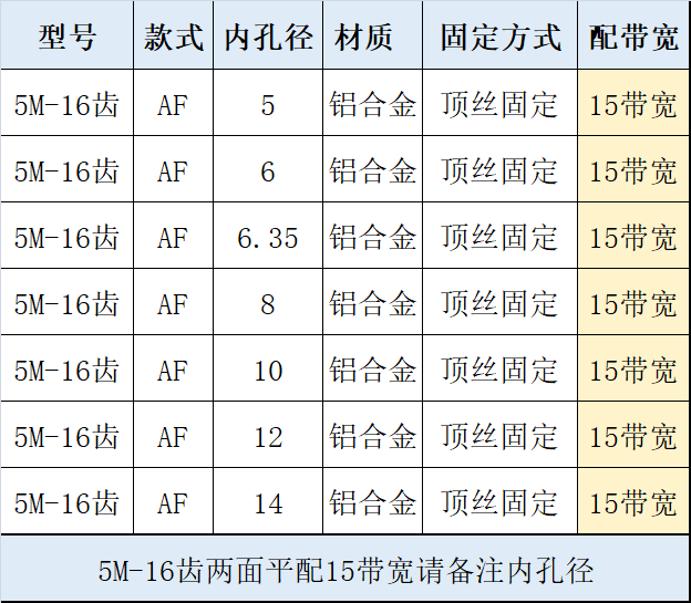 5 м-16 зубьев-ширина AF-15, обратите внимание на алюминиевое внутреннее отверстие; 5 м-16 зубьев-ширина AF-20, обратите внимание на алюминиевое внутреннее отверстие; 5 м-16 зубьев-ширина BF-15, обратите внимание на алюминиевое внутреннее отверстие; 5 м-16 зубьев-полоса пропускания BF-20, обратите внимание на алюминиевое внутреннее отверстие; 5 м-16 зубьев-AF-5/8/10 отверстий шириной 10 AF алюминий; 5М-16 зуб. №5 колесо: AF12 внутреннее отверстие 10 с алюминием; 5М-16 зубьев-№. 1 колесо: 6 отверстий, ширина 10, алюминий BF; 5М-16 зубьев-№. 2-е колесо: внутреннее отверстие AF6, ширина 15, алюминий.; 5М-16 зубьев-№. 3-е колесо: внутреннее отверстие AF8 с алюминиевым покрытием шириной 15 мм.; 5М-16 зубьев-№. 4-е колесо: внутреннее отверстие AF11 с алюминиевым покрытием шириной 15 мм.; 5М-16 зубьев-№. 6-е колесо: внутреннее отверстие AF12 с алюминиевым покрытием шириной 15 мм.; Зубья 5М-16: внутреннее отверстие AF8 15 со сталью; Зубья 5М-16: внутреннее отверстие AF10 15 со сталью; 5М-16 зубьев-№. 3-е колесо: внутреннее отверстие BF5/6/8, ширина алюминия 15.; Синхронные колеса могут быть изготовлены по чертежам или образцам.