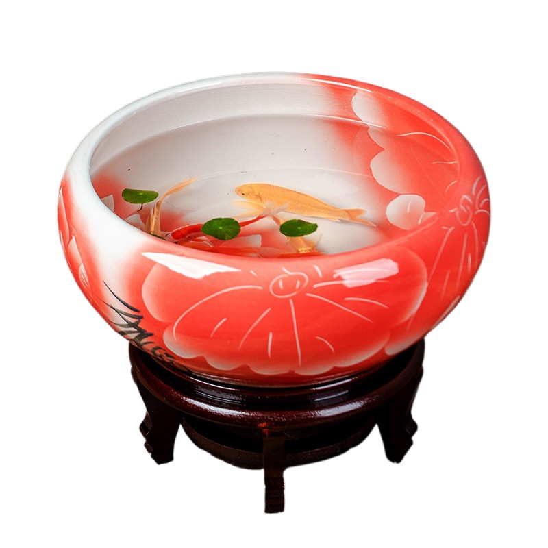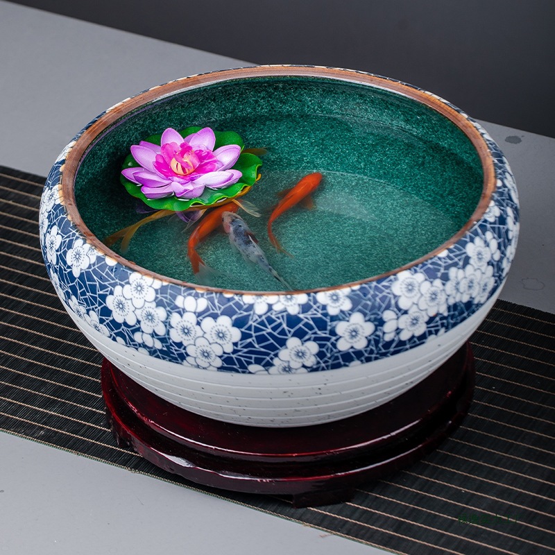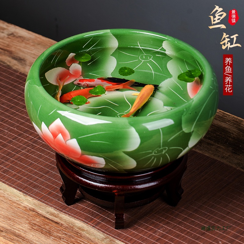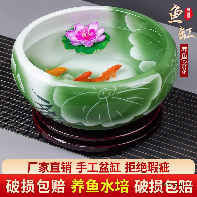 Керамический аквариум Цзиндэчжэнь, ручная роспись, большой настольный аквариум для золотых рыбок и черепах, миска для сна, лотос, нарцисс, аквариум для лотоса