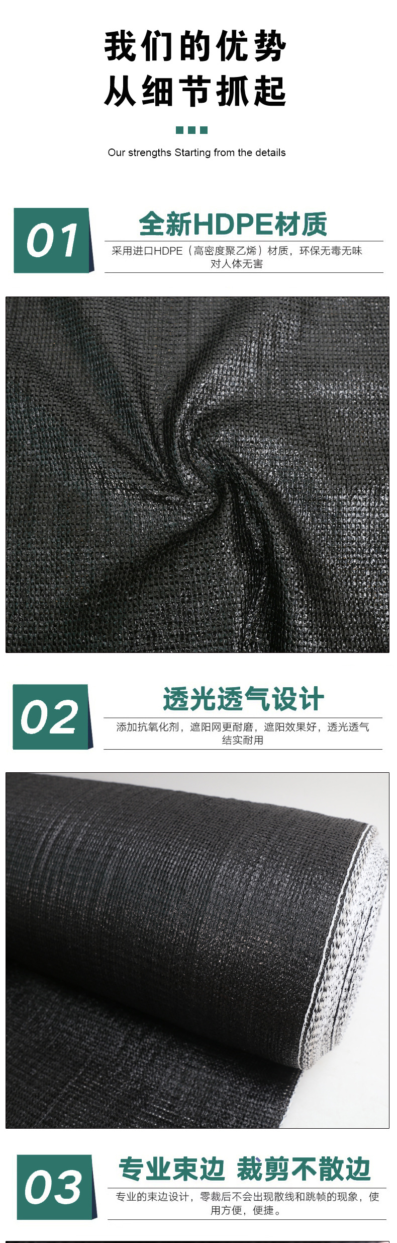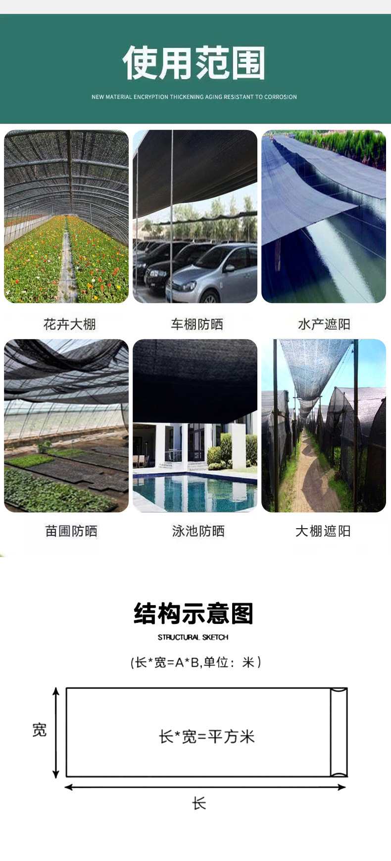 Цельный рулон солнцезащитной сетки, черная утолщенная сетка с защитой от солнца и защитная сетка, навес для автомобиля во дворе, сельскохозяйственная теплица, теплоизоляционная сетка при высокой температуре.