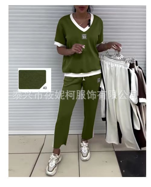 Женский спортивный костюм Amazon Casual, однотонный, с V-образным вырезом, оптом