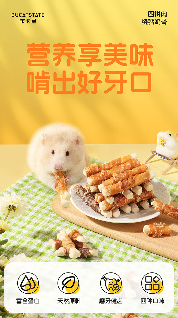 Buka Star Палочка для прорезывания зубов для хомяка Куриное и утиное мясо Высоко питательные интерактивные закуски Цветок Крыса Золотой медведь Еда Вегетарианская Радуга