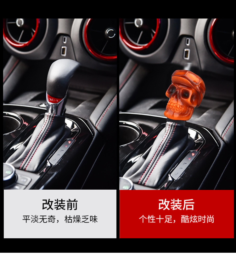 Модификация автомобиля: головка рычага переключения передач в виде черепа, креативная персонализированная головка рычага переключения передач.