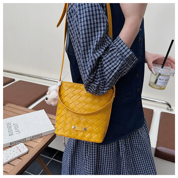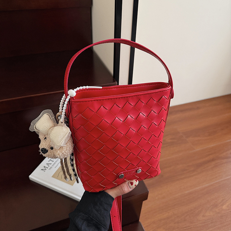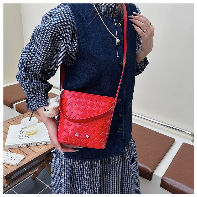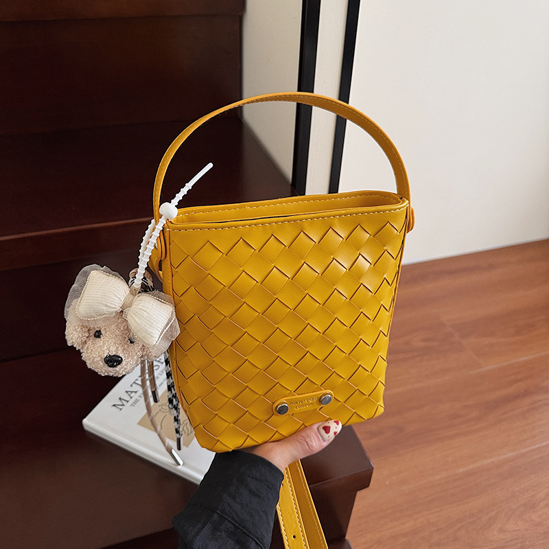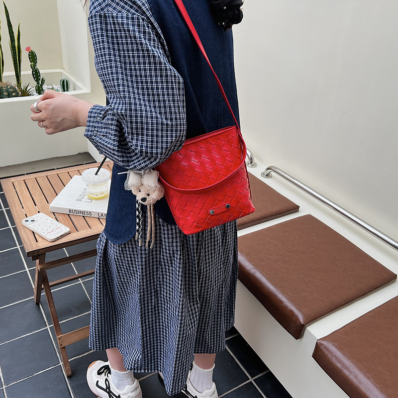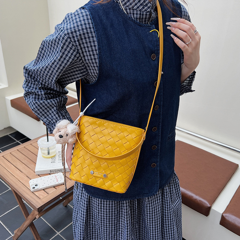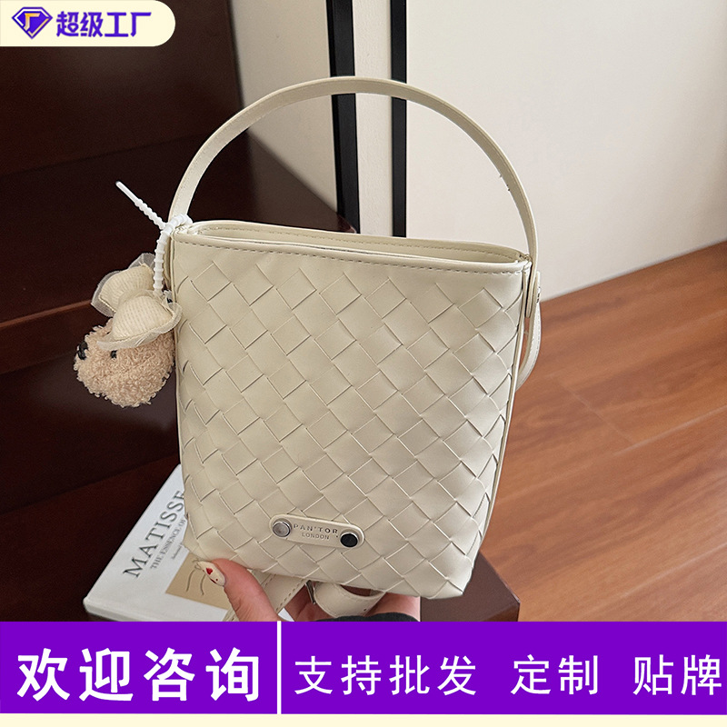 Новая модная женская сумка ручной работы, компактная и легкая сумка через плечо, текстурированная однотонная мини-сумка-ведро.