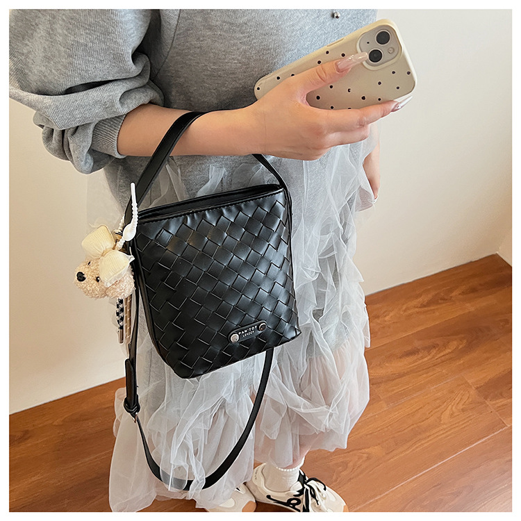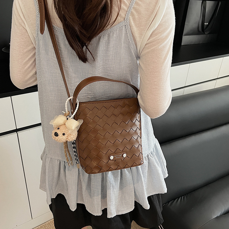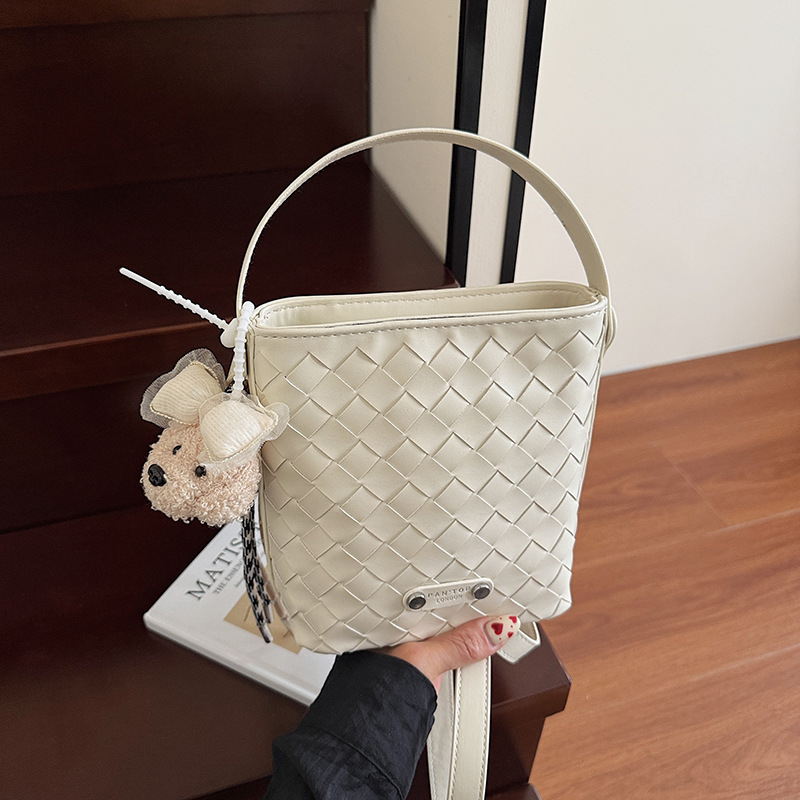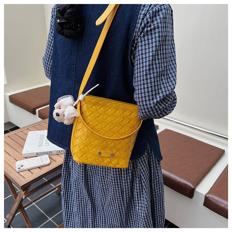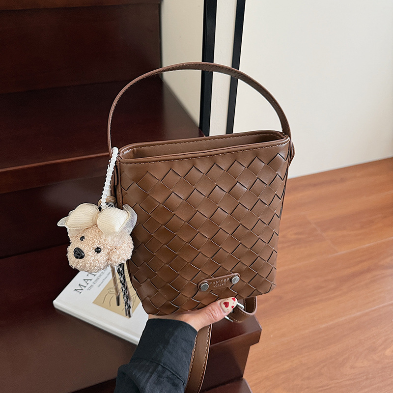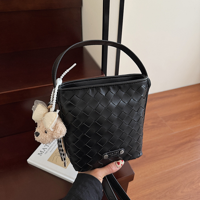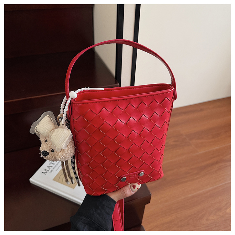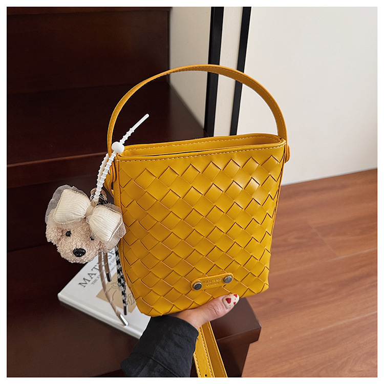 Новая модная женская сумка ручной работы, компактная и легкая сумка через плечо, текстурированная однотонная мини-сумка-ведро.