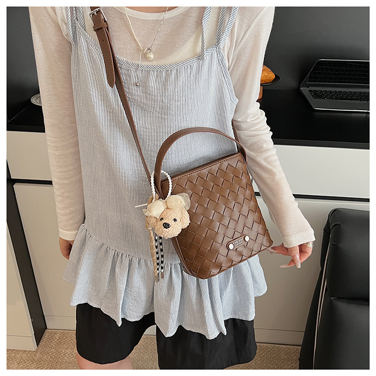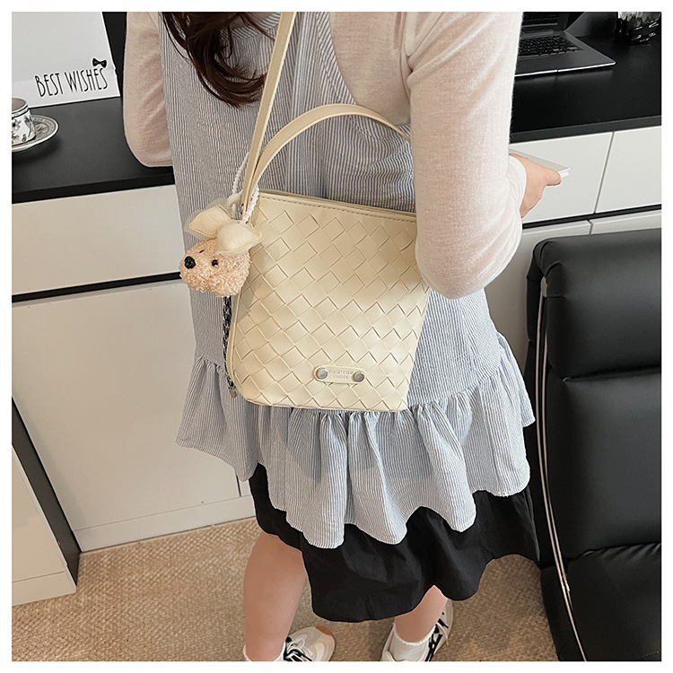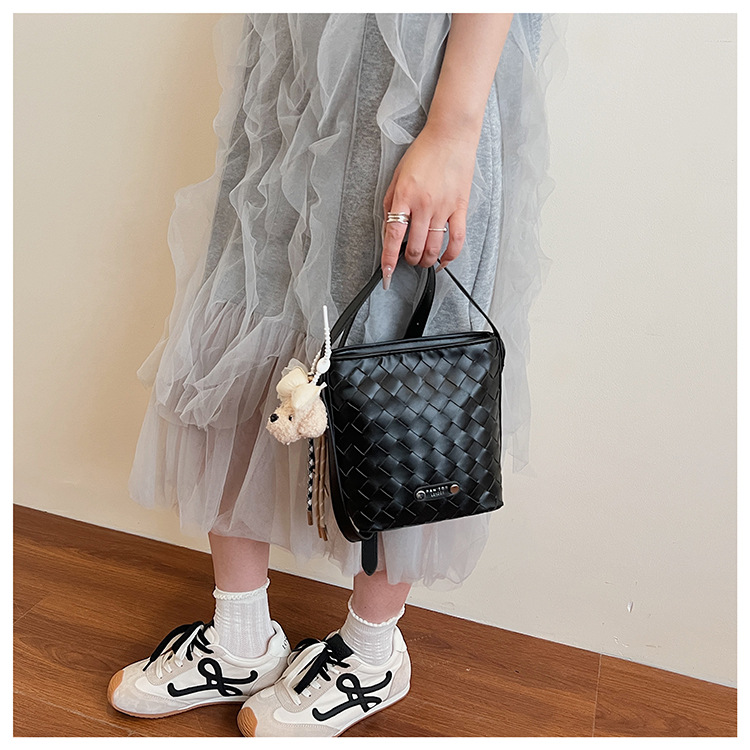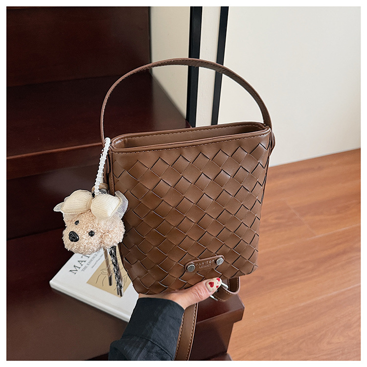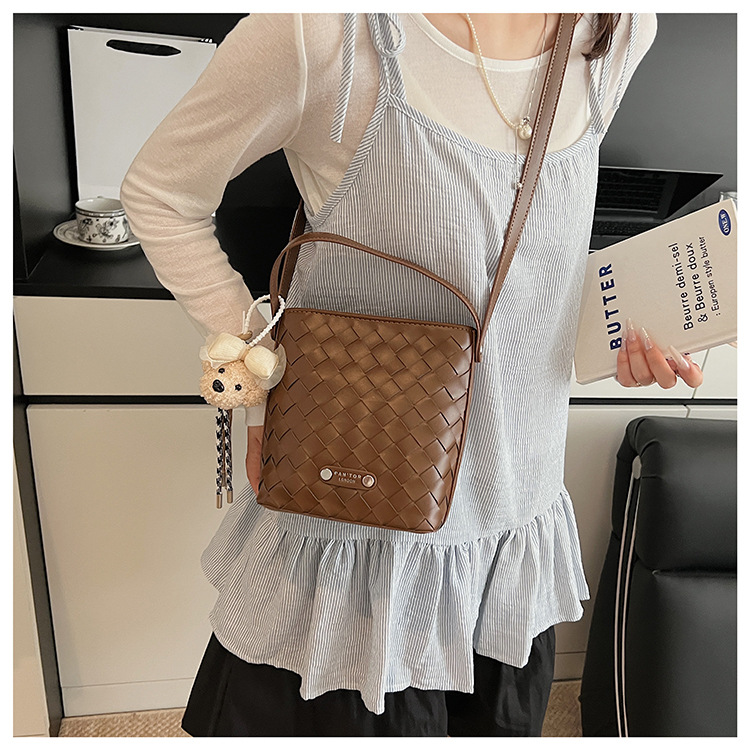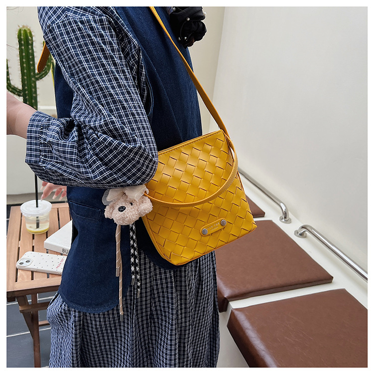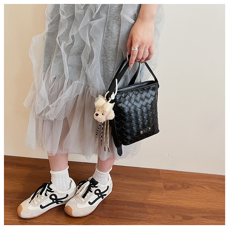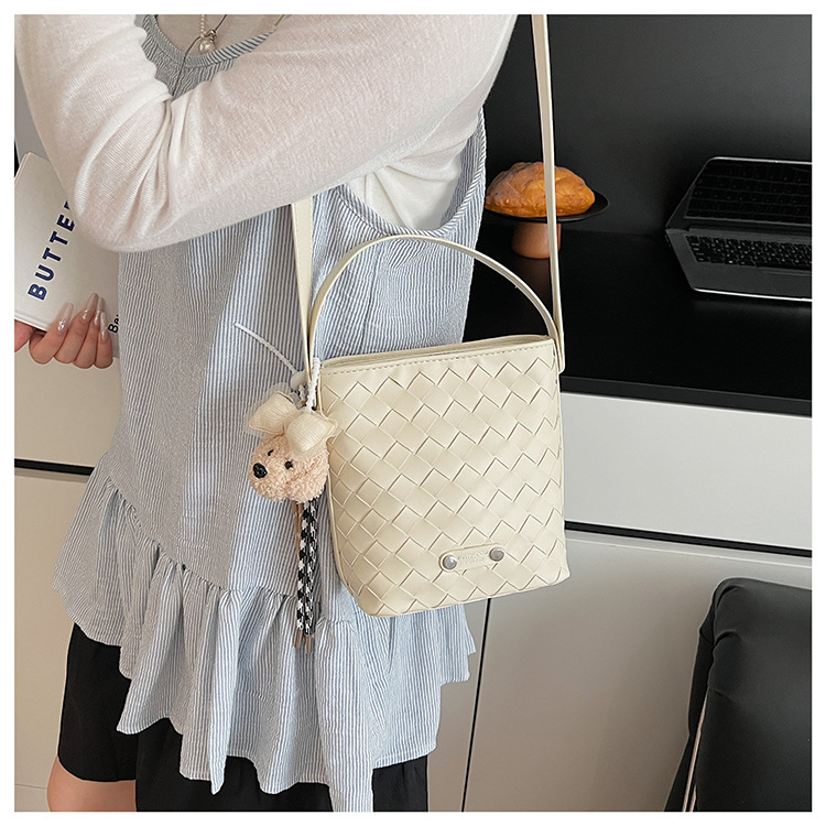 Новая модная женская сумка ручной работы, компактная и легкая сумка через плечо, текстурированная однотонная мини-сумка-ведро.