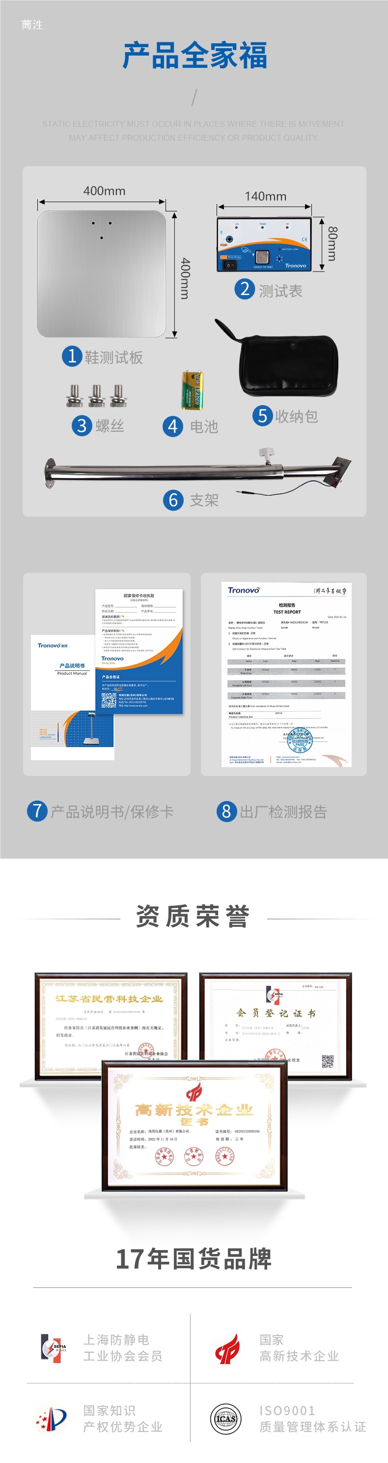 ИИ использовал промышленный антистатический браслет TR7132, тестер электростатического заряда для обуви, комплексный тестер тела человека и батарею ESD.