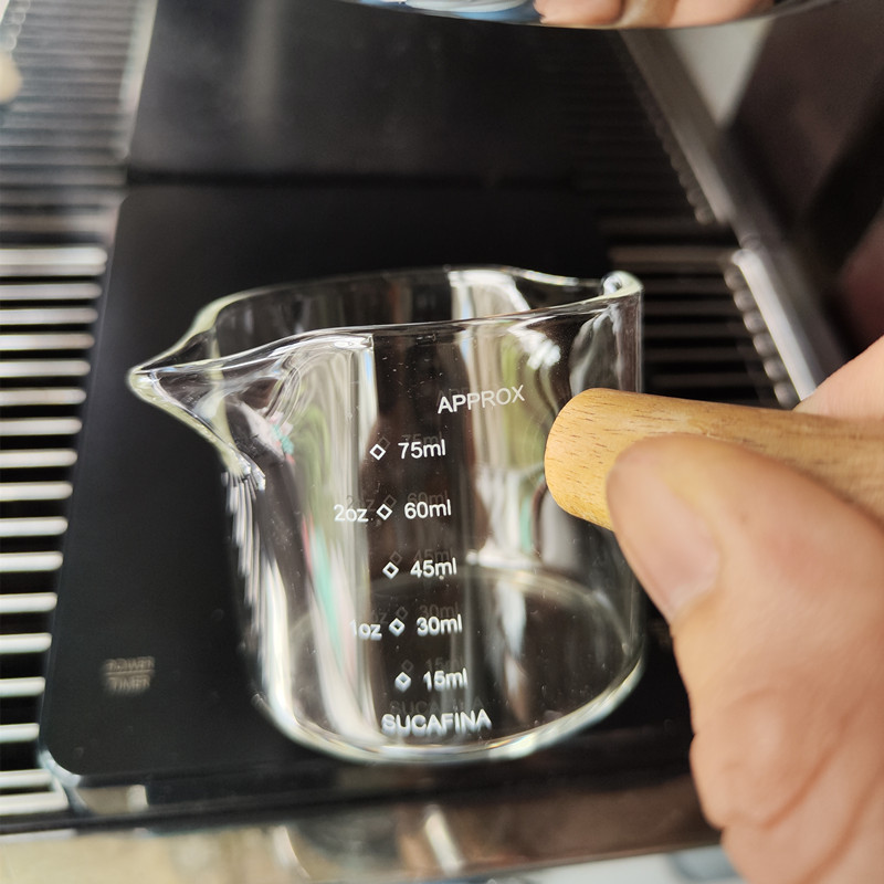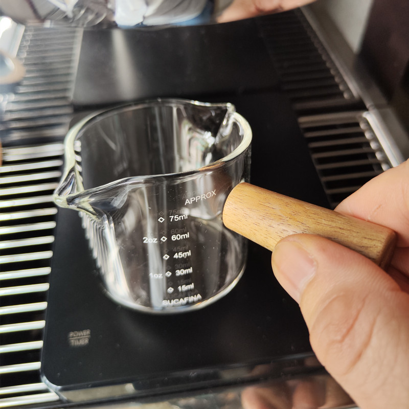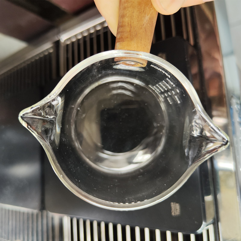 Термостойкая стеклянная мерная чашка для эспрессо, деревянная ручка, кувшин для молока с двумя головками, стеклянная чашка для молока с двумя горлышками, стеклянная кофейная посуда, коммерческая