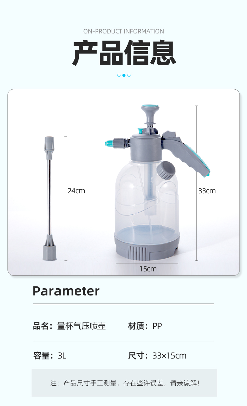 Взрывозащищённый и устойчивый к давлению, с тонкой атомизацией; 3-литровая мерная емкость с лейкой на воздушном прессе; 3-литровая мерная емкость с распылителем под давлением воздуха + удлинительный распылительный стержень; 2,3 л мерный стакан с распылителем под давлением воздуха; 2,3 л мерный стакан с распылителем под давлением воздуха + удлинительная штанга; 2,3-литровый пеногенератор для мойки автомобилей с воздушным распылителем (с мерным стаканом); 2-литровая мерная емкость с лейкой на воздушном прессе; 2-литровая мерная емкость, лейка с воздушным распылителем + удлинительная ручка; [4-литровая упаковка] Лейка с измерительной чашкой для полива под высоким давлением (утолщенная и взрывозащищенная); 【Набор на 4 литра】Мерный распылитель высокого давления + удлинённая насадка