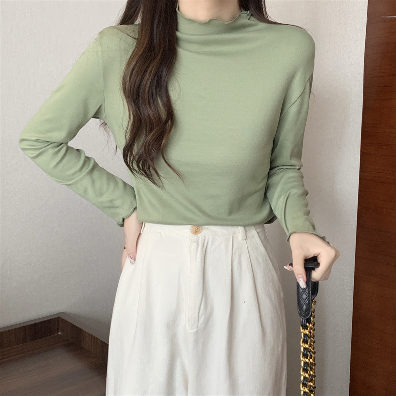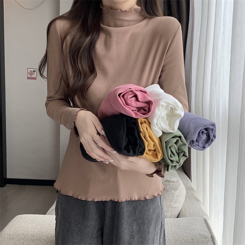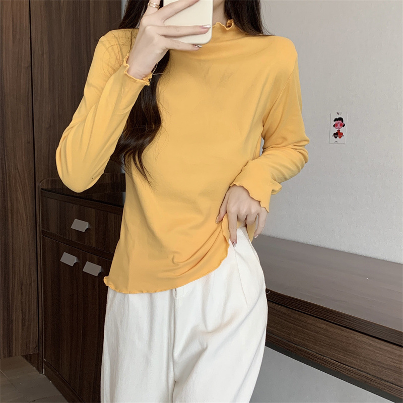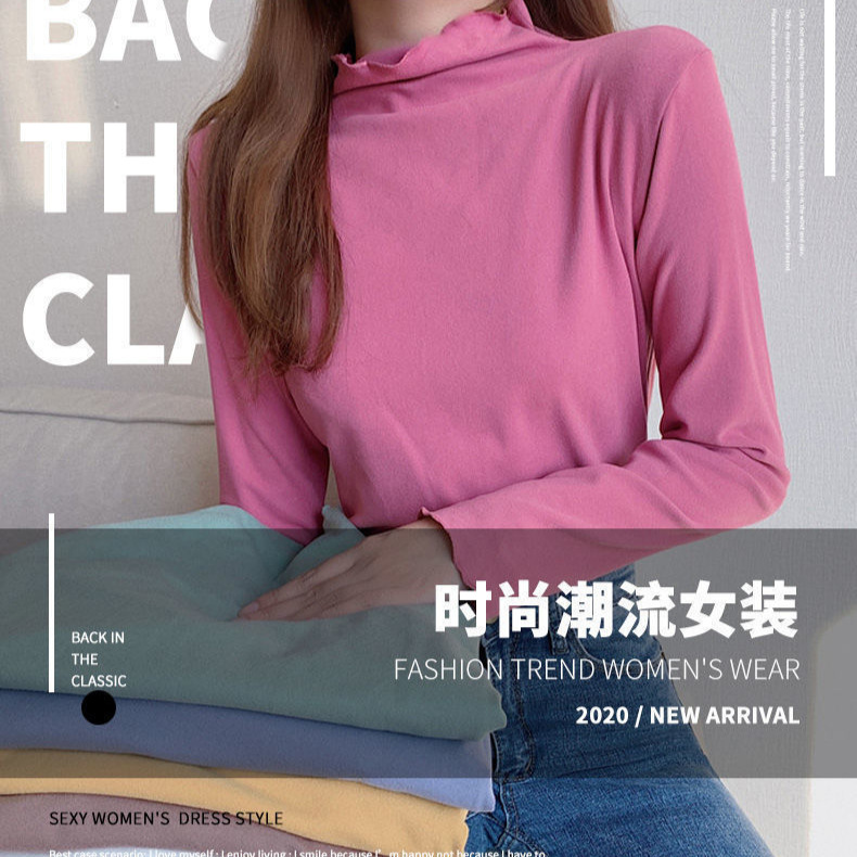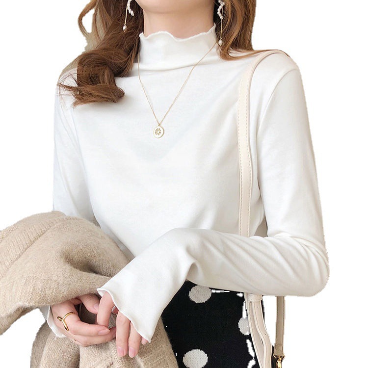 Осенне-зимняя базовая рубашка с котенком, немецкая бархатная однотонная облегающая футболка с высоким воротником и длинными рукавами, женский топ на экспорт.