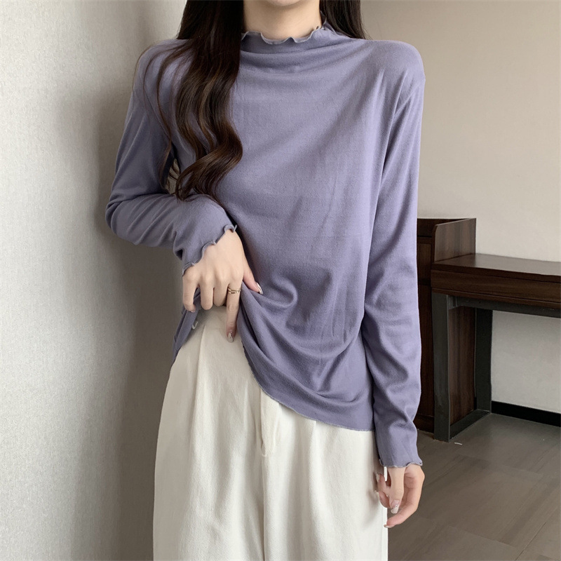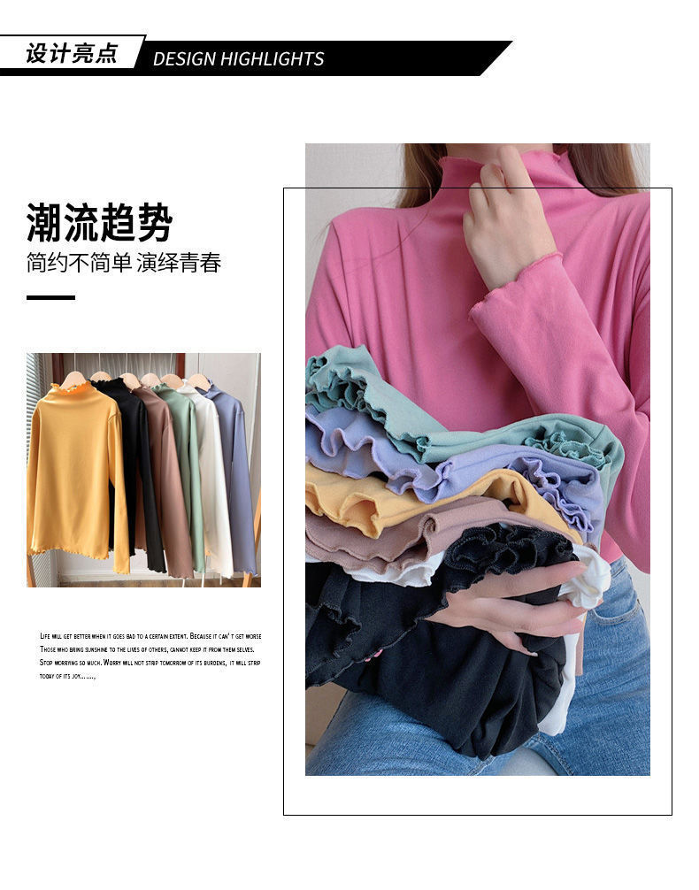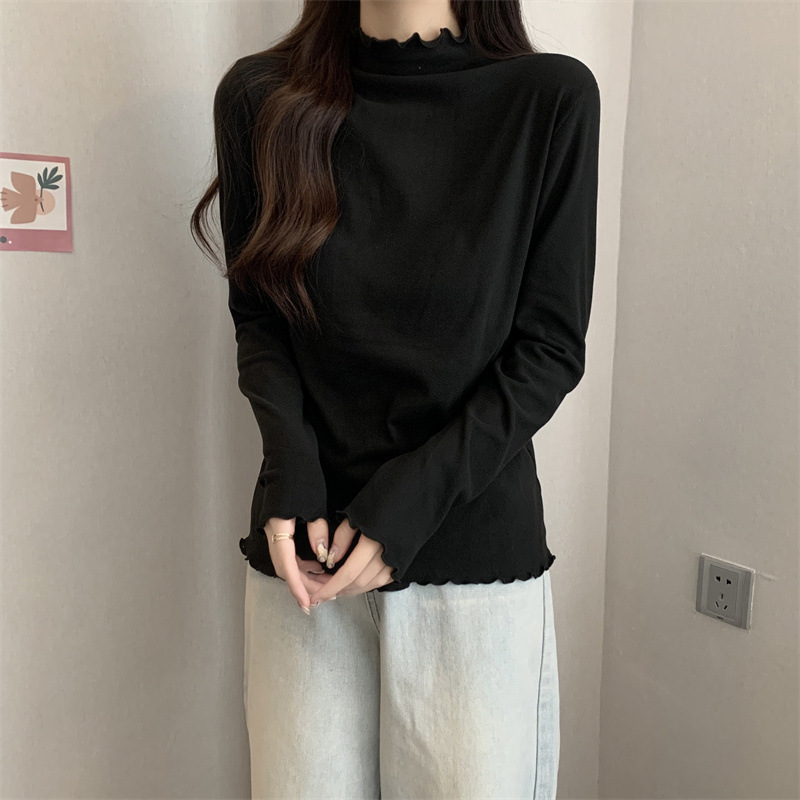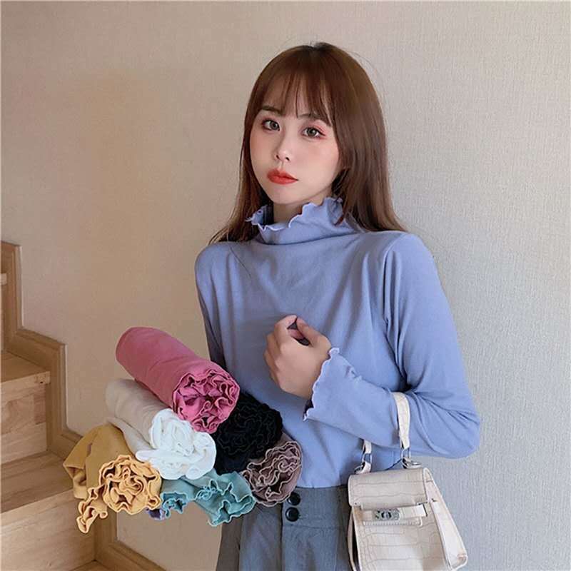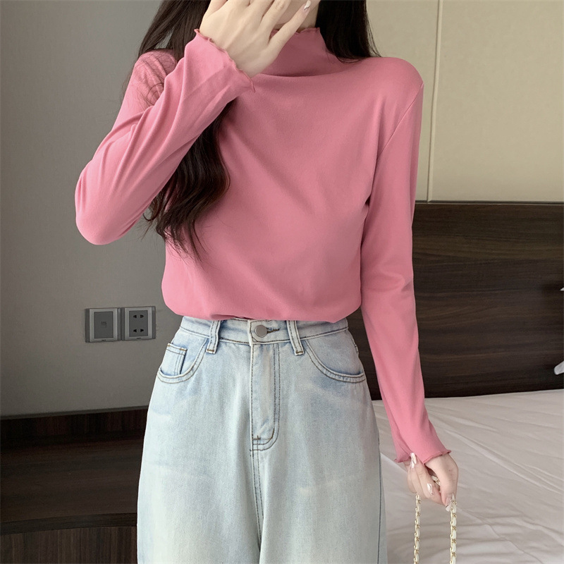 Осенне-зимняя базовая рубашка с котенком, немецкая бархатная однотонная облегающая футболка с высоким воротником и длинными рукавами, женский топ на экспорт.