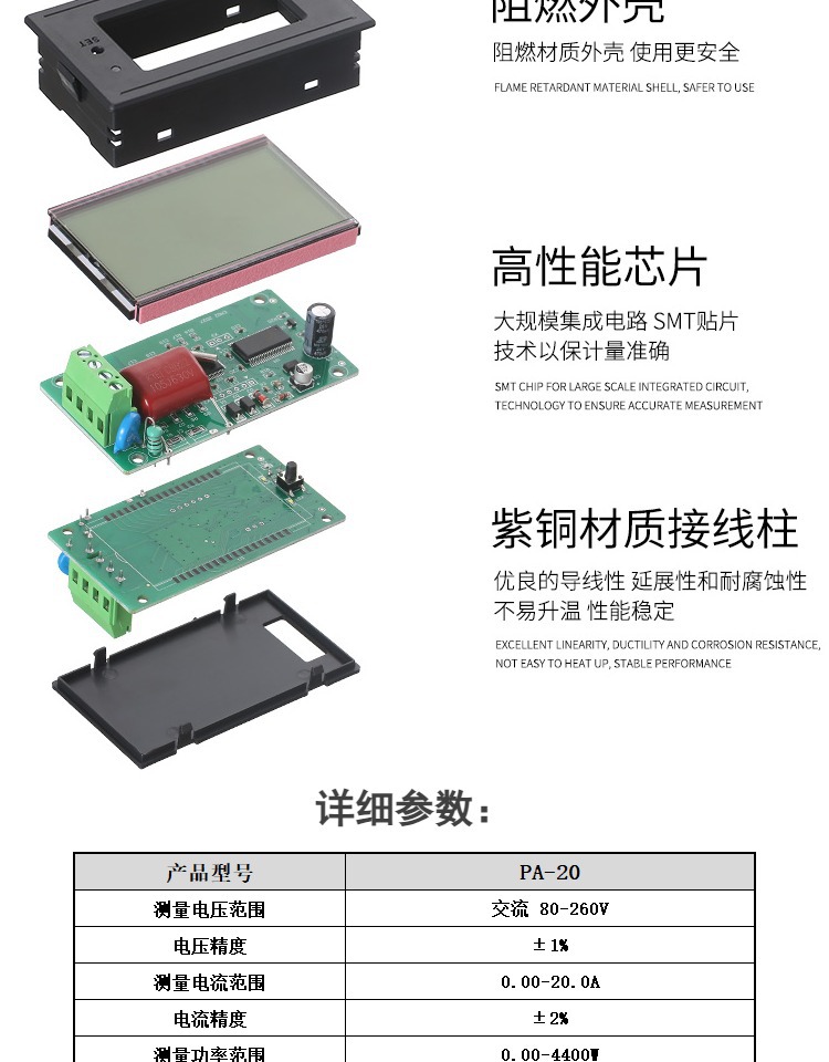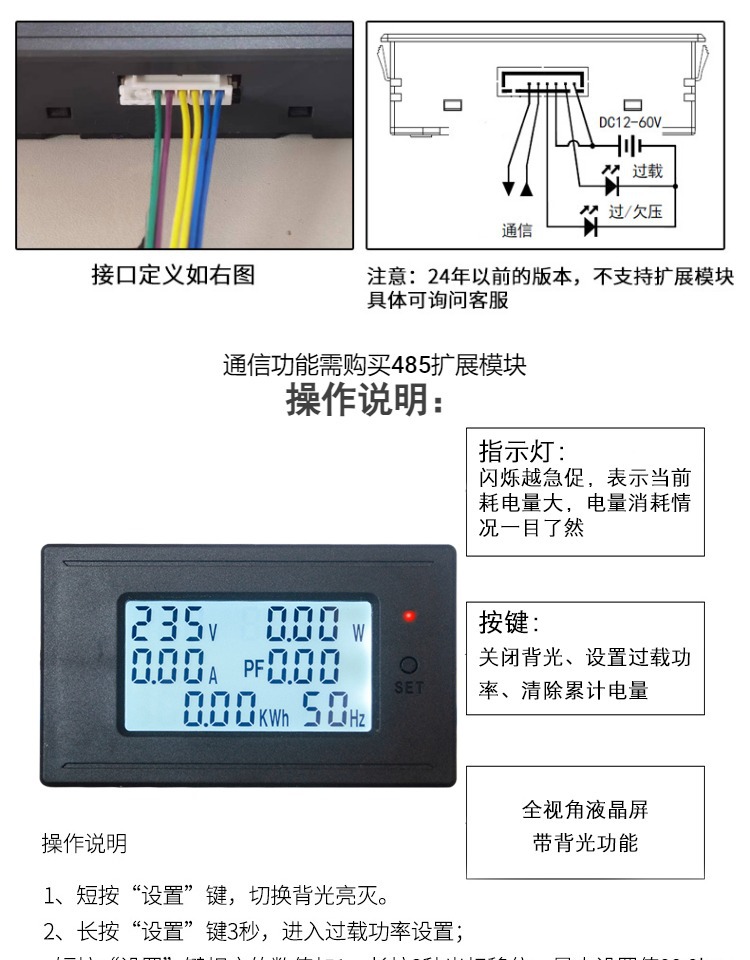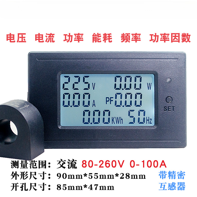 Многофункциональный цифровой дисплей переменного тока, панель дисплея напряжения, тока, мощности AC80-260V 20A 100A с сигнализацией