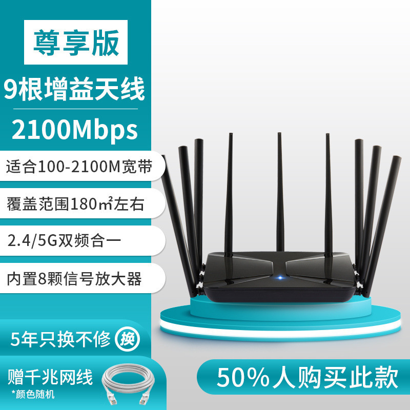 Низкопрофильная версия с пятью антеннами [сеть 100M]. Обычное проникновение в стену; Эксклюзивная версия Nine Antennas 2100M [импортированное гигабитное ядро] покрытие всего дома; Модернизированная версия с восемью антеннами [Гигабитная сеть]. Нет охвата тупиков; Расширенная версия с семью антеннами [Гигабитная сеть]. Полное покрытие сигнала; Стандартная версия с шестью антеннами [сеть 100M]. Сильное проникновение в стену