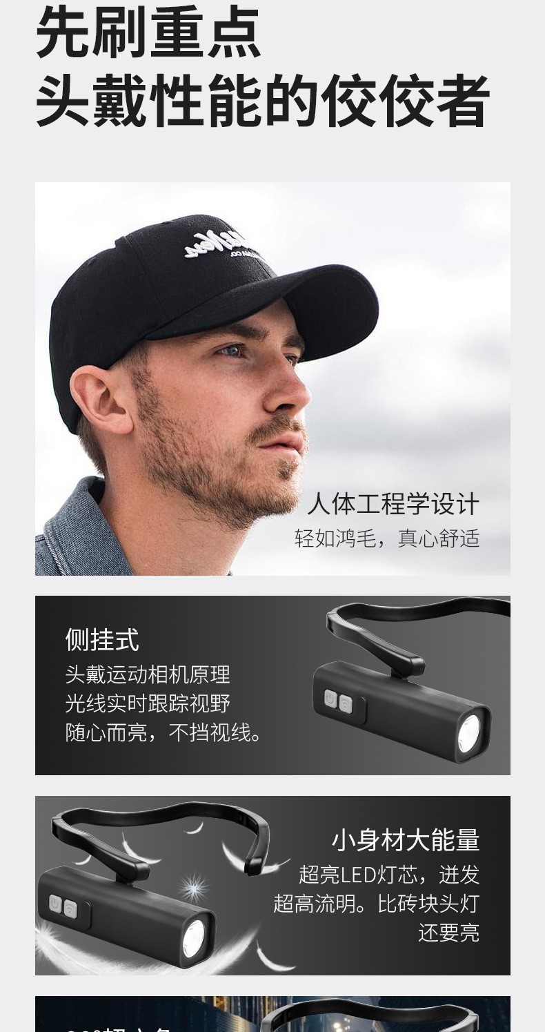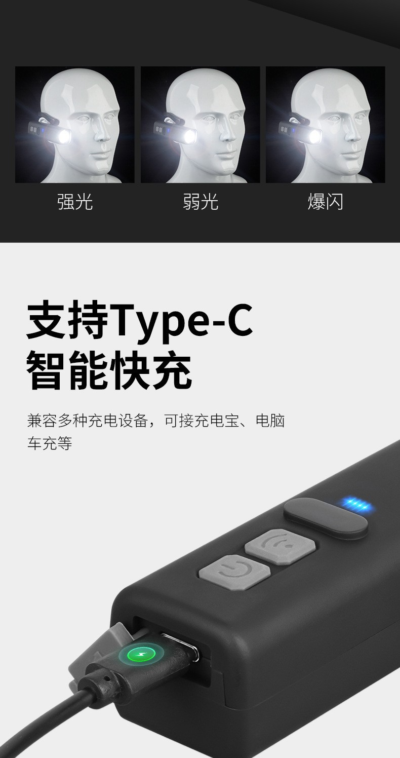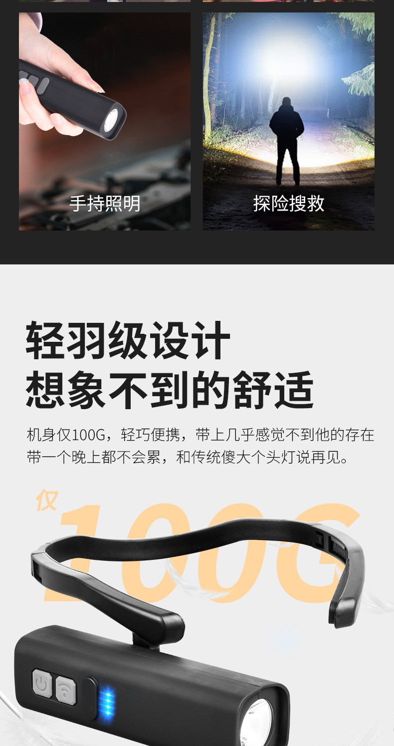 Портативная повязка на голову, боковая сенсорная фара, зарядка через USB, подключение Bluetooth, наушная фара, легкий налобный фонарик