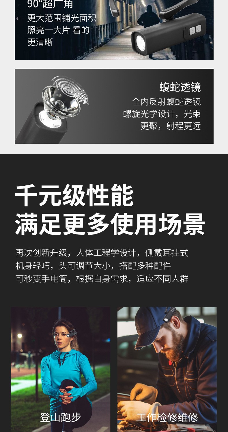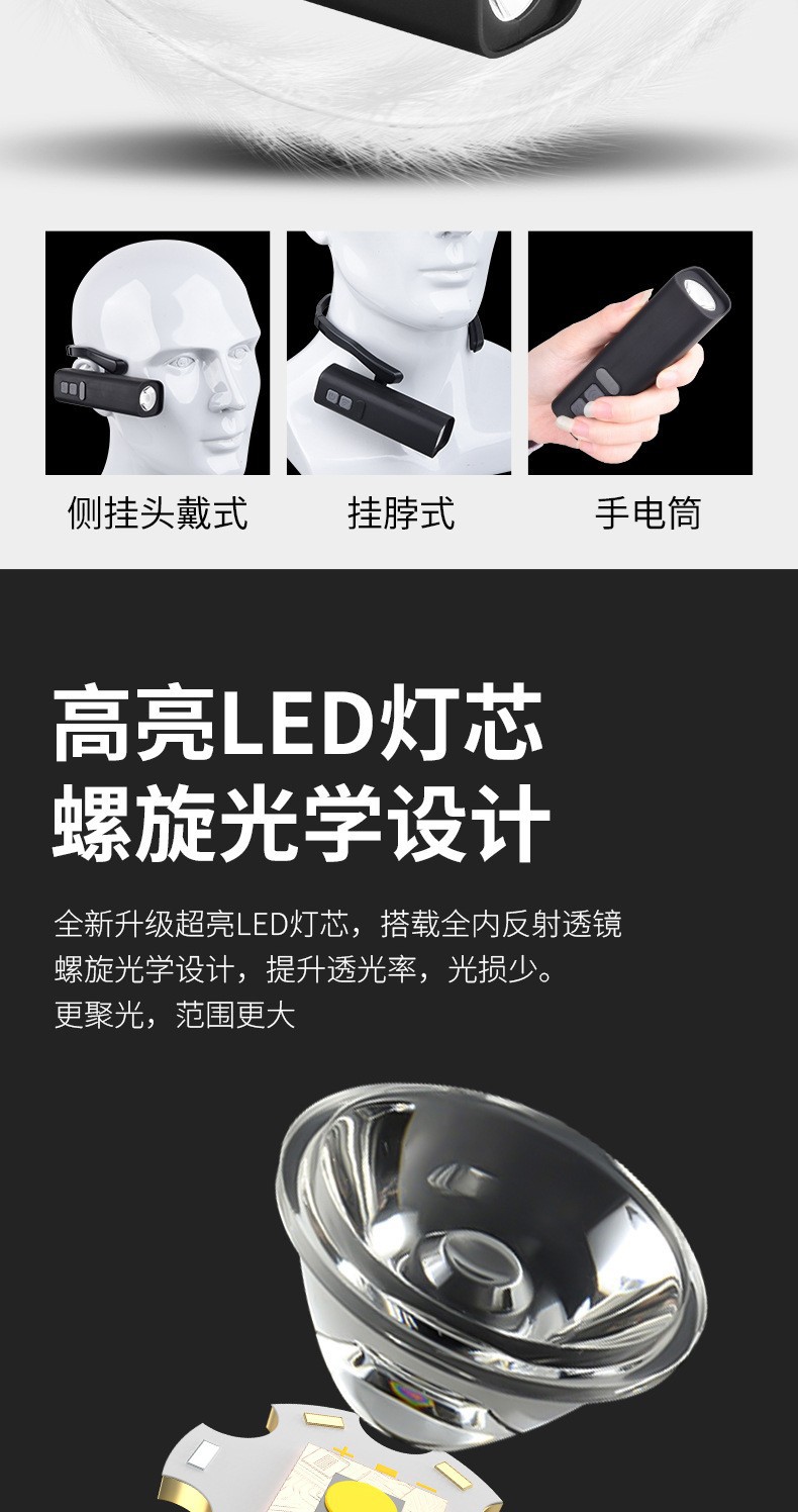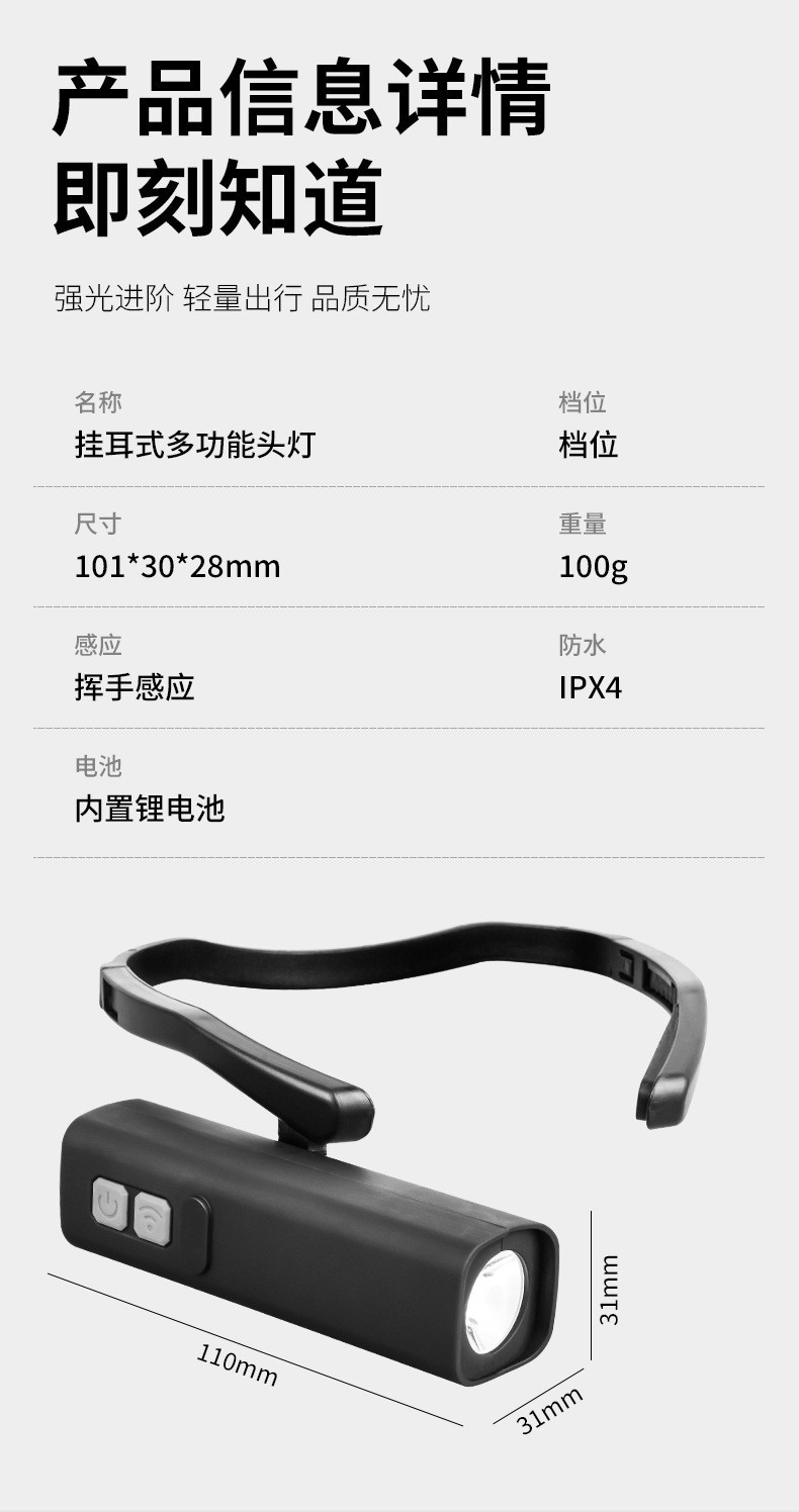 Портативная повязка на голову, боковая сенсорная фара, зарядка через USB, подключение Bluetooth, наушная фара, легкий налобный фонарик