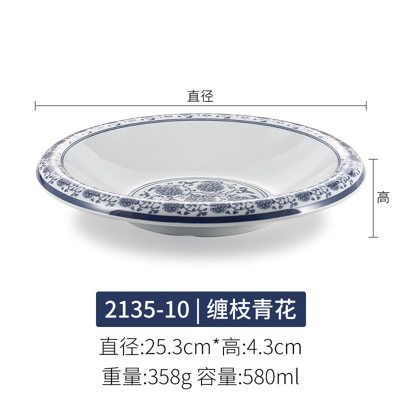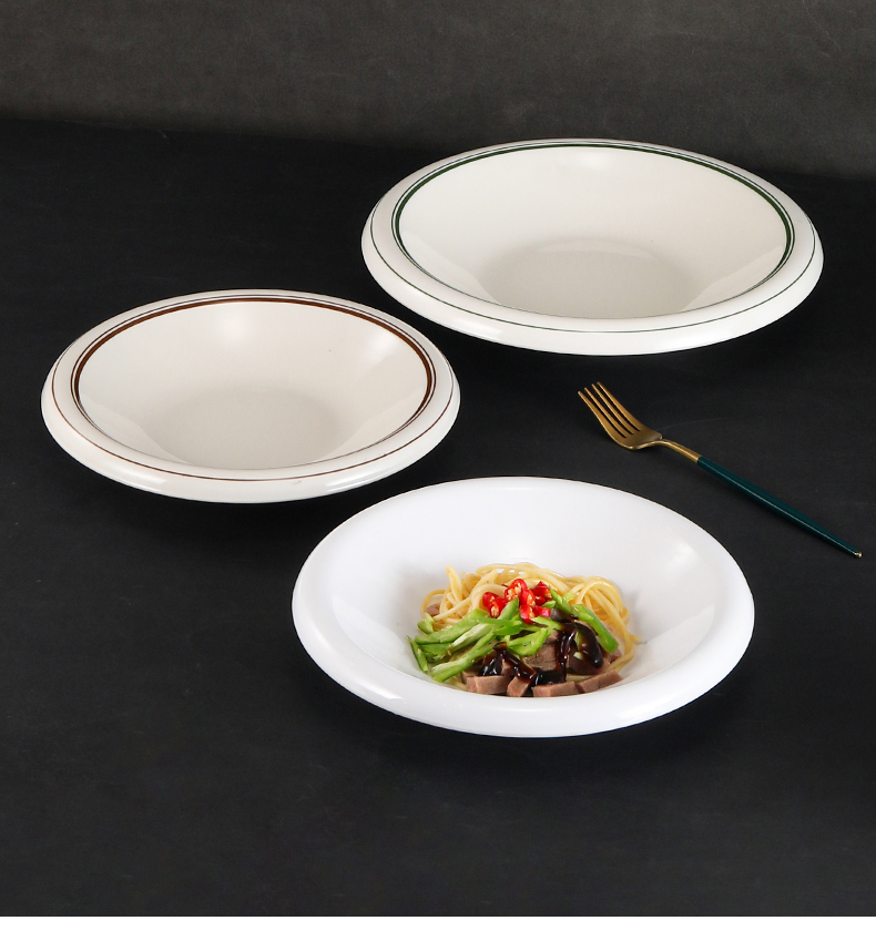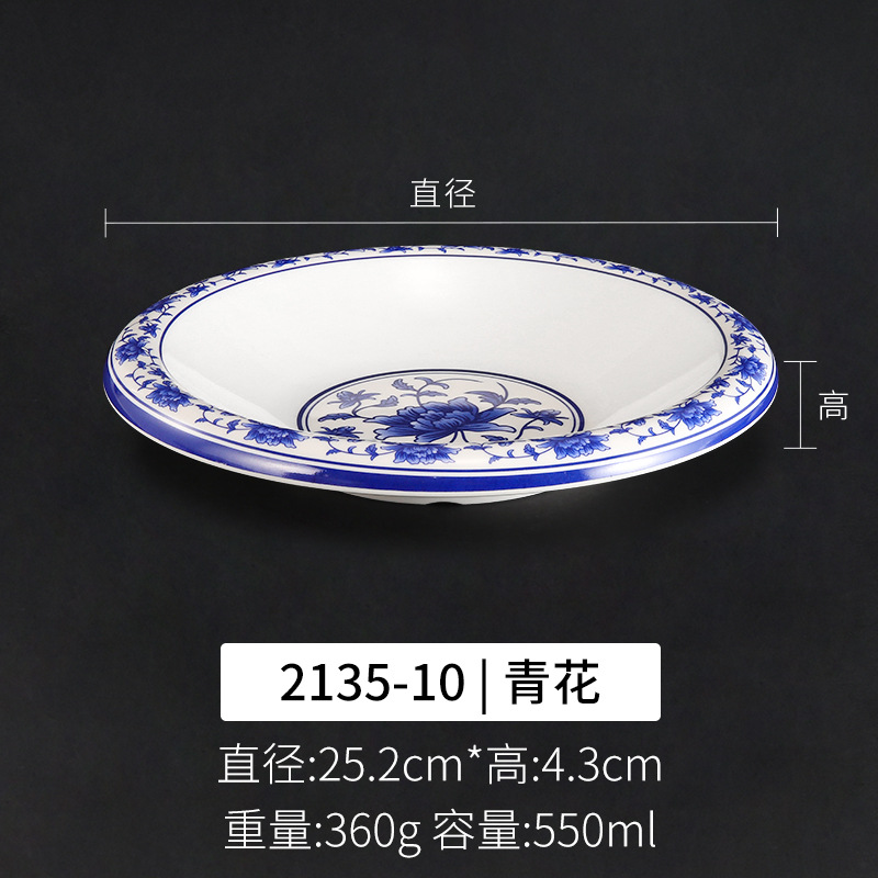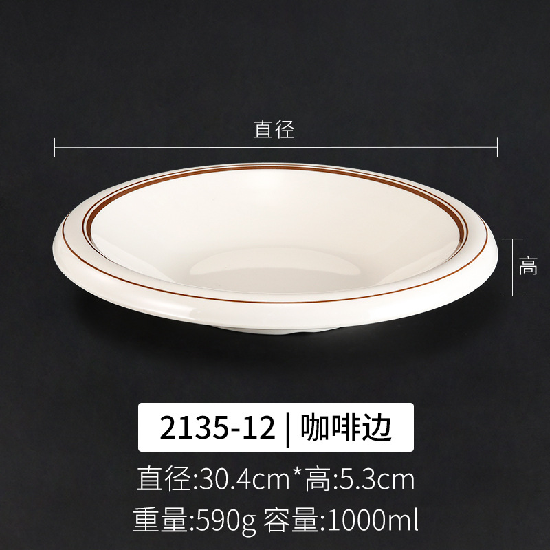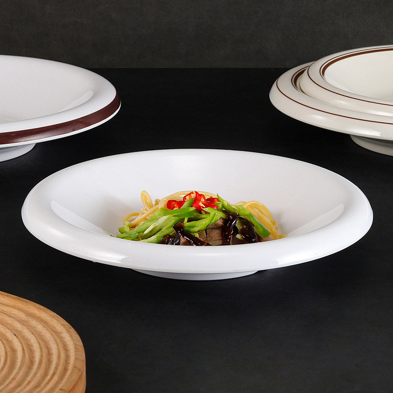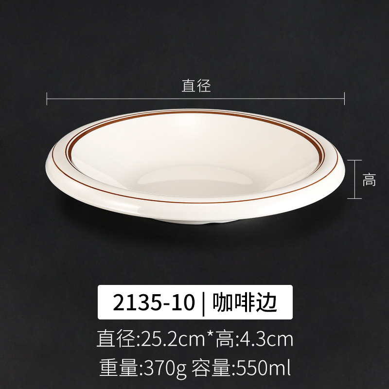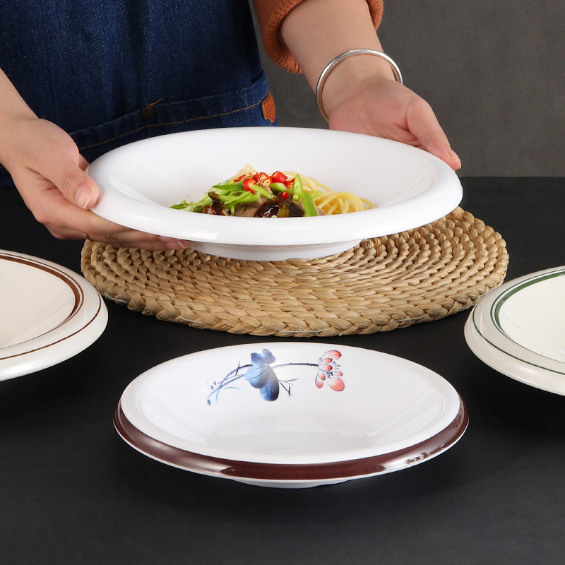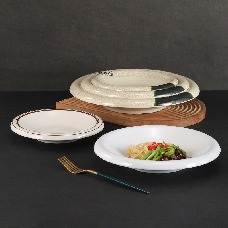 Меламиновая тарелка, коммерческая имитация фарфора, круглая суповая тарелка с обратным горлышком, глубокая тарелка, тарелка для холодных блюд, тарелка для салата, тарелка для ресторана в отеле